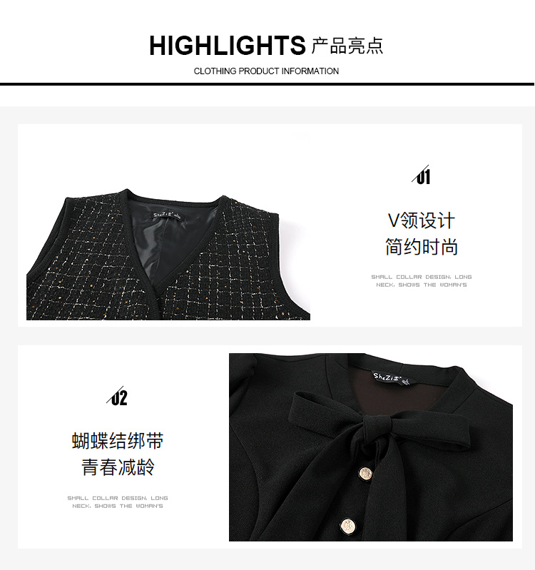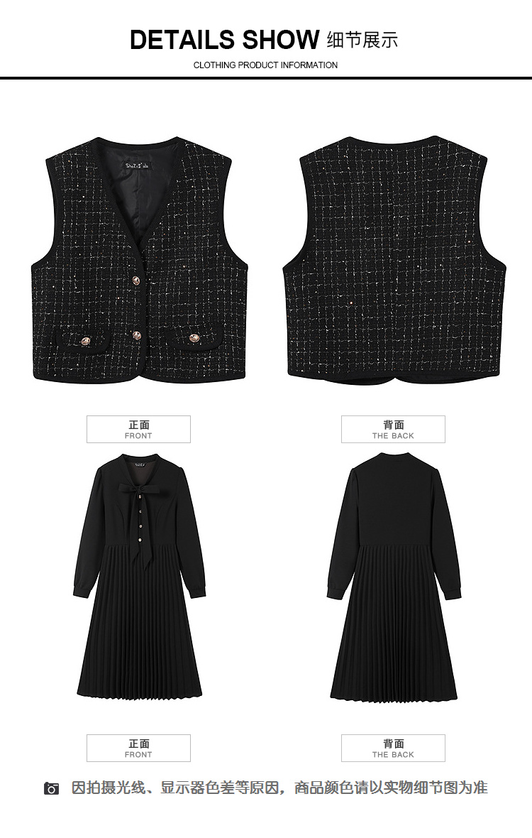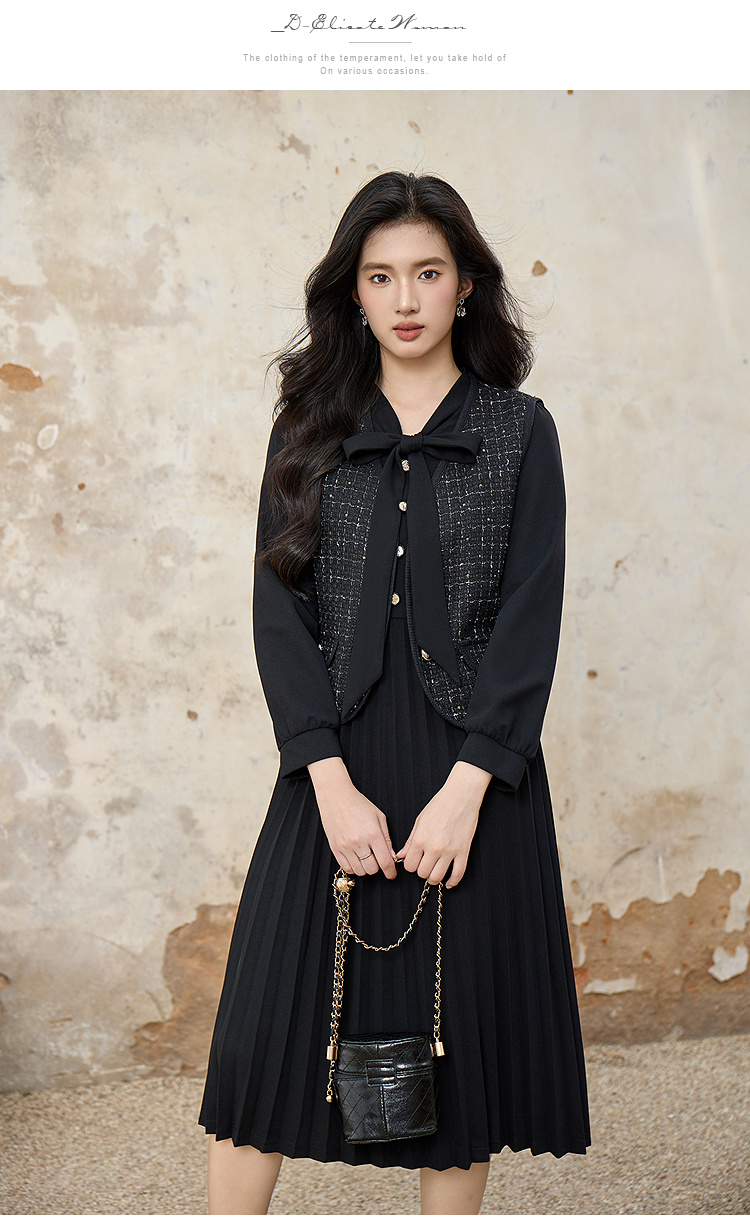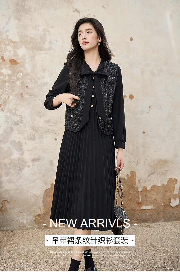 奢姿大码女装2025秋装新款胖妹妹轻奢休闲马甲百褶连衣裙套装9953994202AB