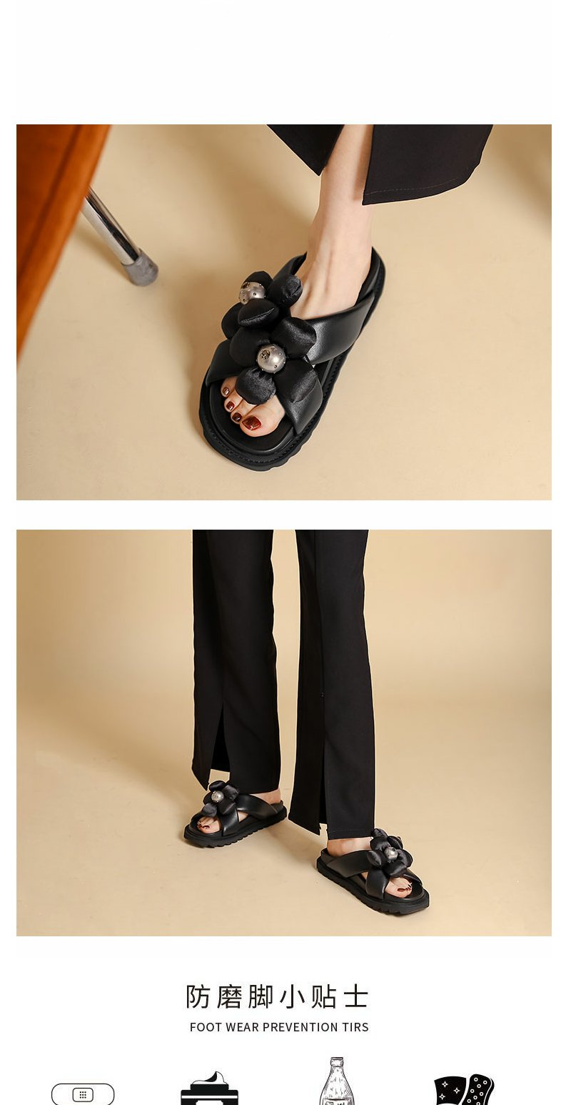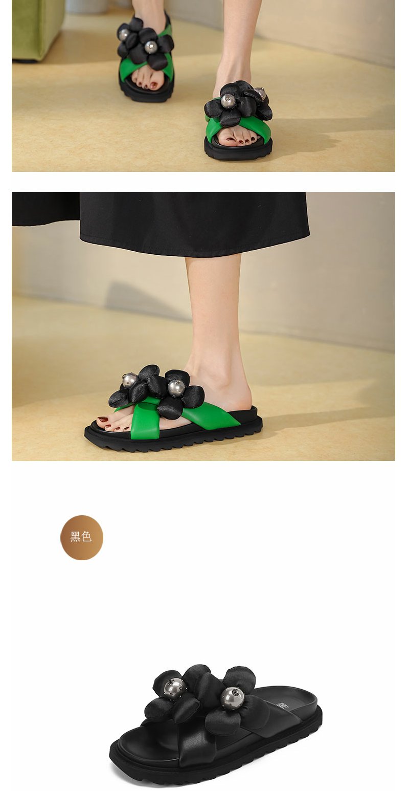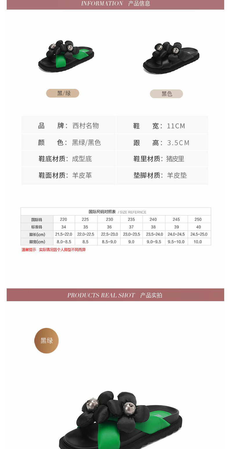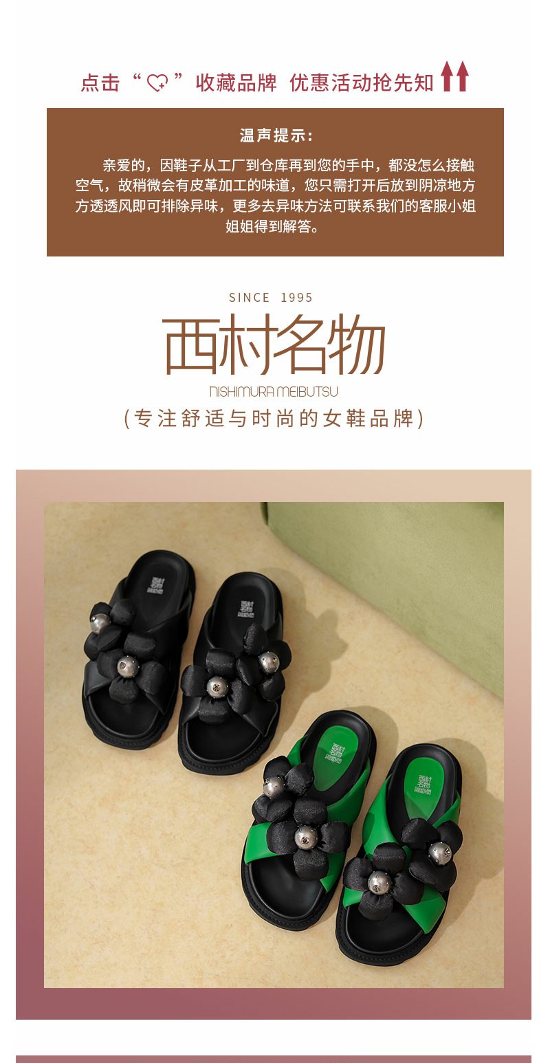 西村名物2022年夏季新款时尚花朵一字凉拖鞋女拖鞋24391