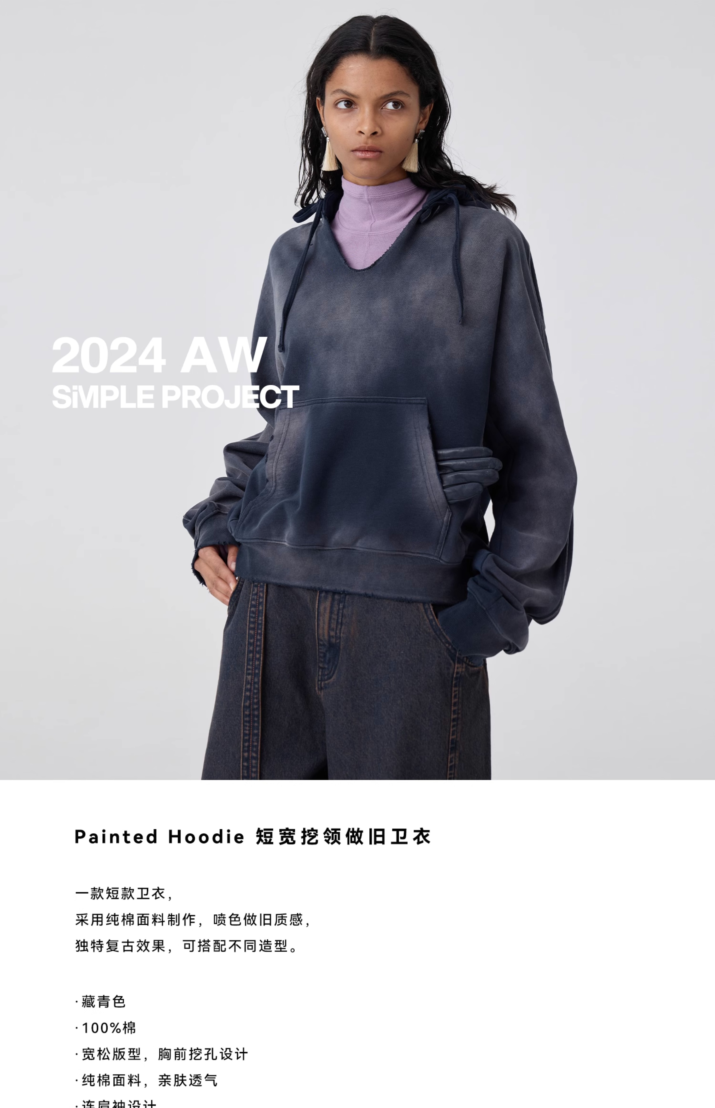 Simple Project/Y24177/短宽挖领做旧卫衣