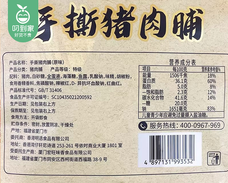 百二岁手撕猪肉脯(原味)/1包(200g)