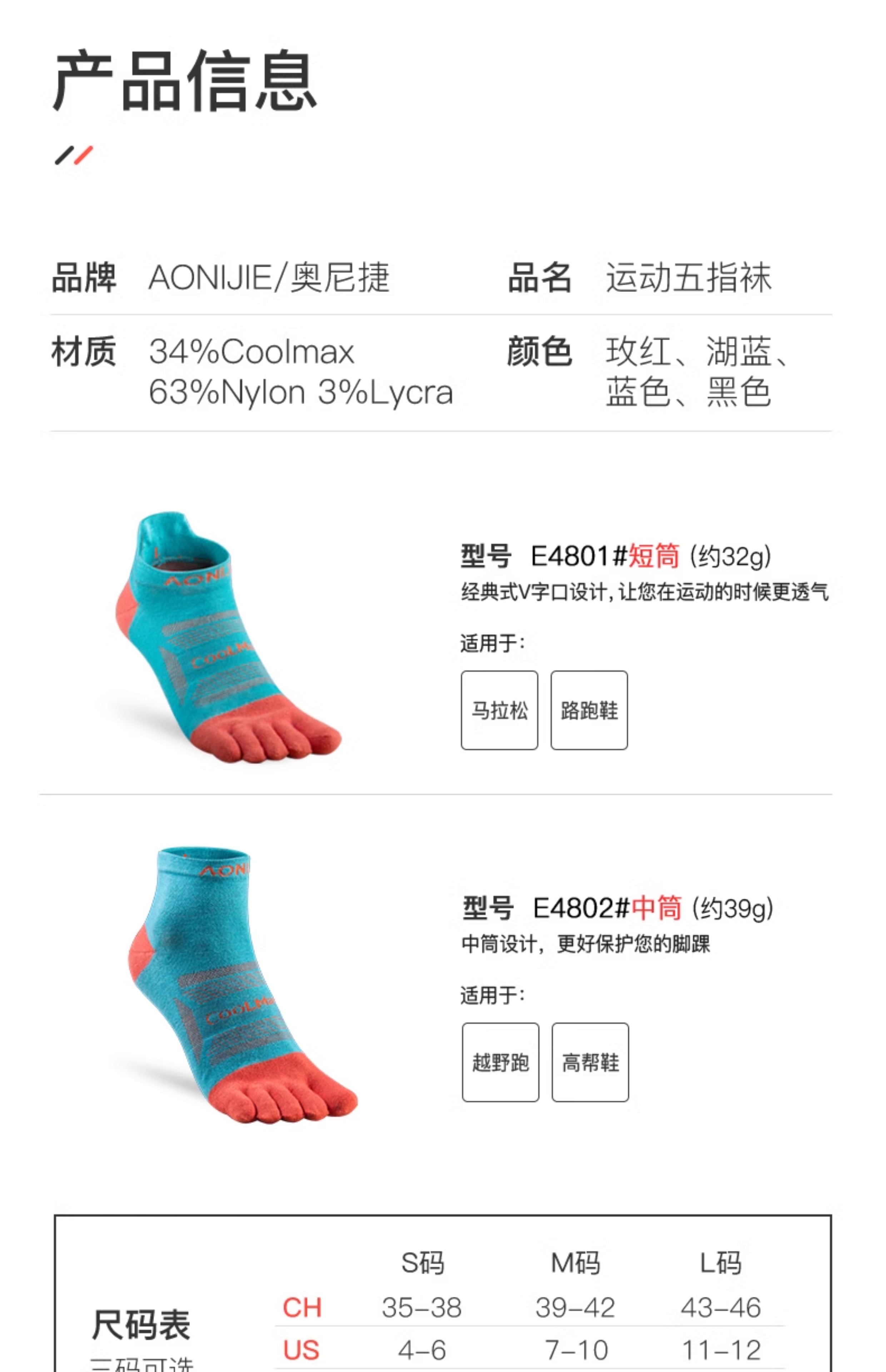 奥尼捷五指袜专业跑步袜子男中筒速干户外越野跑马拉松运动袜子女E4801