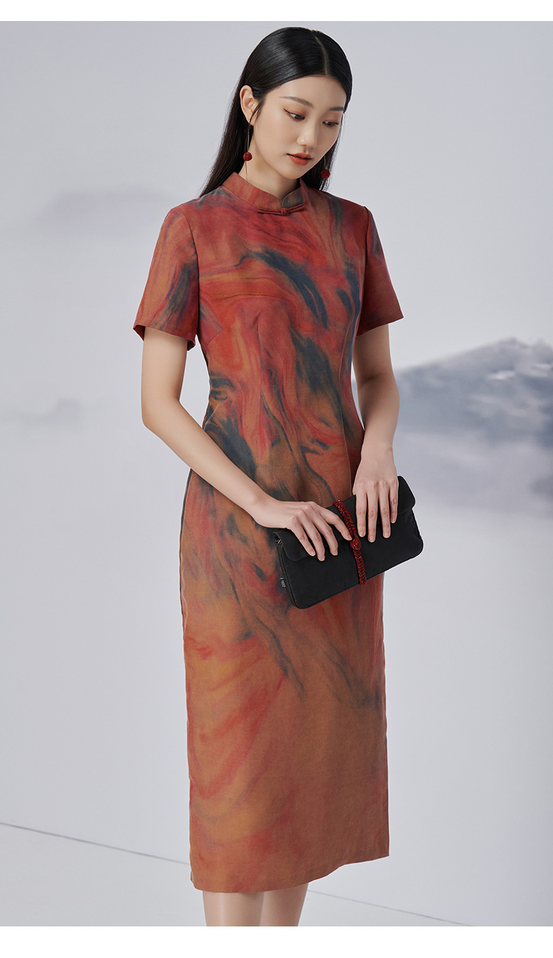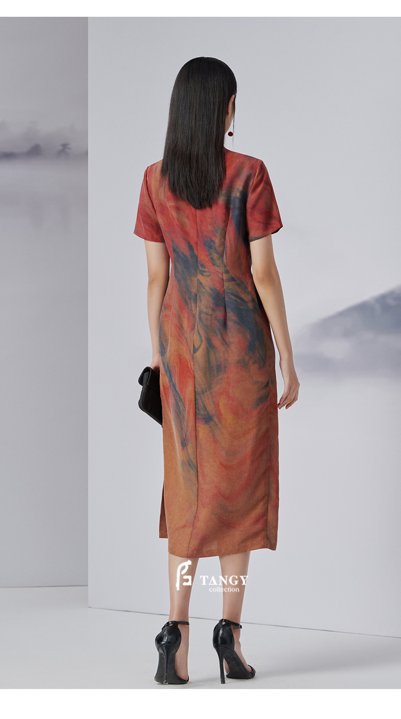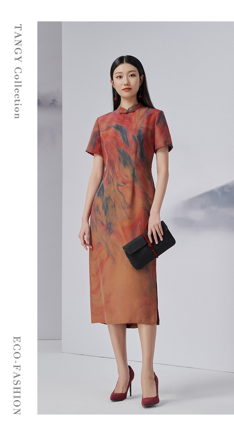 TANGY Collection/天意精品2022年秋冬新品时色系列茛绸桑蚕丝旗袍连衣裙