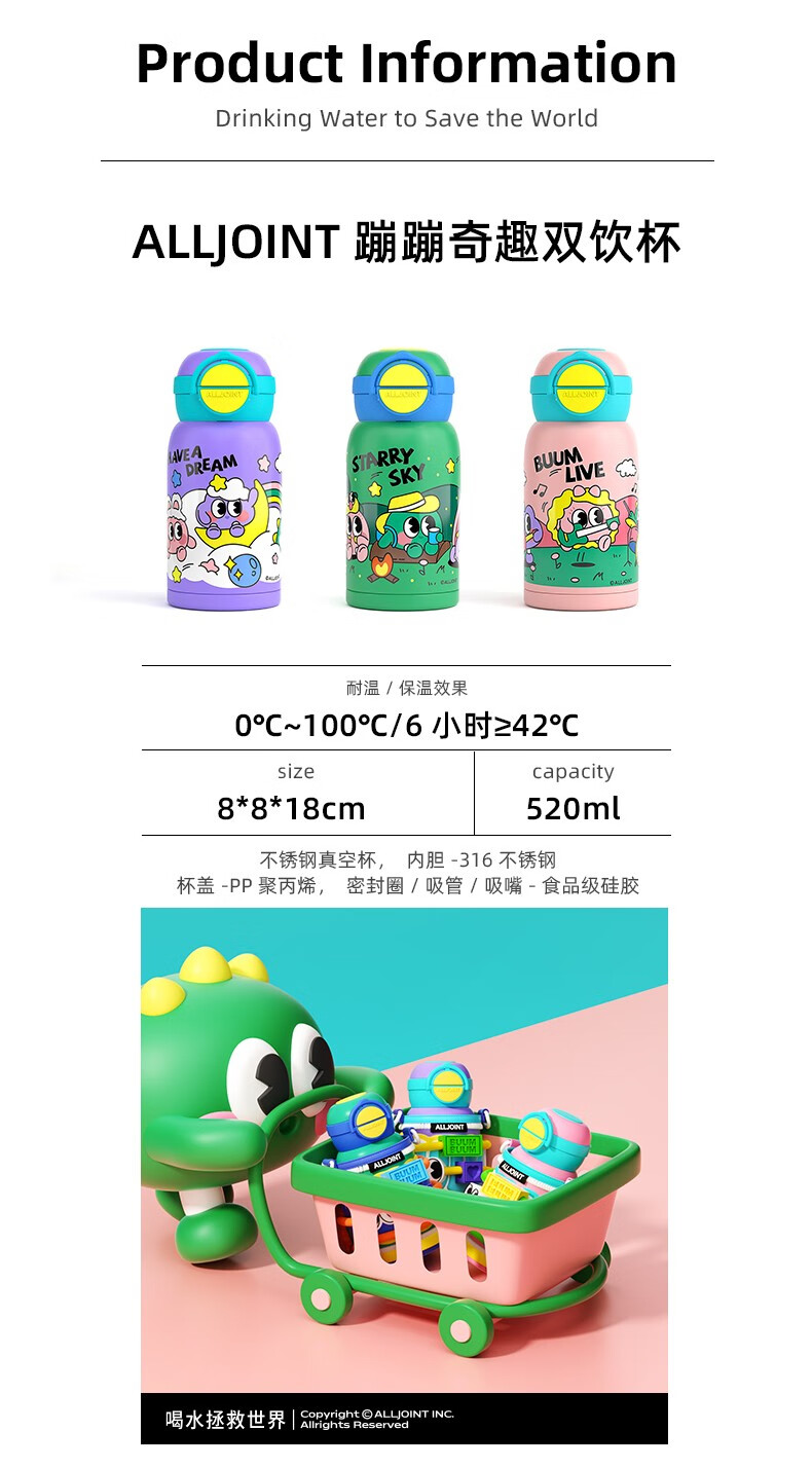 优仅alljoint蹦蹦奇趣双饮杯保温杯儿童吸管水杯520ml YJ