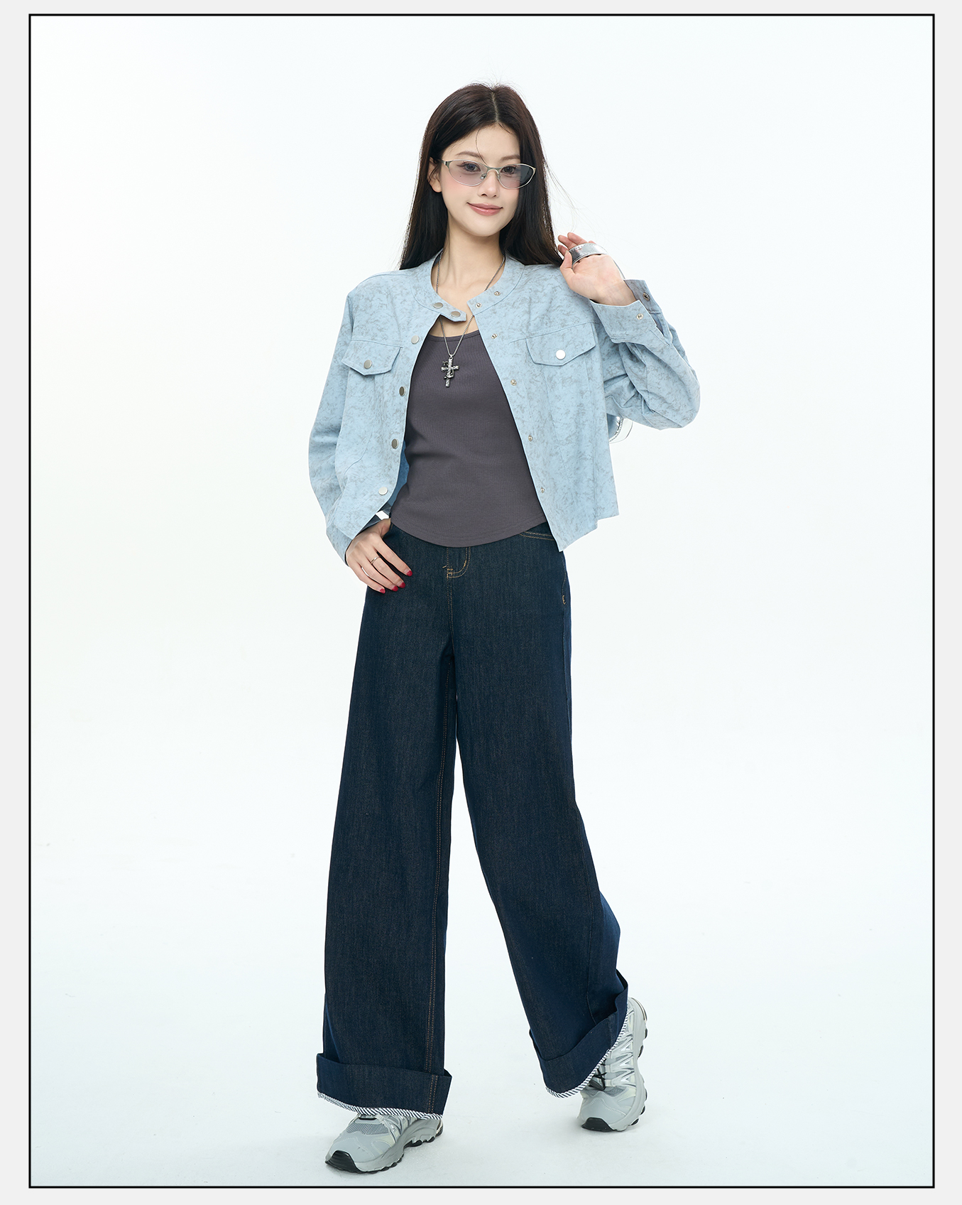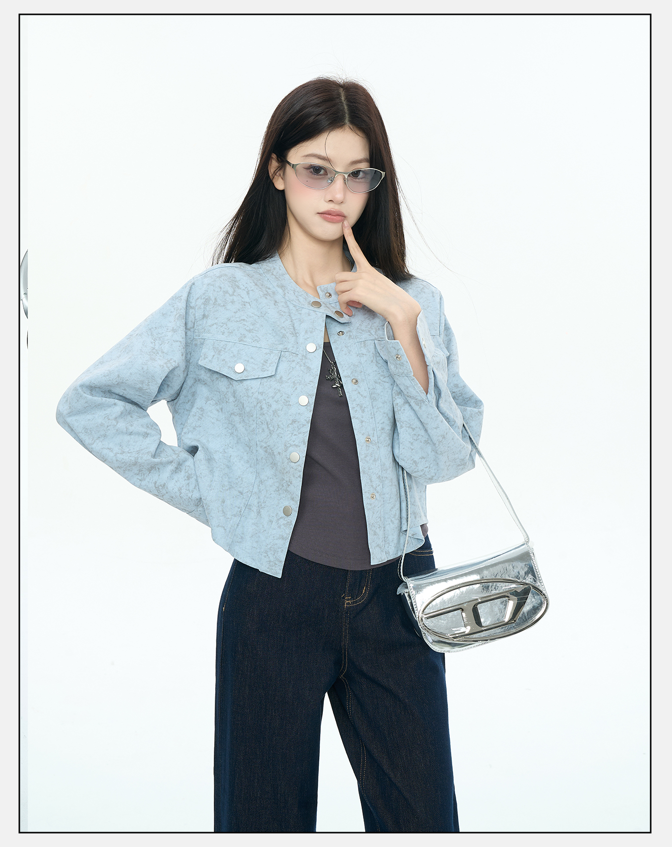 P&X设计师女装2025秋衬衫内搭两件套短款上衣825315172 蓝/灰