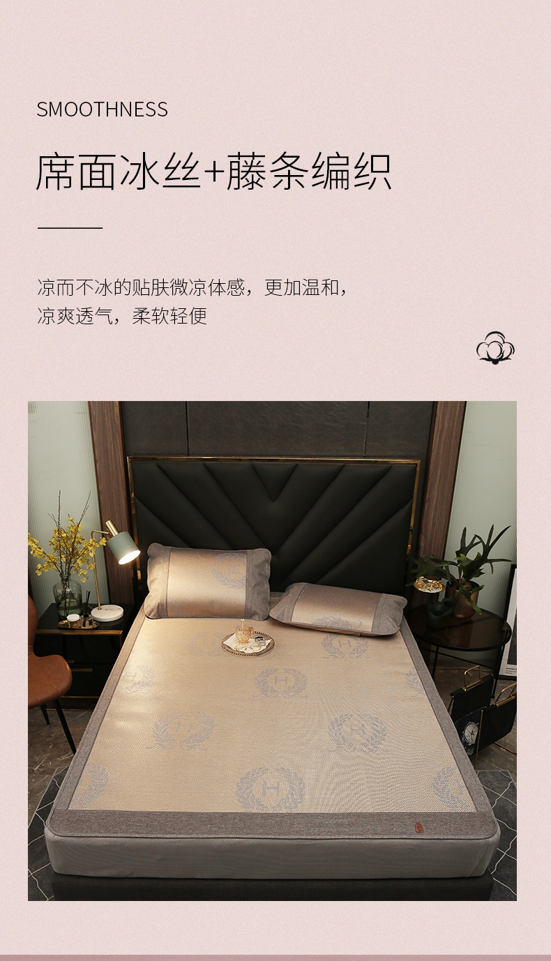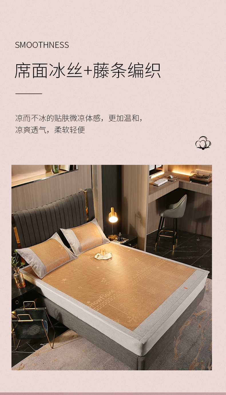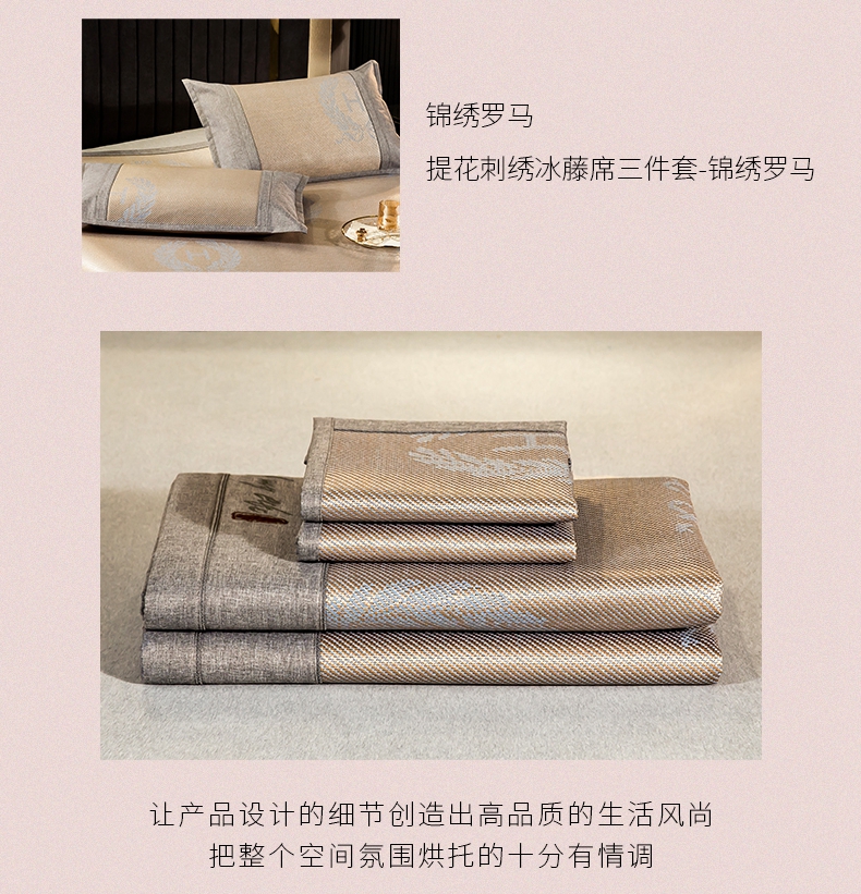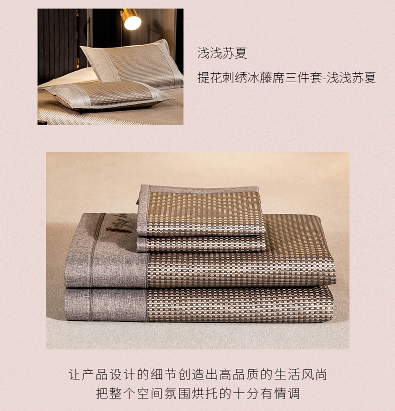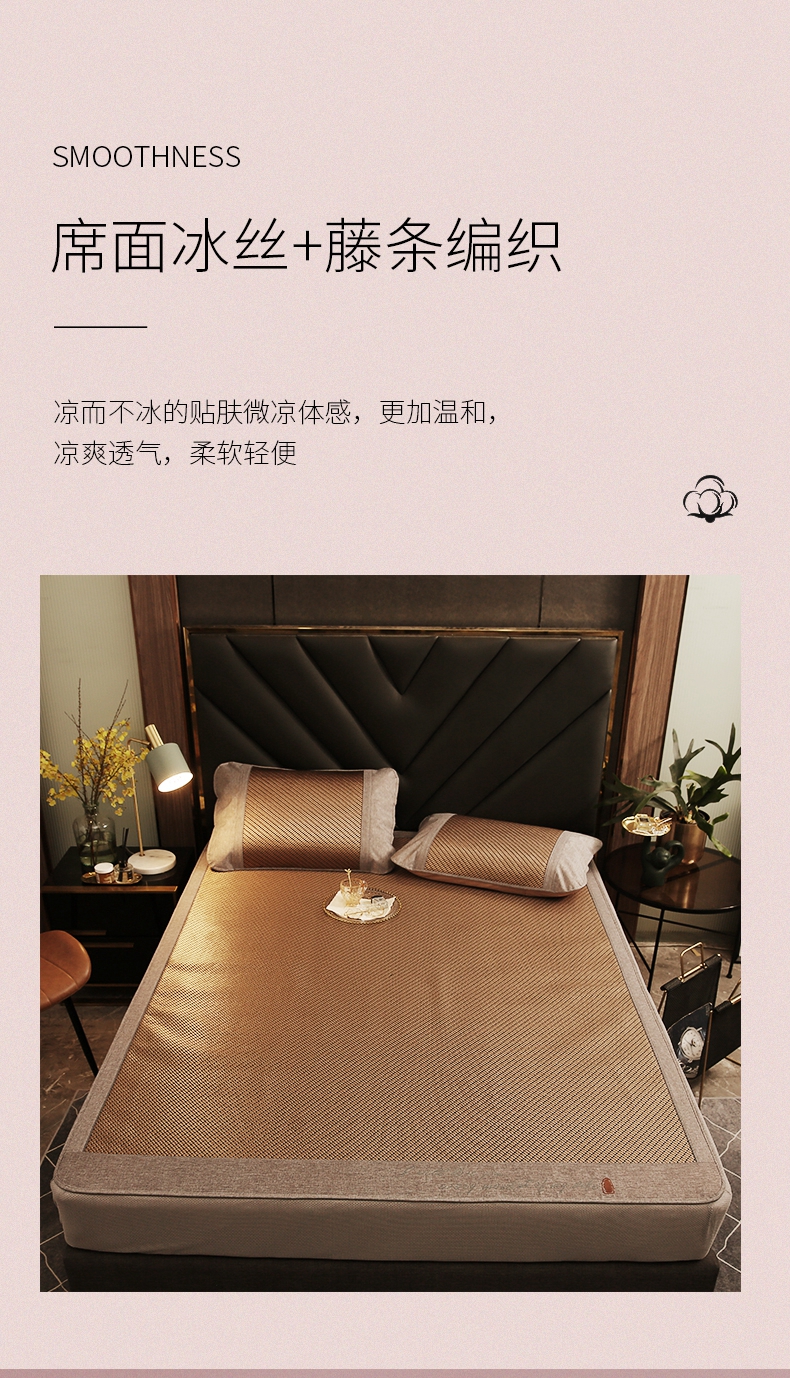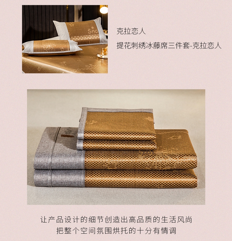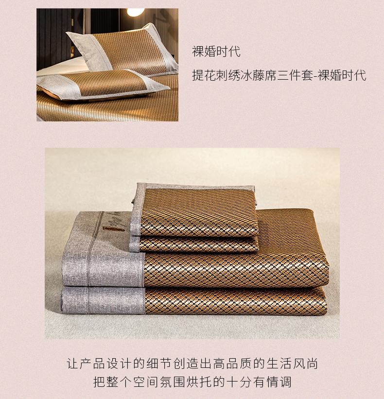 夏凉提花刺绣冰藤席三件套 软席子可折叠 冰丝席藤条编织 夏天凉席 1.8\1.5米床