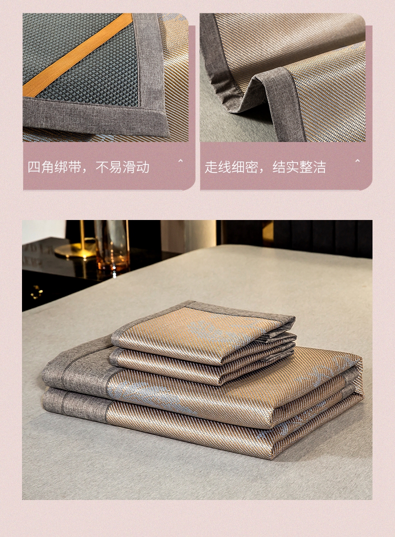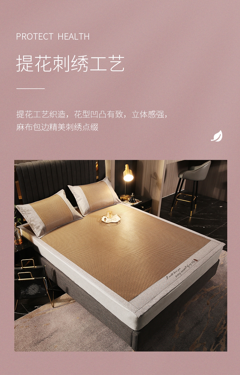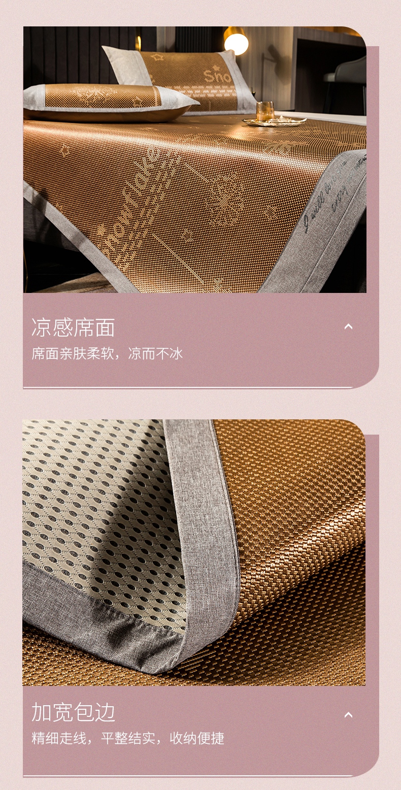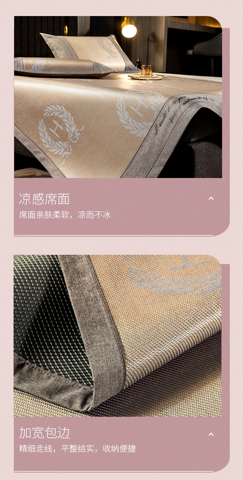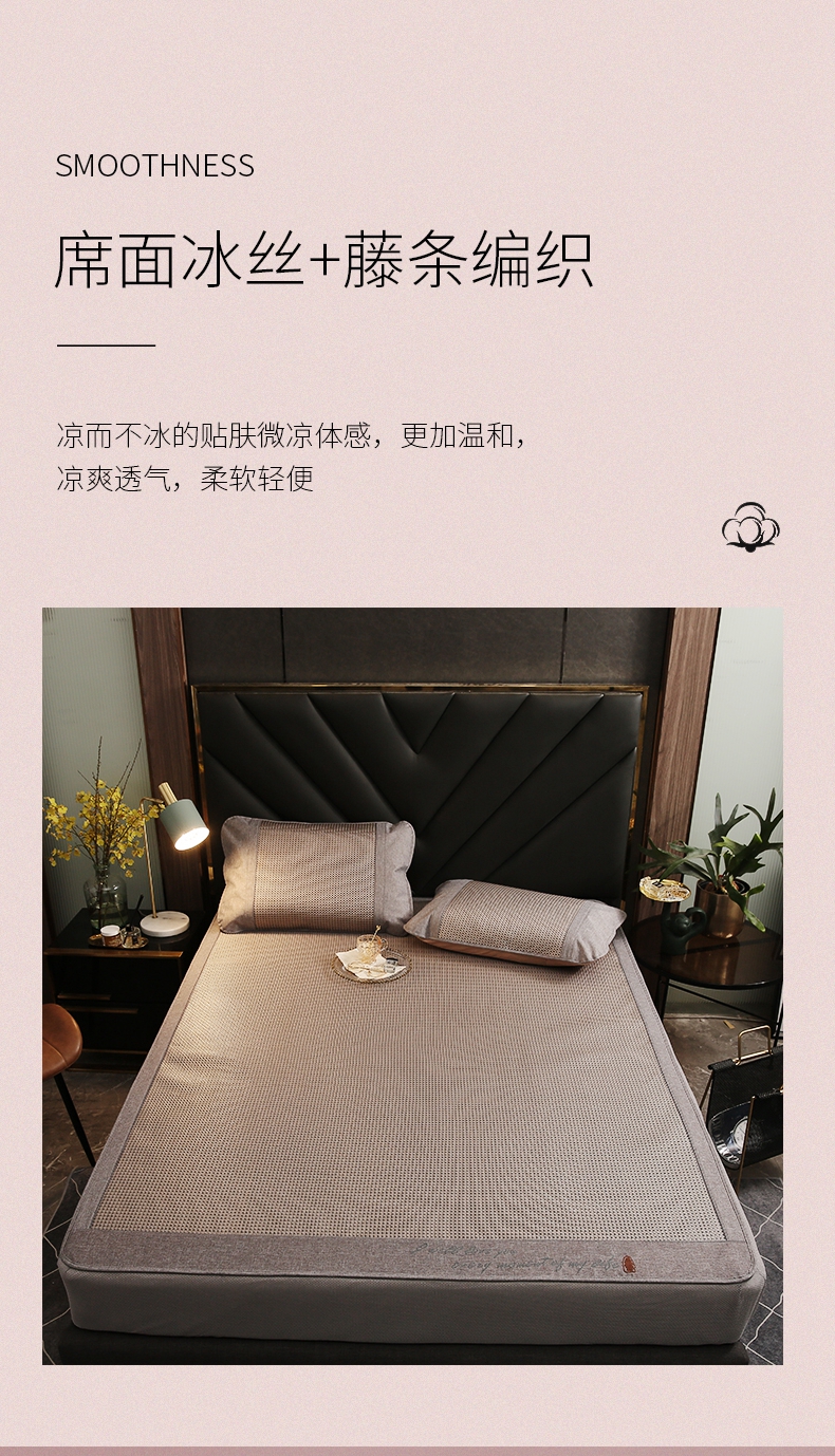 夏凉提花刺绣冰藤席三件套 软席子可折叠 冰丝席藤条编织 夏天凉席 1.8\1.5米床