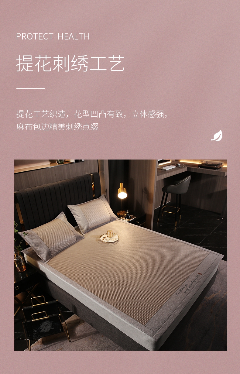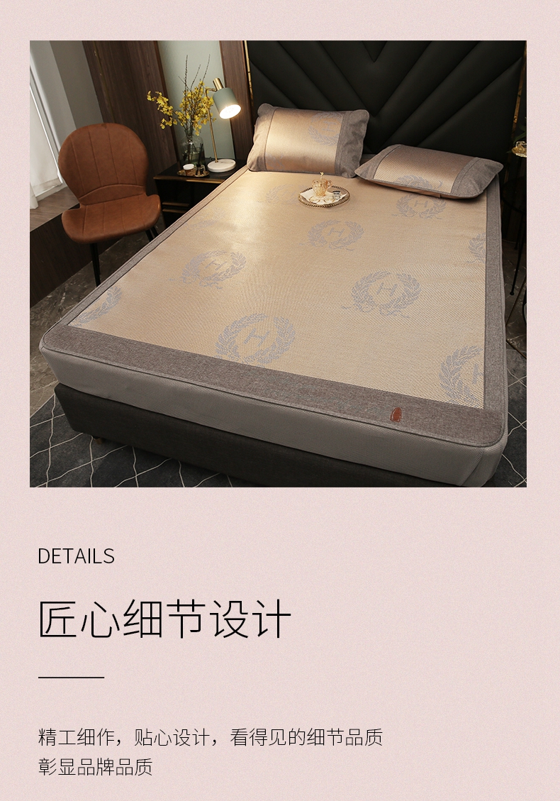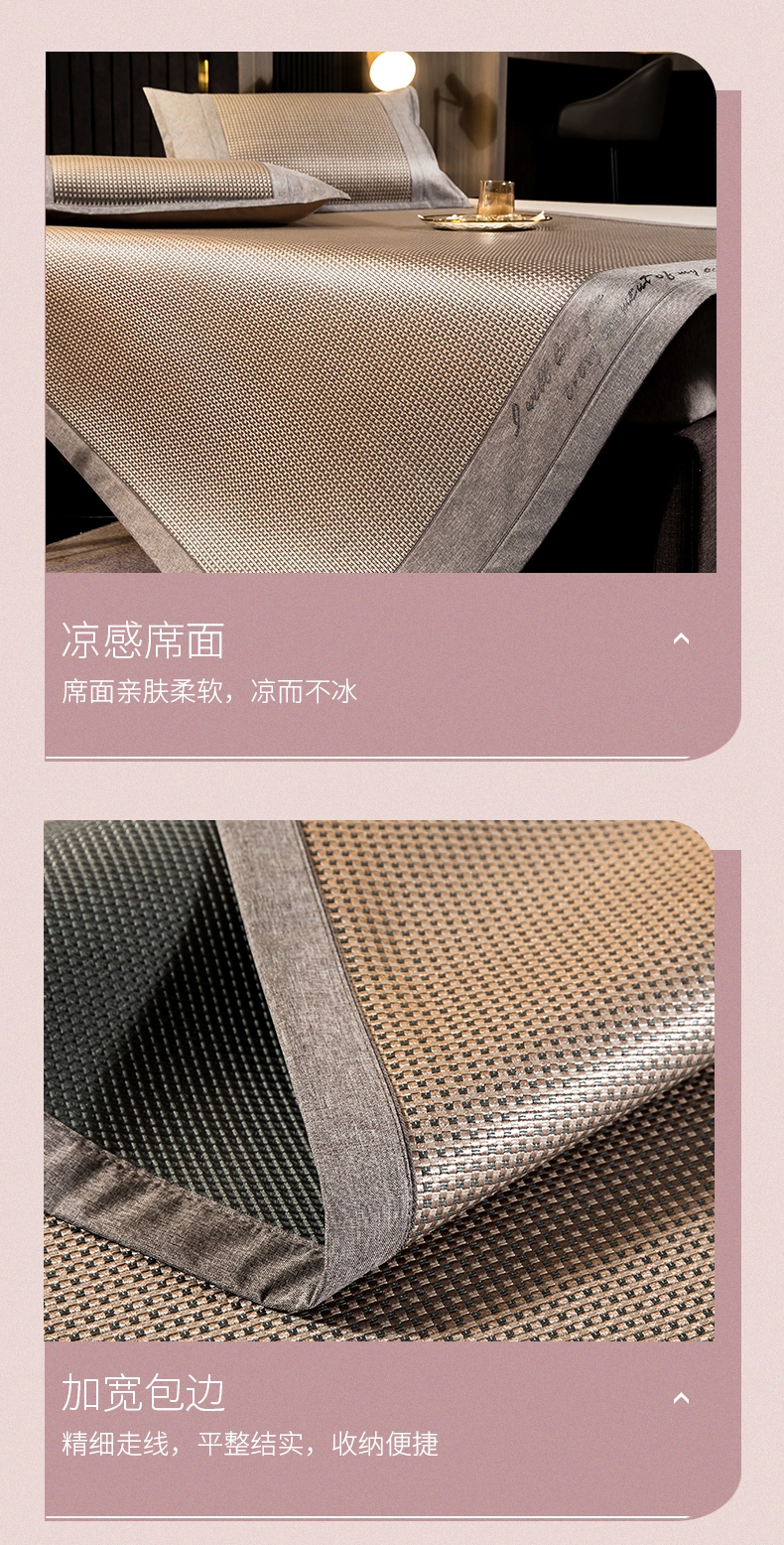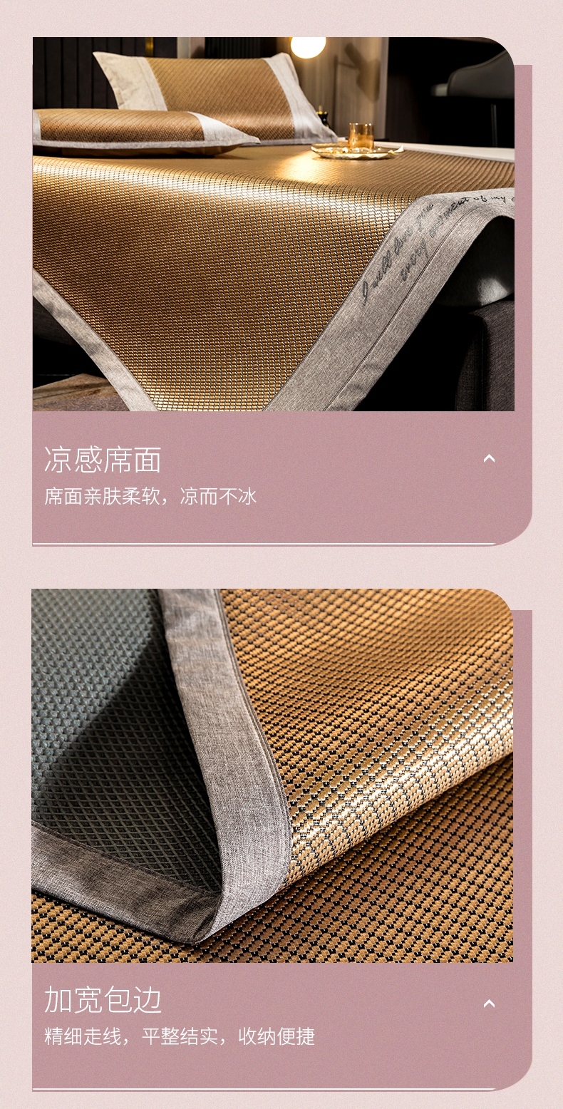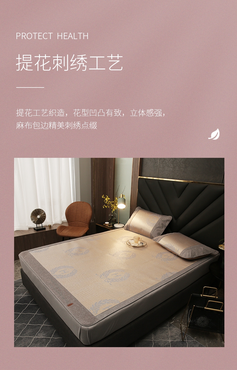 夏凉提花刺绣冰藤席三件套 软席子可折叠 冰丝席藤条编织 夏天凉席 1.8\1.5米床