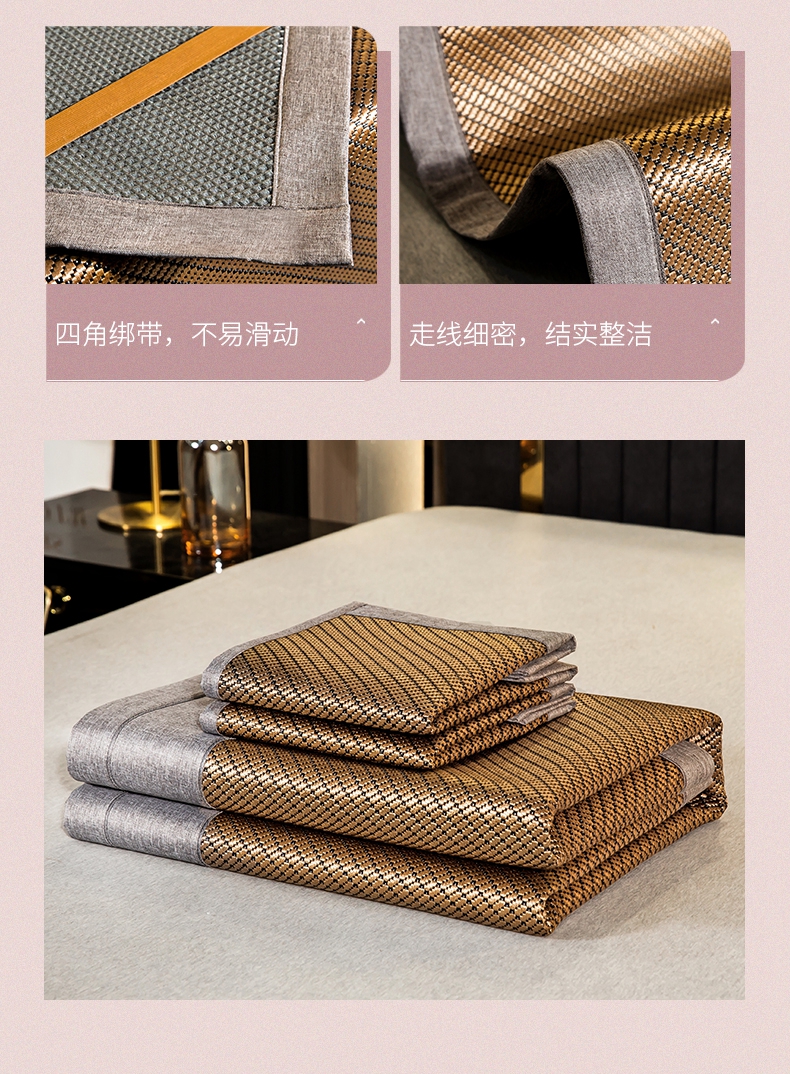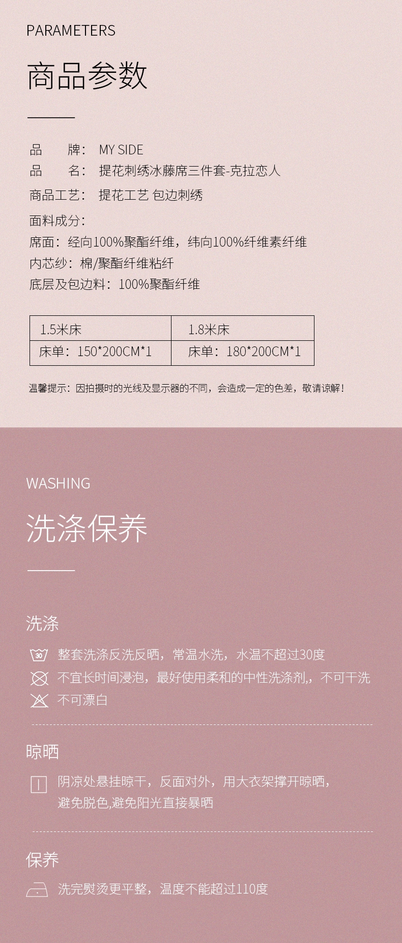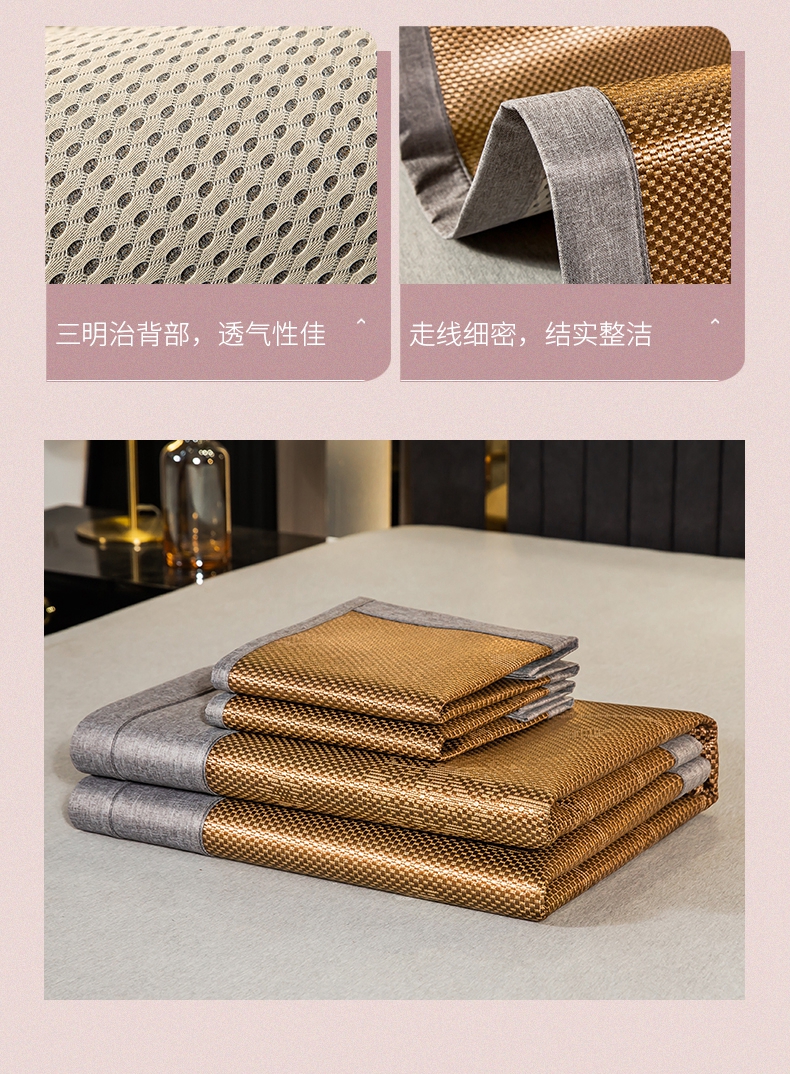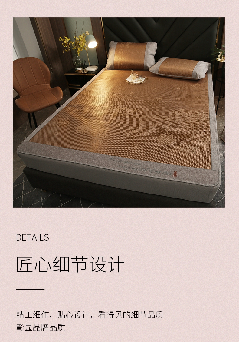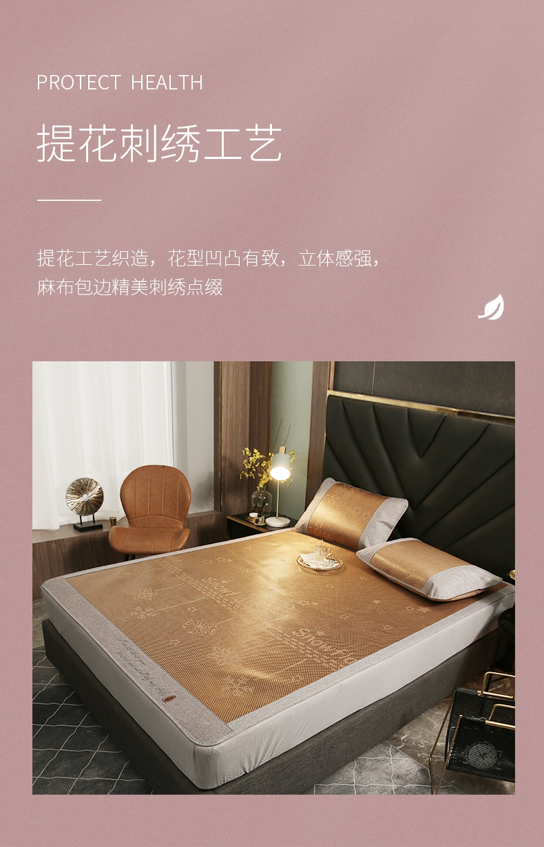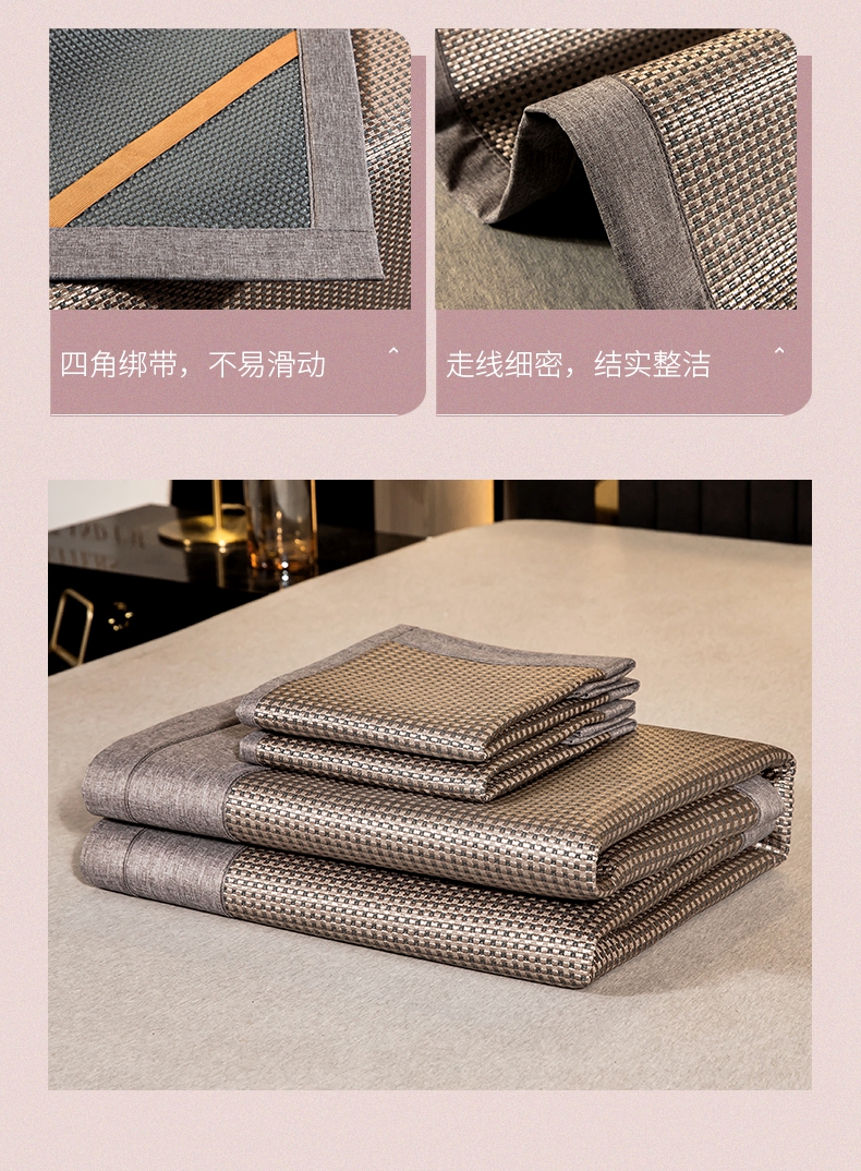 夏凉提花刺绣冰藤席三件套 软席子可折叠 冰丝席藤条编织 夏天凉席 1.8\1.5米床