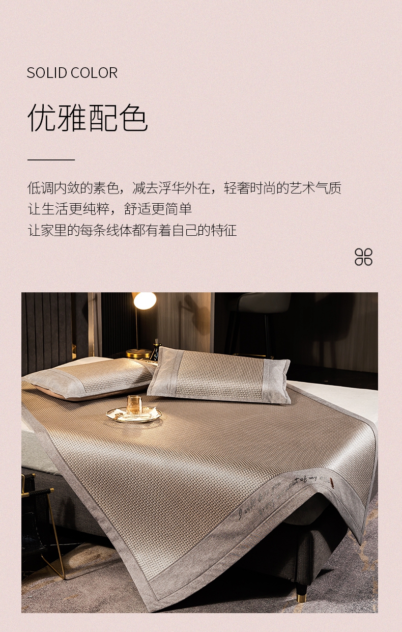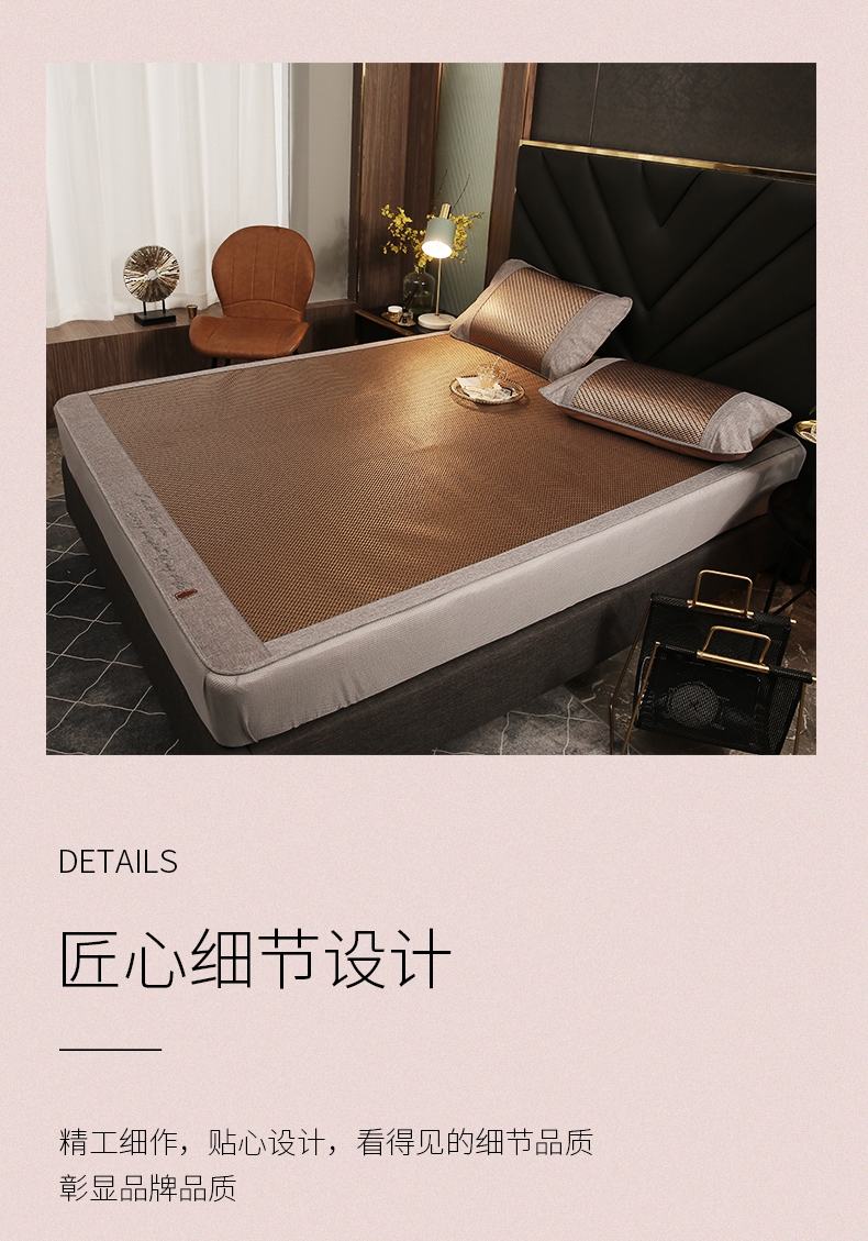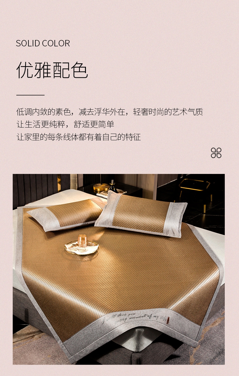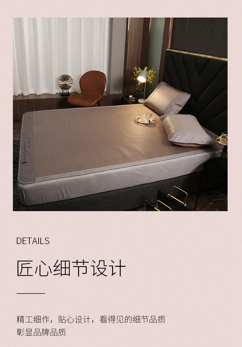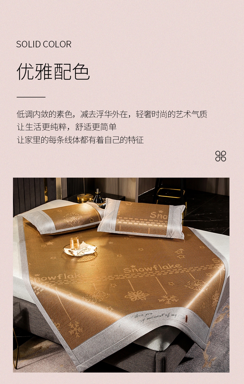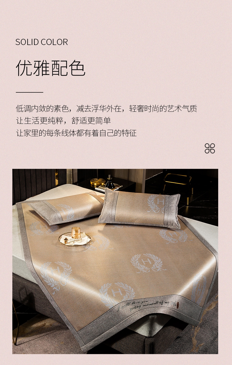 夏凉提花刺绣冰藤席三件套 软席子可折叠 冰丝席藤条编织 夏天凉席 1.8\1.5米床