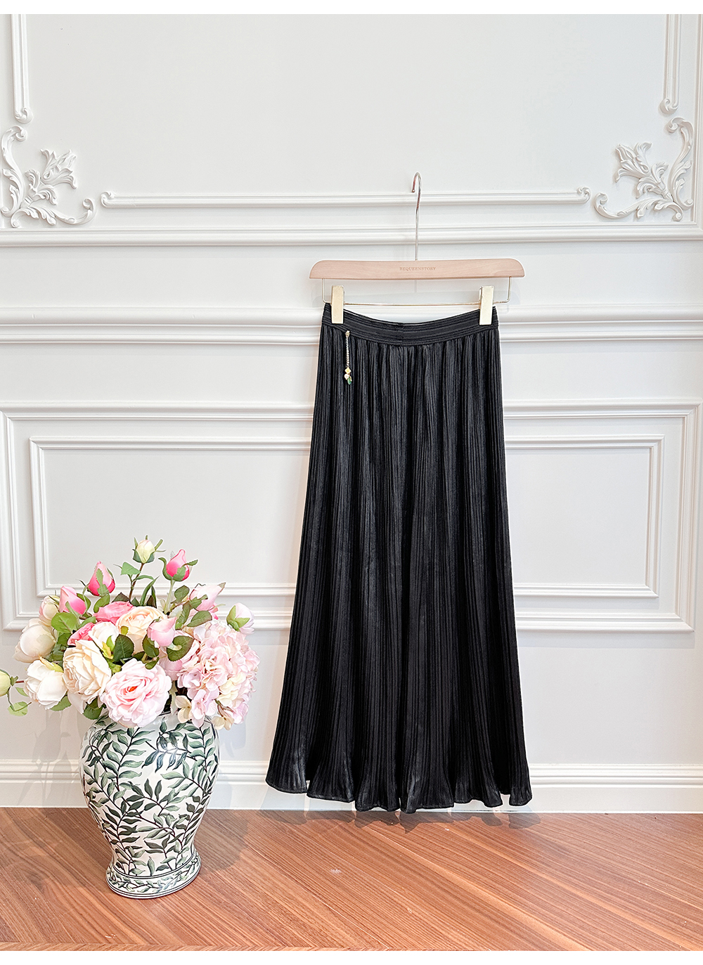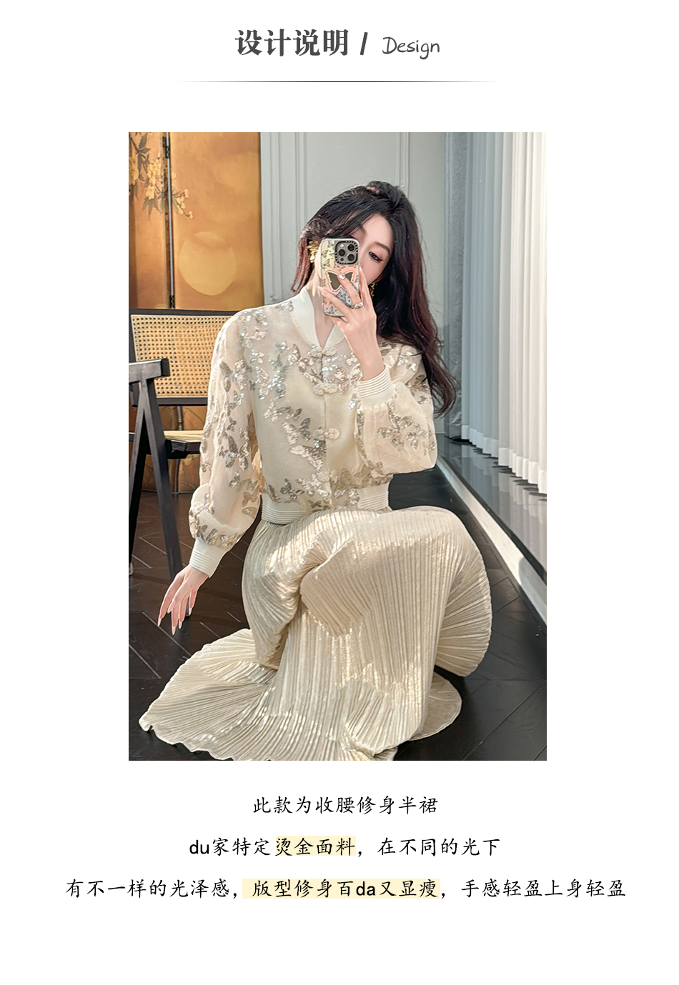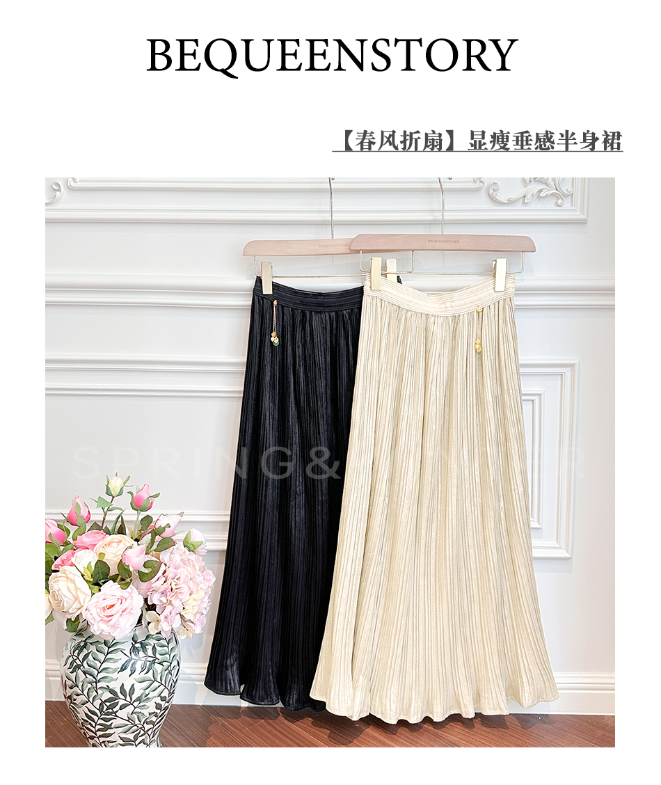 BeQueenStory【春风折扇】轻奢时尚烫金面料收腰显瘦百搭垂感半身裙