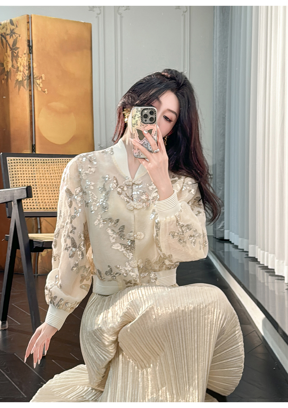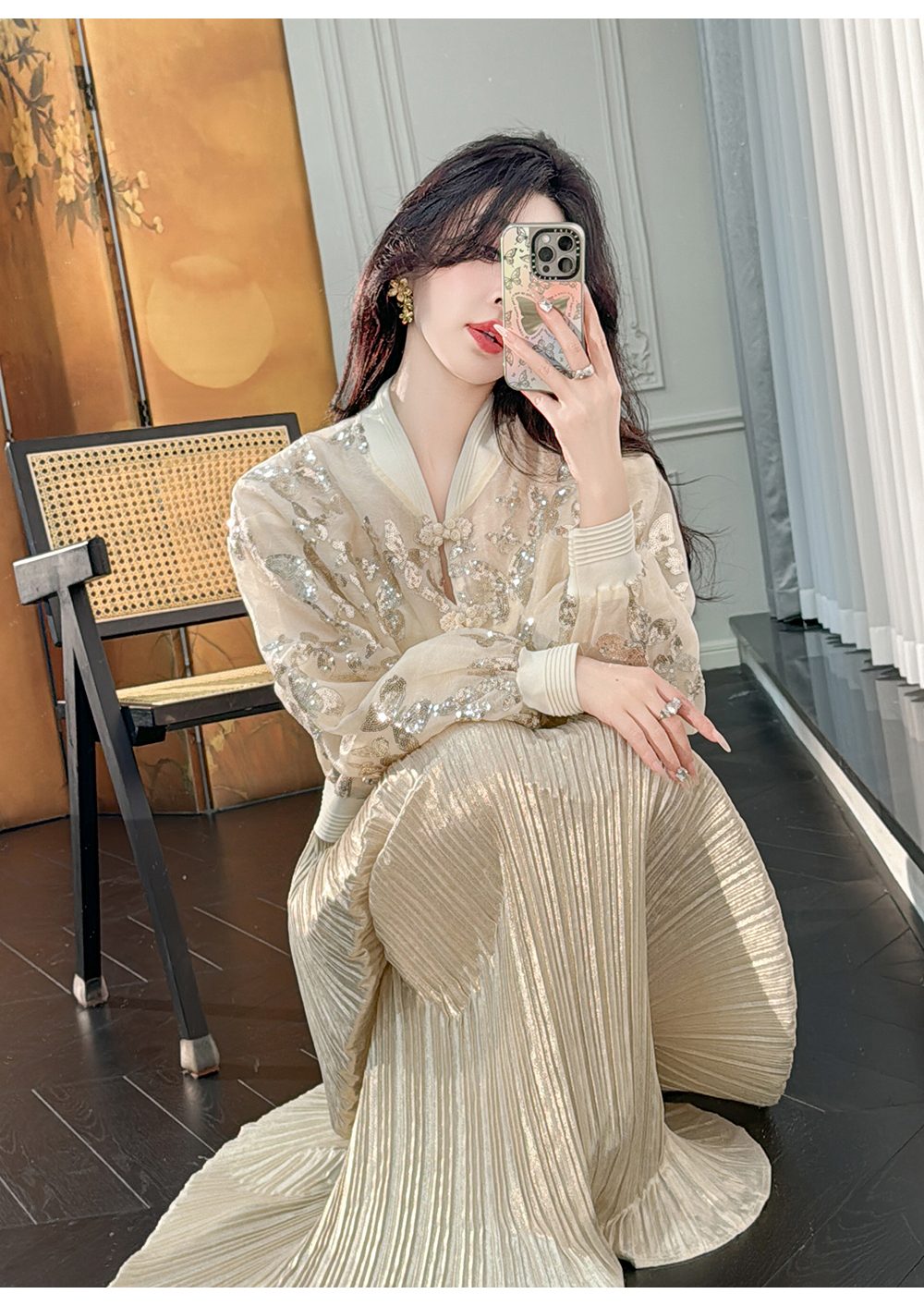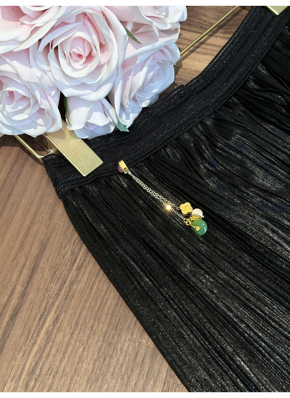 BeQueenStory【春风折扇】轻奢时尚烫金面料收腰显瘦百搭垂感半身裙