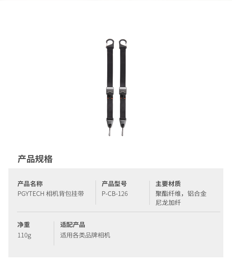 PGYTECH相机背包挂带背带挂载相机绳微单反固定快挂扣适用于佳能尼康相机背带 相机背包挂带