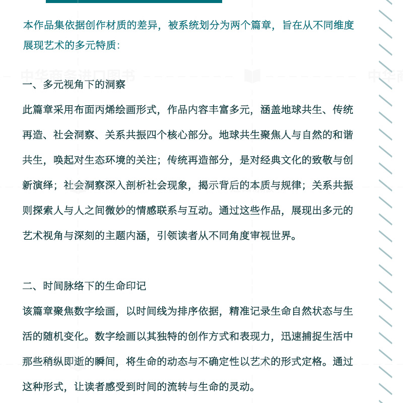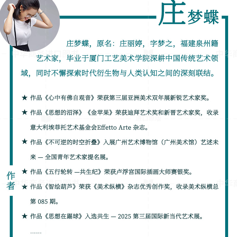 本書是藝術家莊夢蝶以「無相」為核心創作理念的藝術合集,涵蓋傳統再造、地球共生、社會洞察、關係共振等主題。作品以抽象筆觸與東方哲學思辨,探討人類精神、文明演進與個體生命體驗,展現出對當代社會多元面貌的敏銳洞察。該系列作品曾獲多項國際獎項,包括盧浮宮國際插畫大師賽金獎,並參展於廣州藝術博物館、高劍父紀念館、柏林貝哈尼亞藝術中心等機構,是藝術家在視覺與思想交織中的深刻表達。