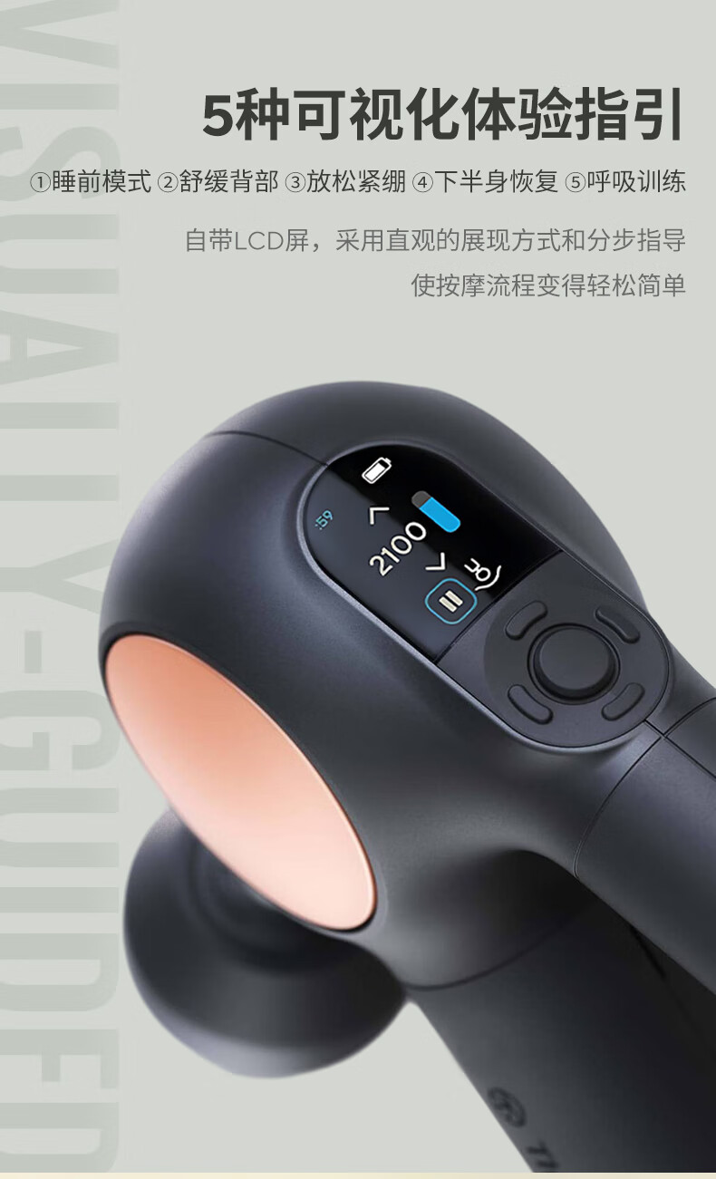 内置5种通过LCD屏幕管理的按摩频率和力度