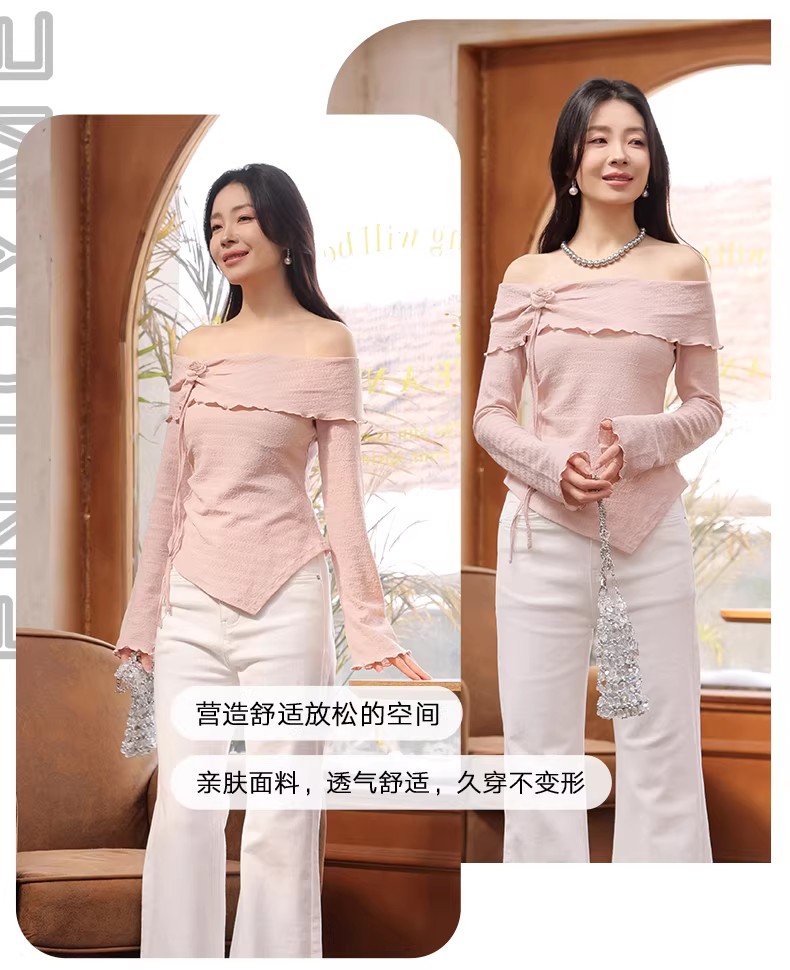 【门店同款】ENJOY春季“柔光芳序”纯欲一字肩上衣 169099561