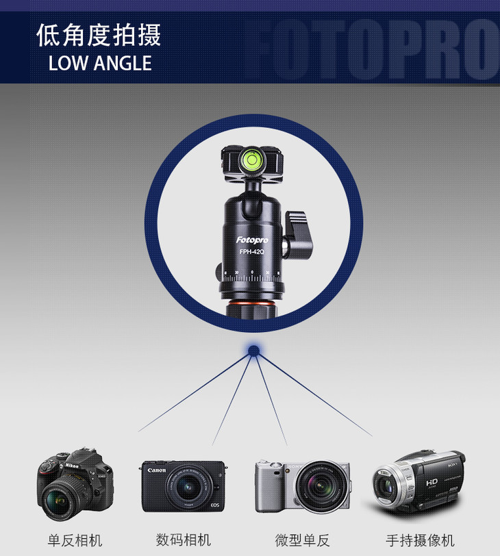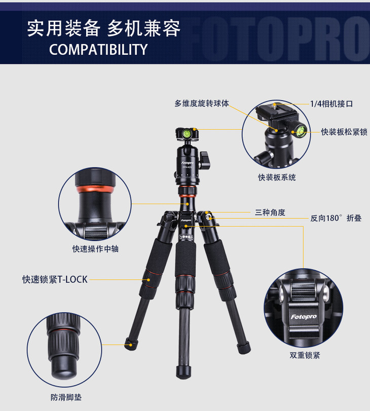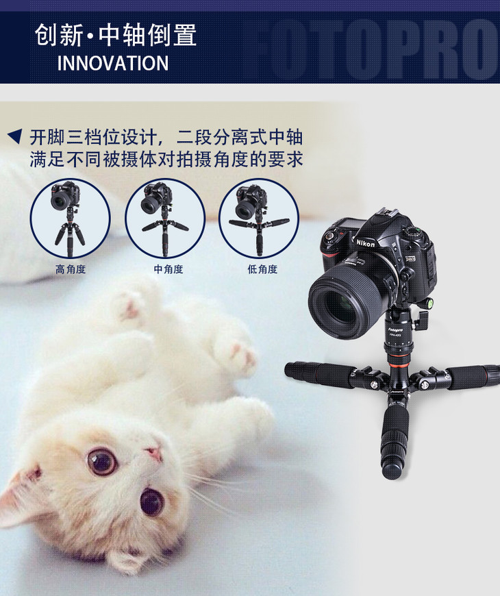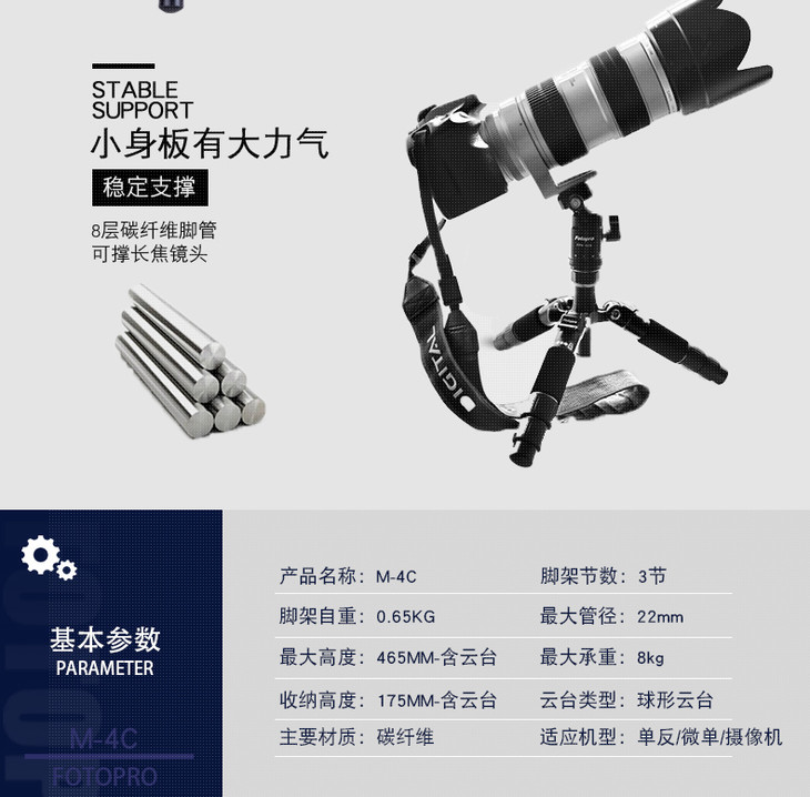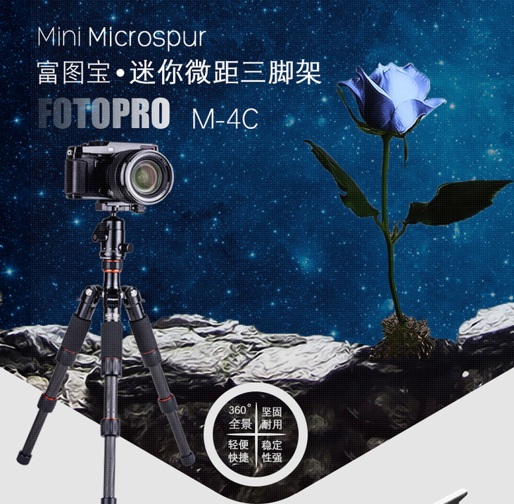 富图宝M-4C碳纤维三脚架 迷你便携支架 单反微单数码照相机三角架
