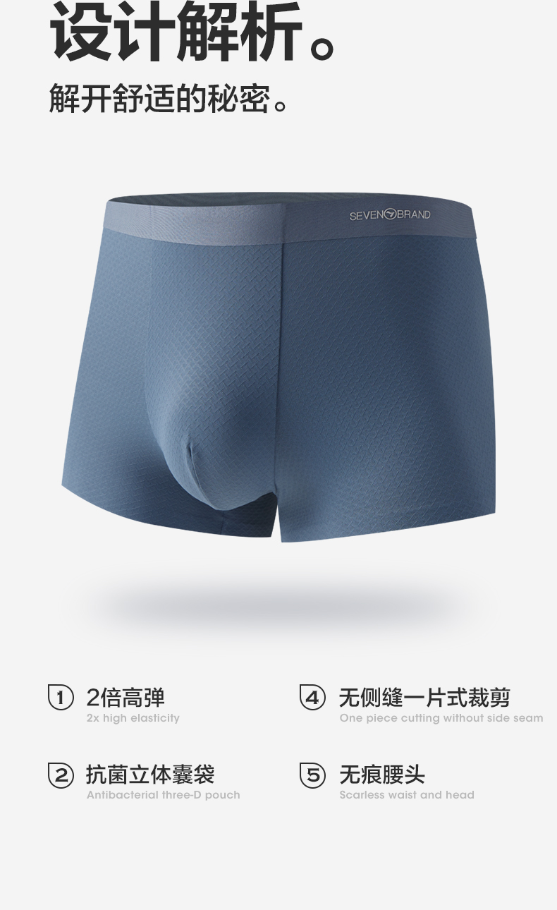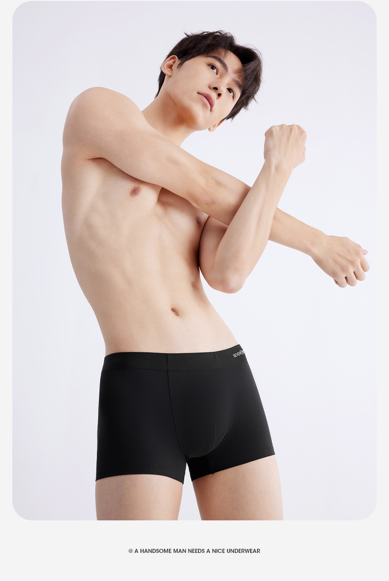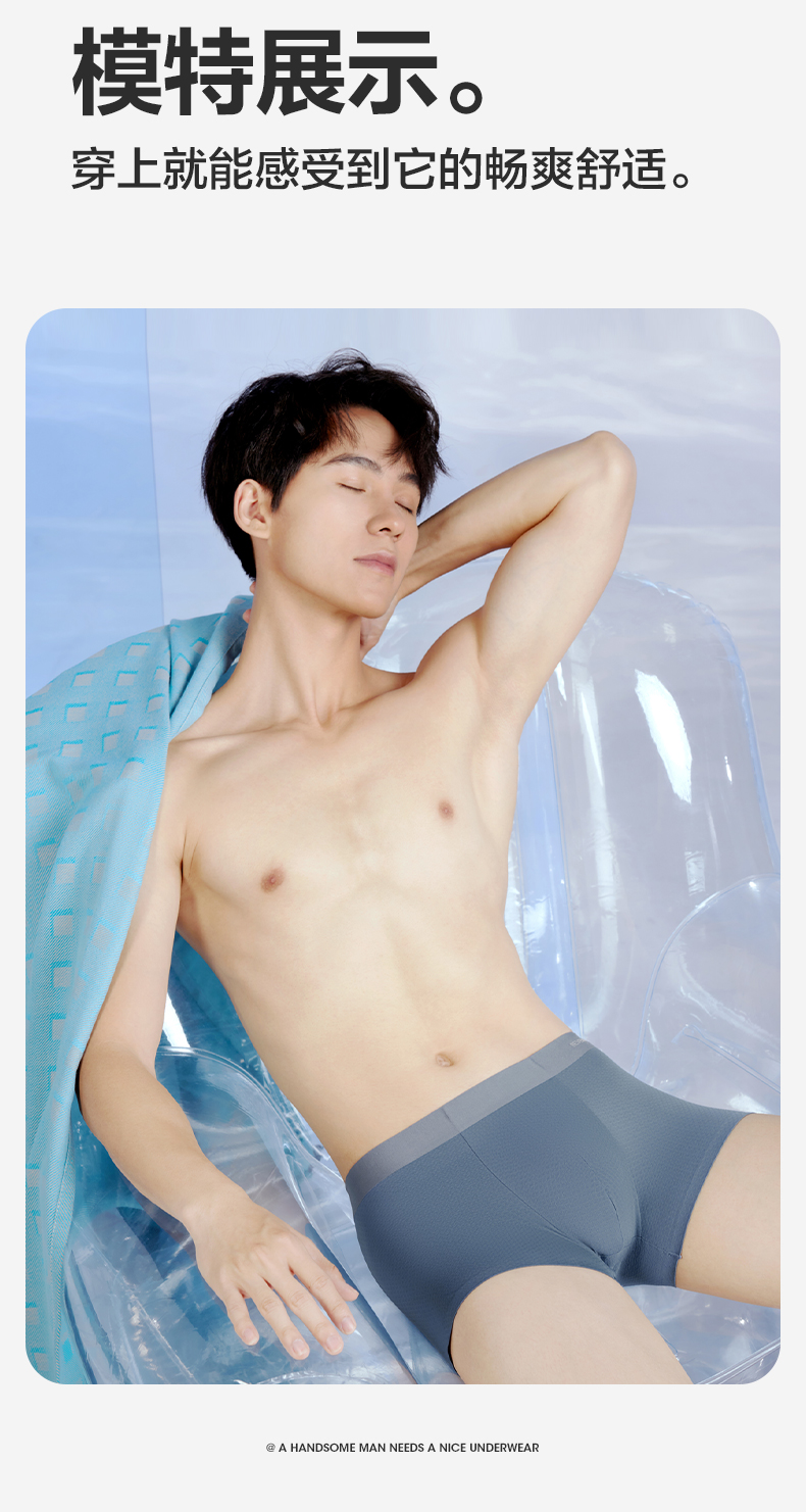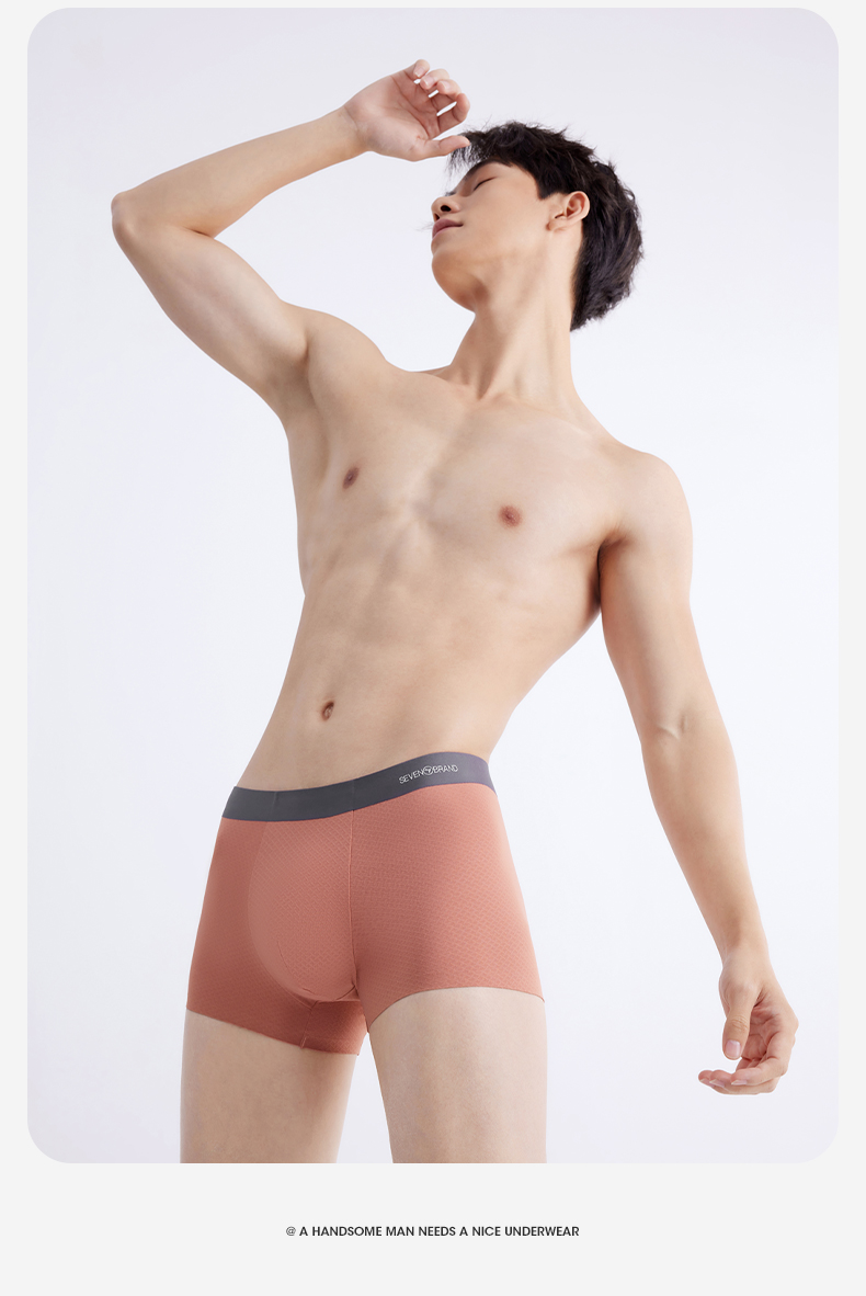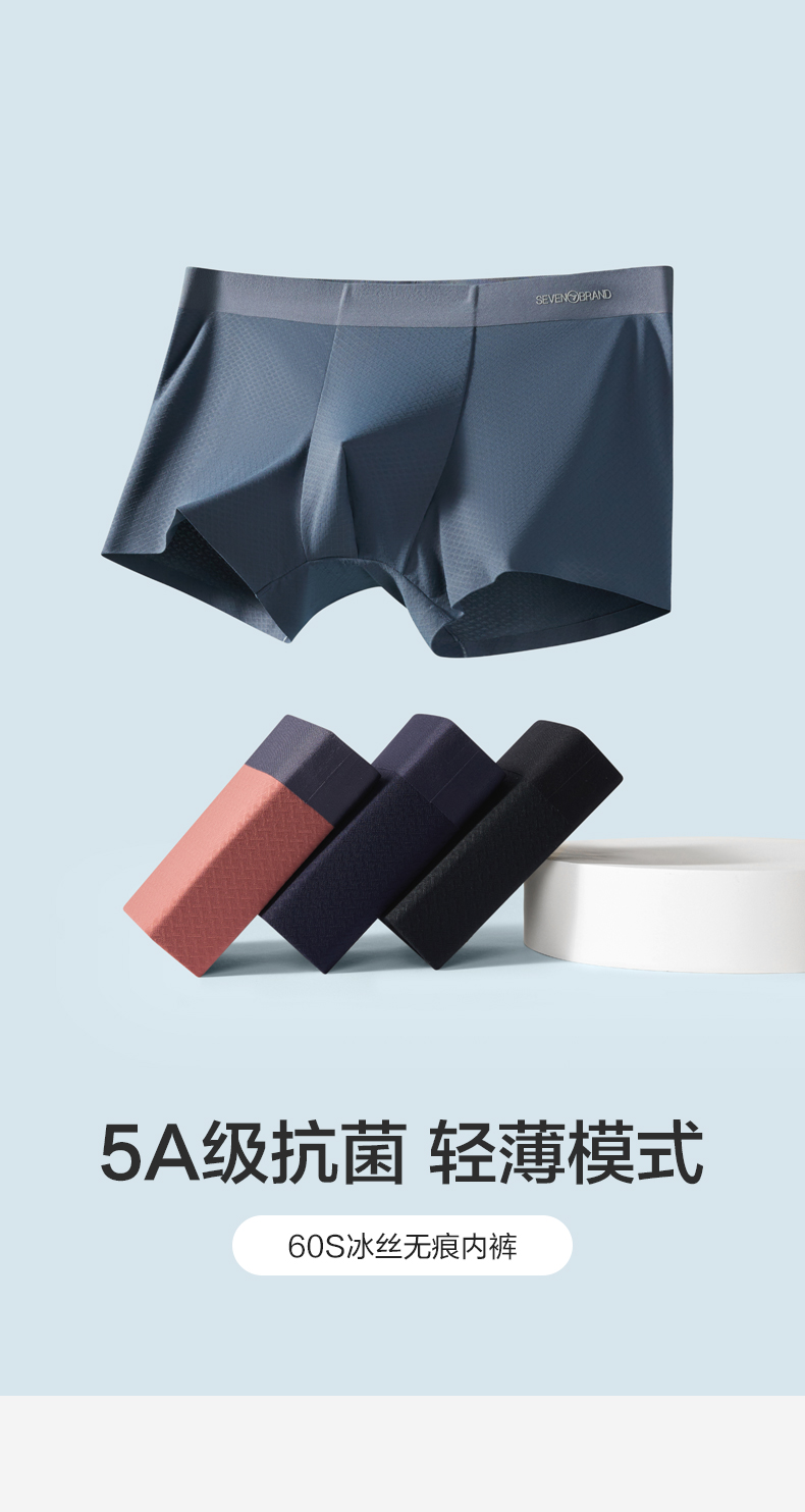 【礼盒3条装】柒牌薄弹无痕60支男士平角内裤5A抗菌快速消臭凉感冰丝 126F70140