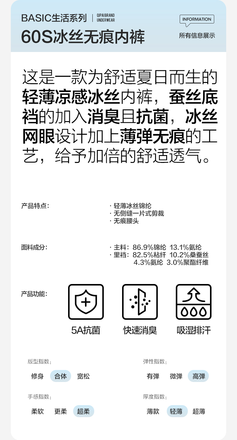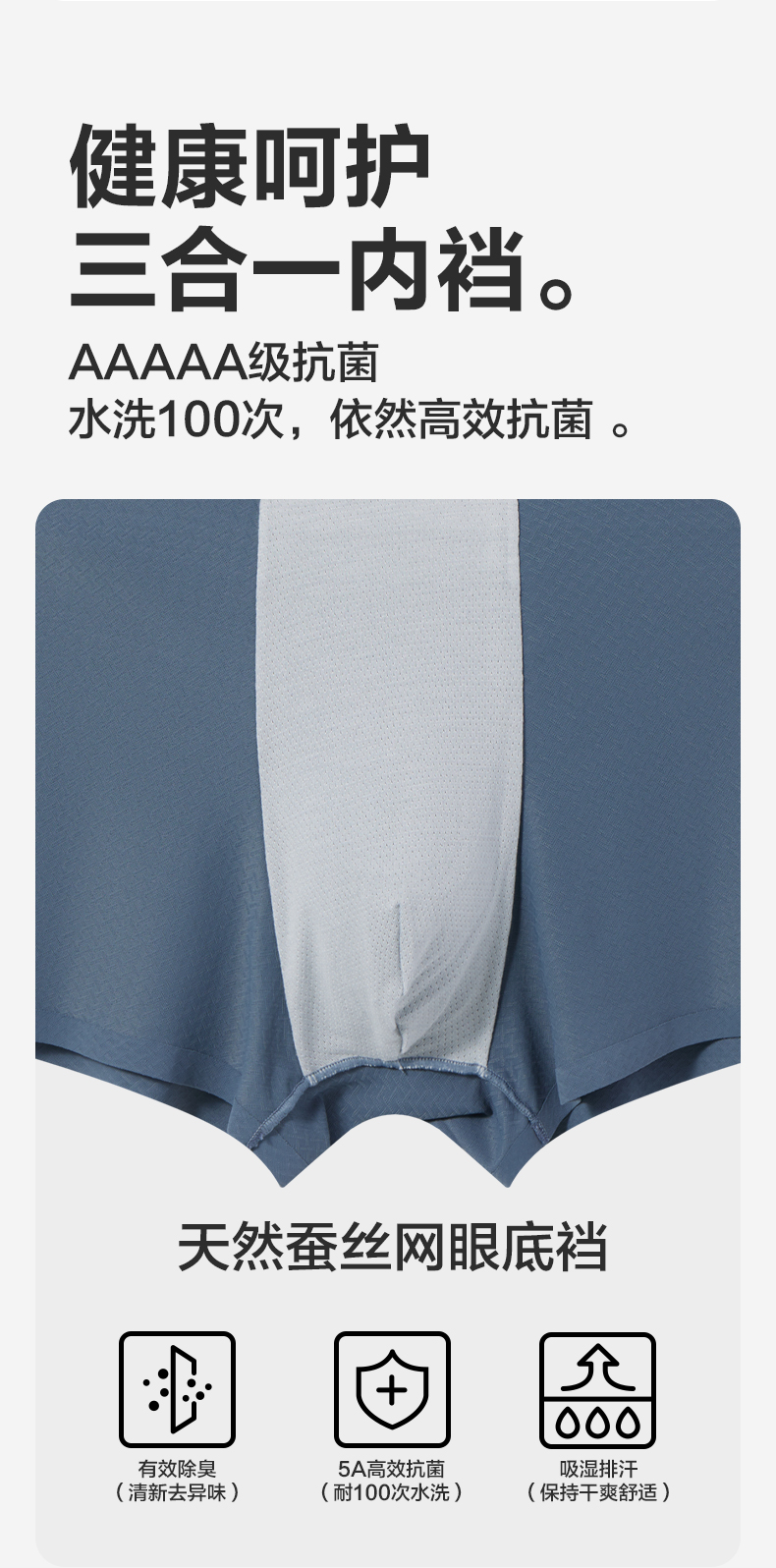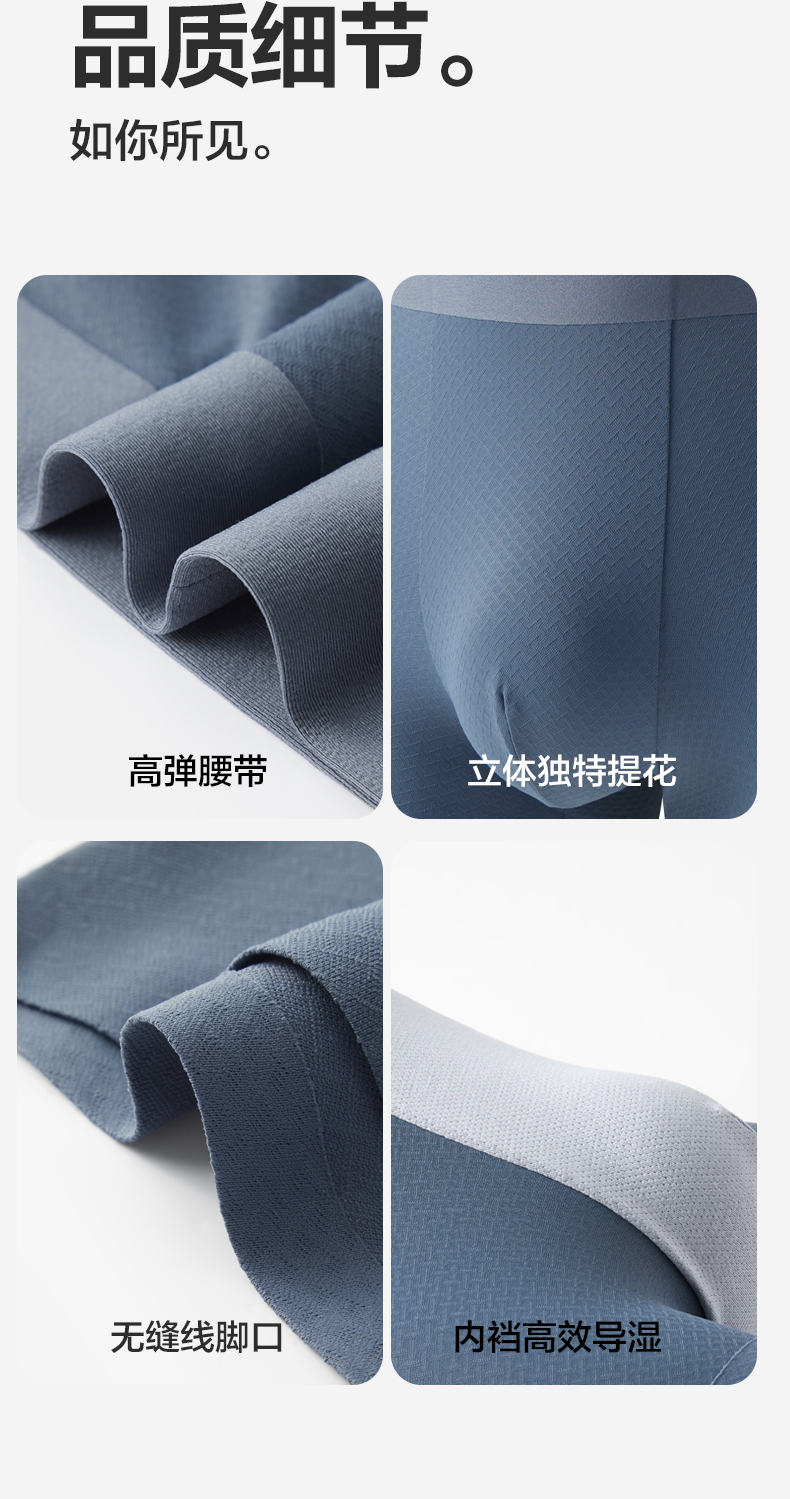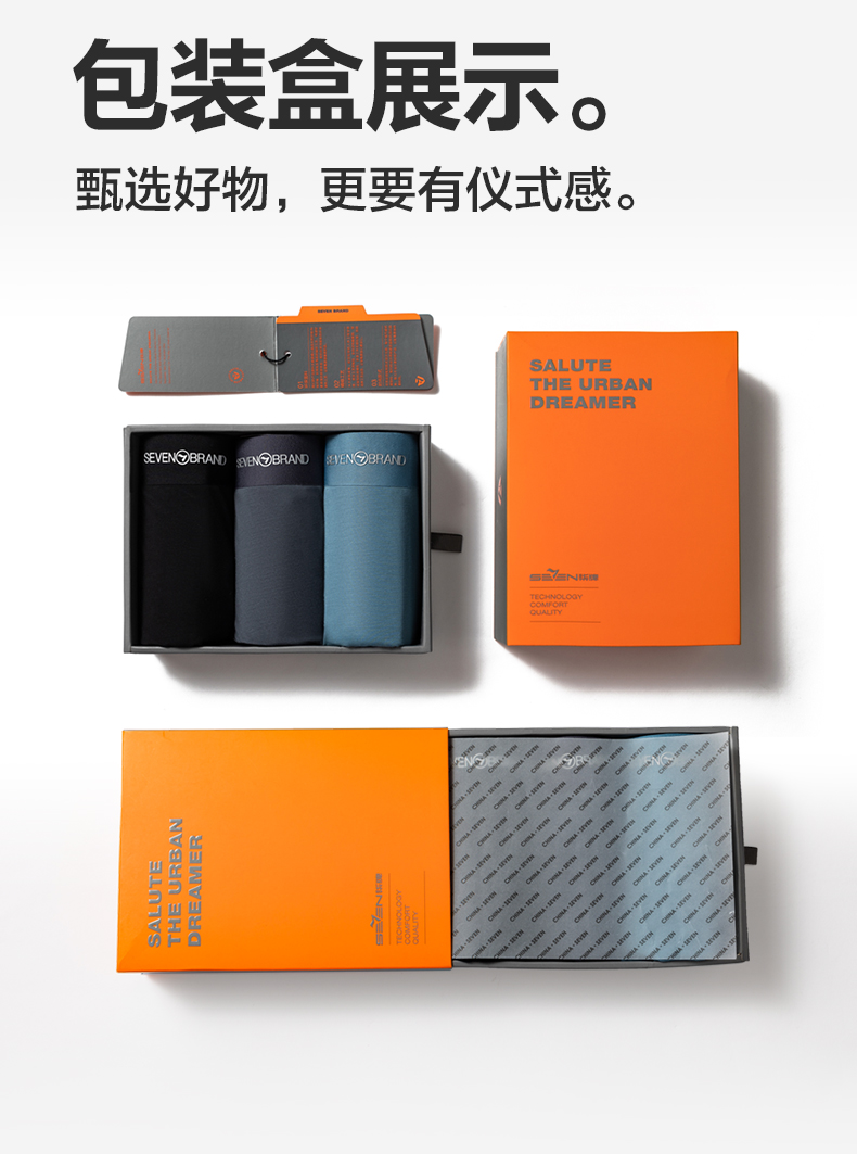 【礼盒3条装】柒牌薄弹无痕60支男士平角内裤5A抗菌快速消臭凉感冰丝 126F70140