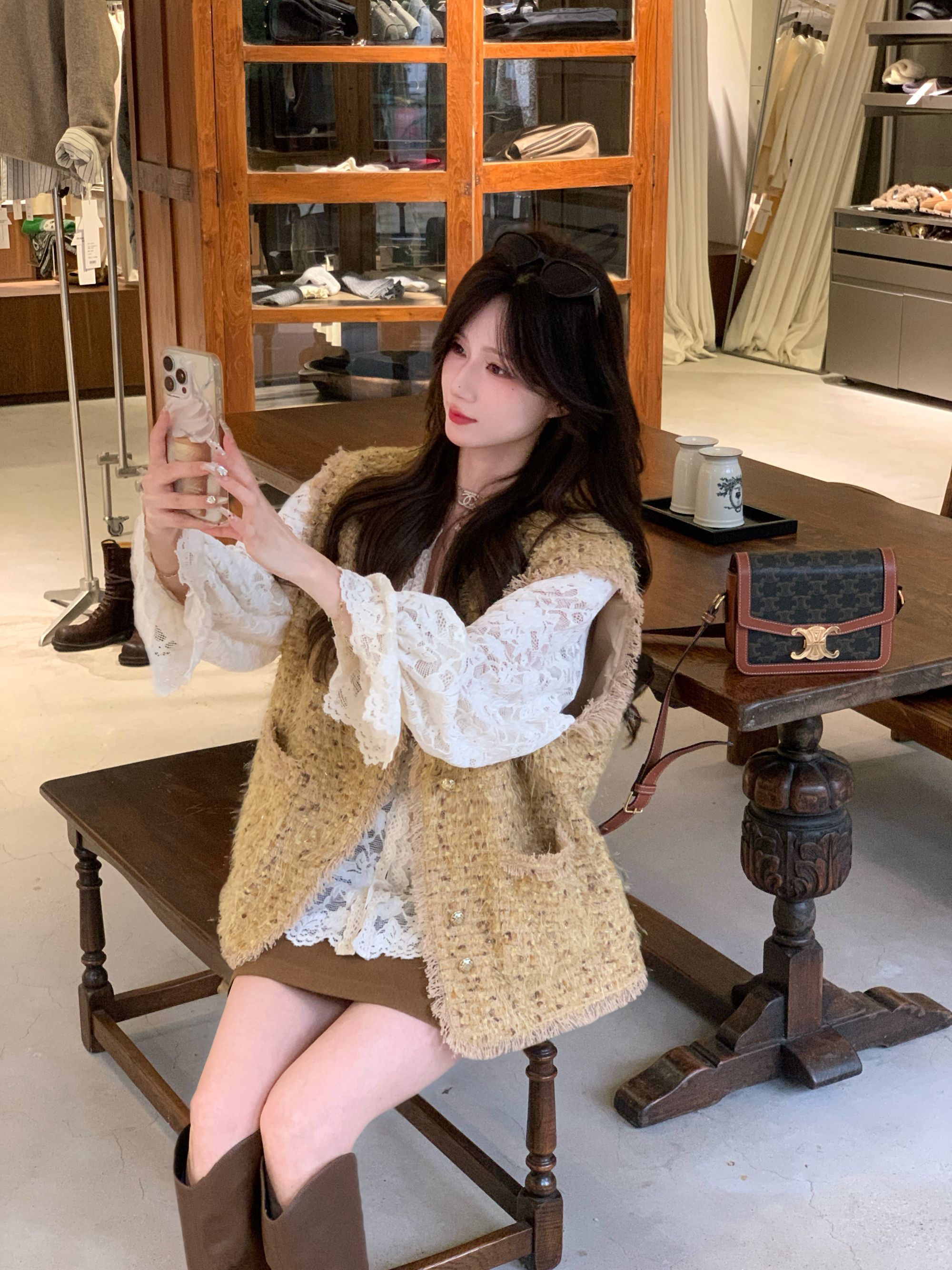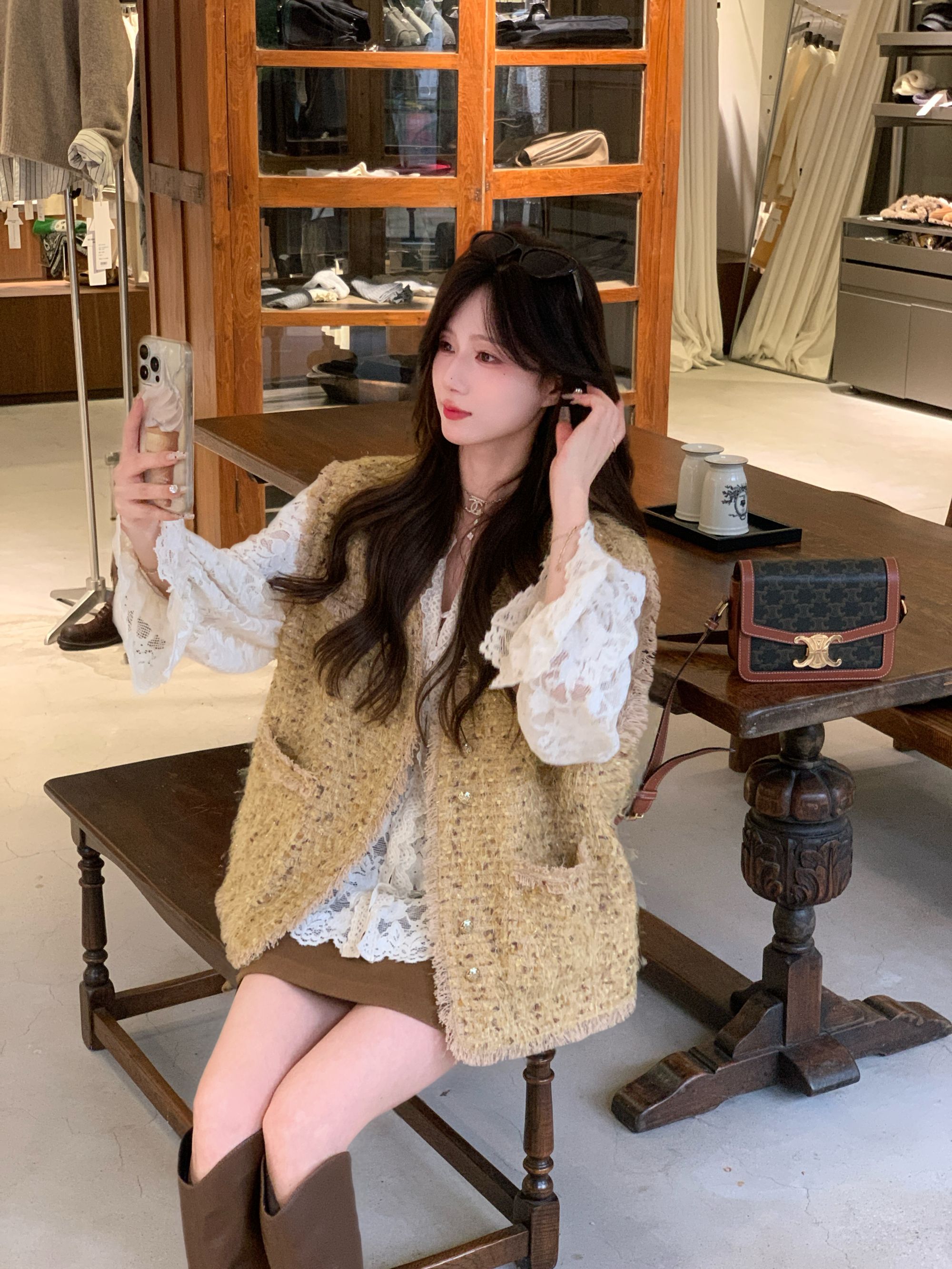 金蘑菇菇【奢雅典范】设计师高定精致香香风流苏边加厚秋冬马甲外套女
