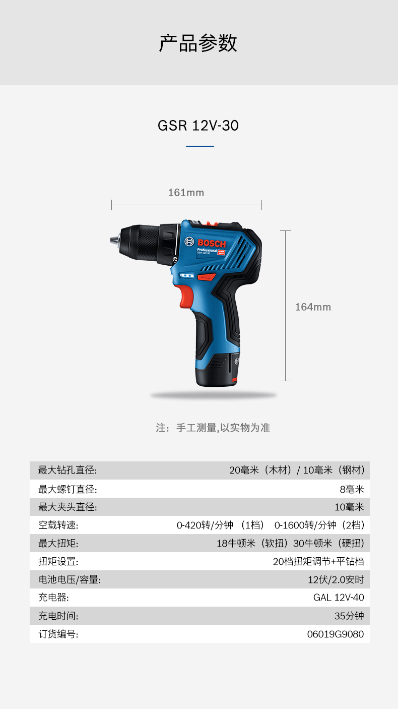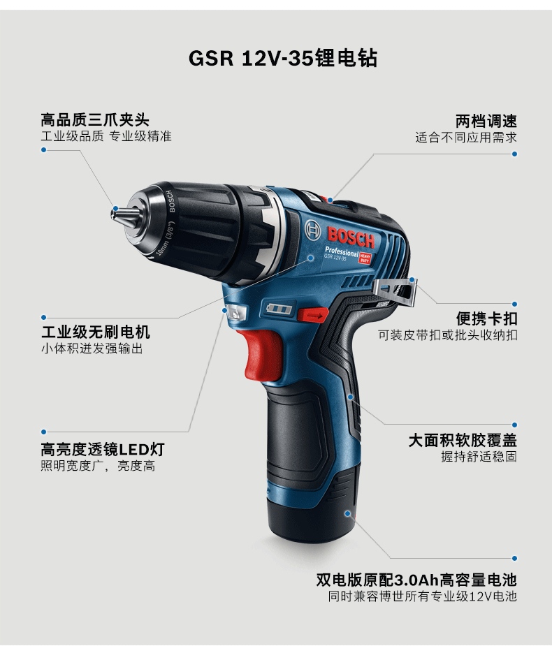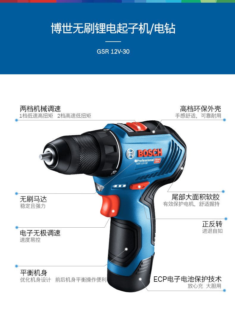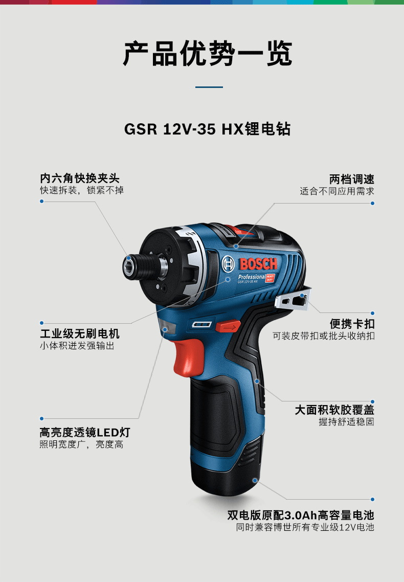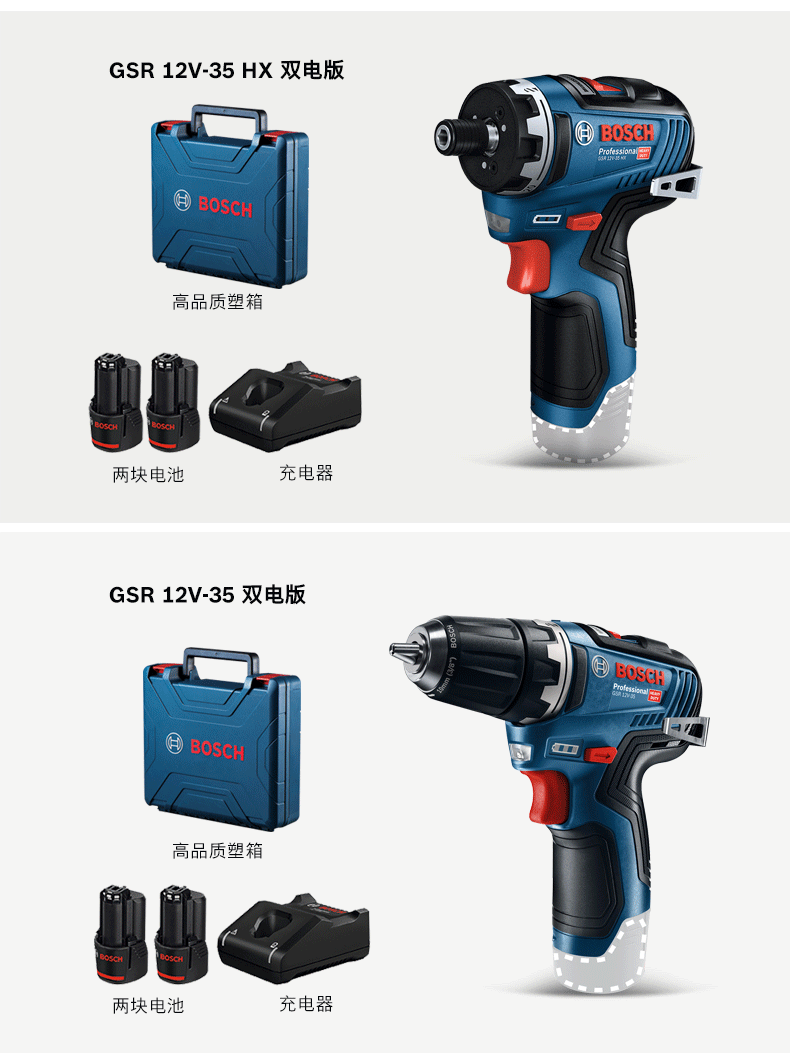 博世(BOSCH)充电式电钻起子机GSR 12V-30/35/35HX双电