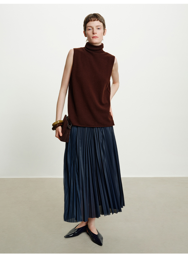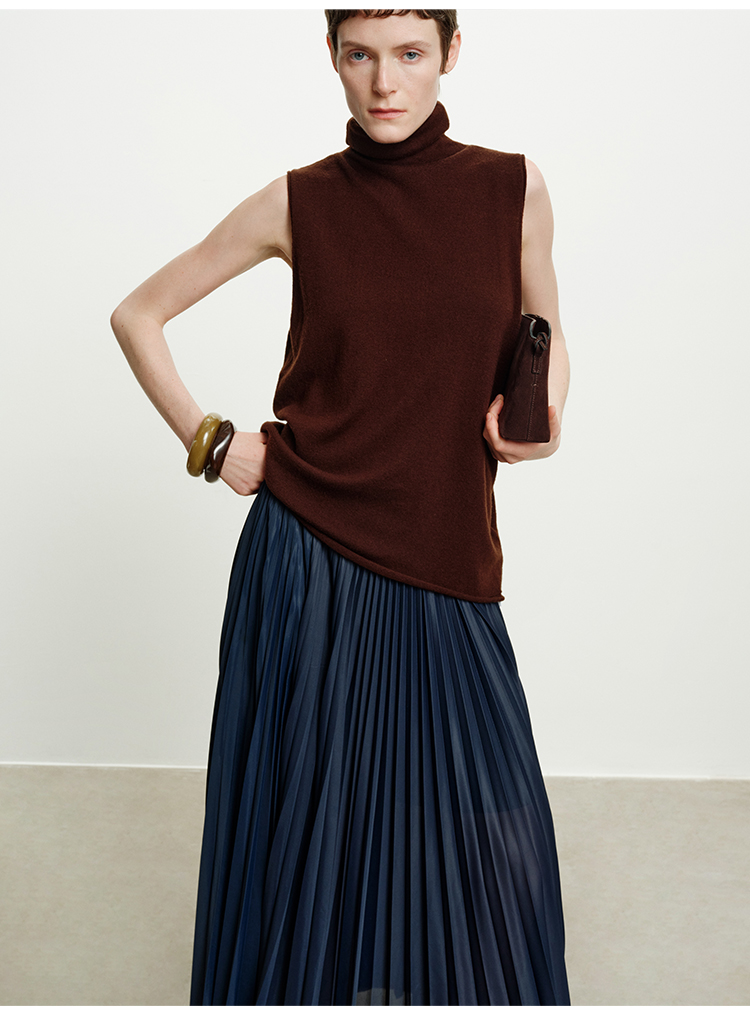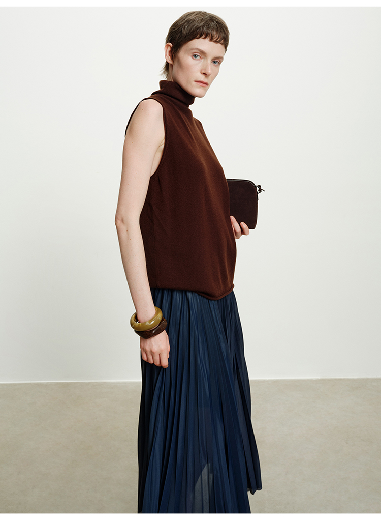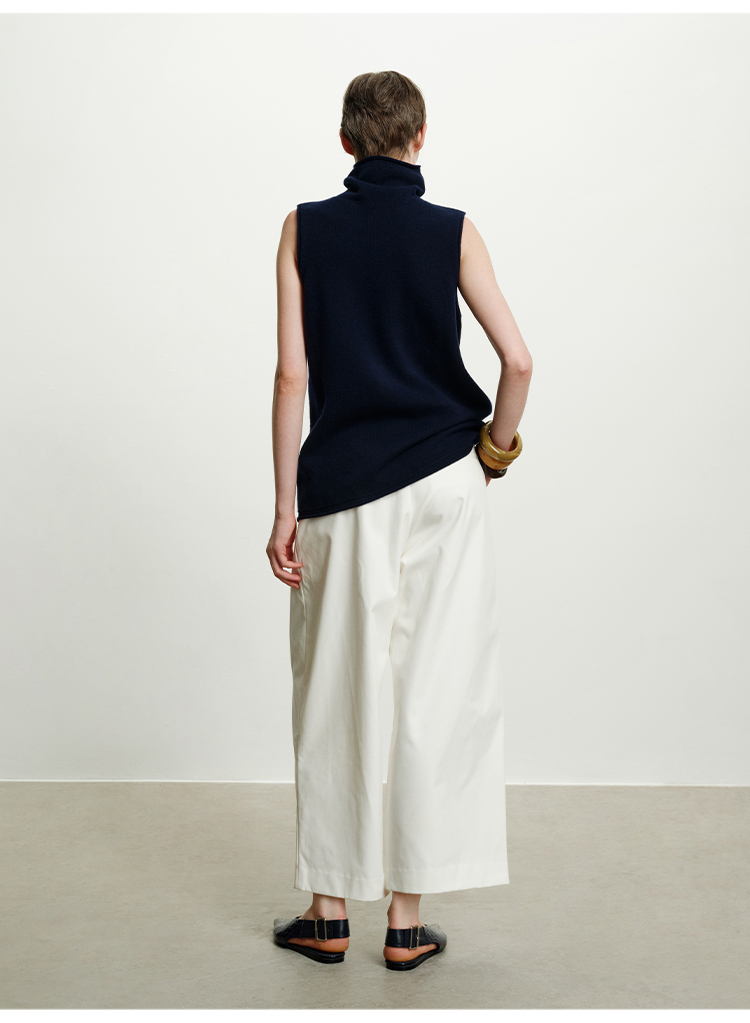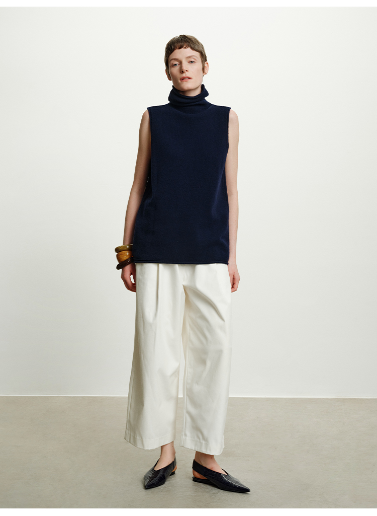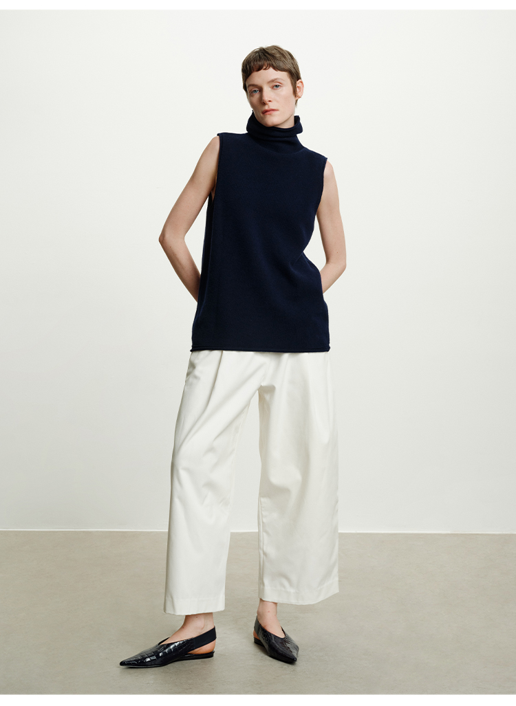HIDEMI 澳洲进口美利奴羊毛立领堆堆领极简多穿针织毛衣背心 深藏蓝/巧克力色/黑色/奶油黄