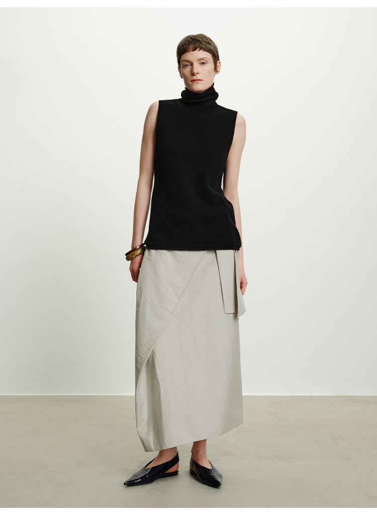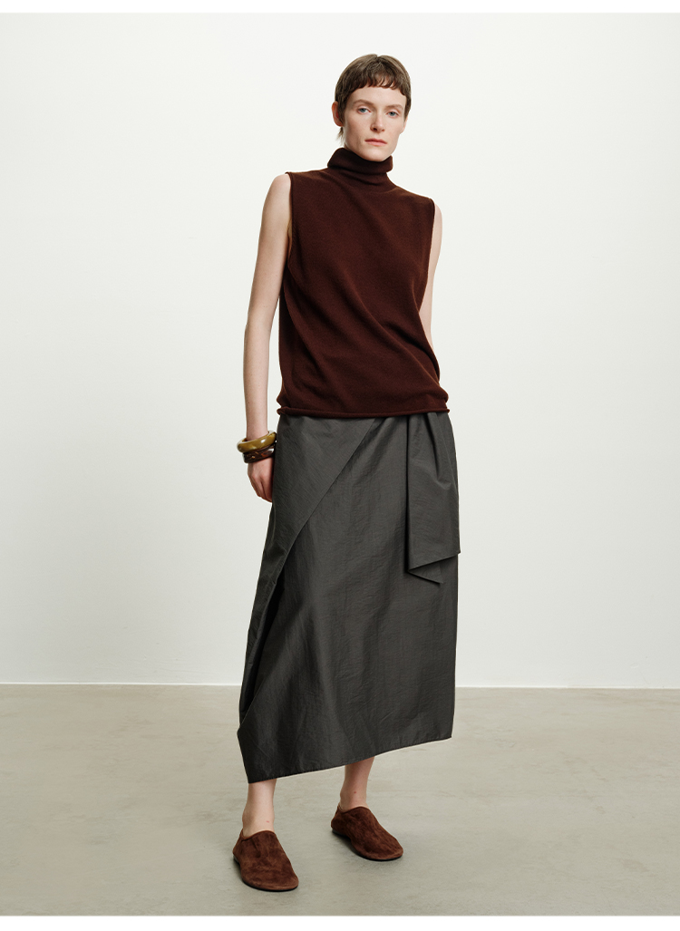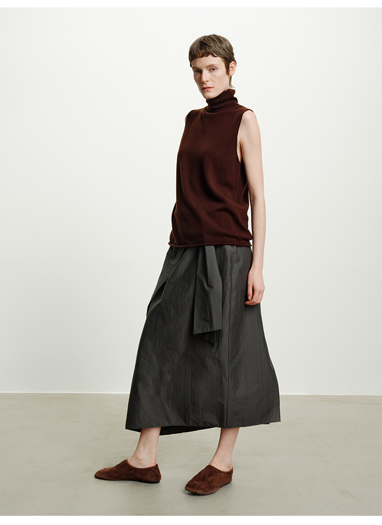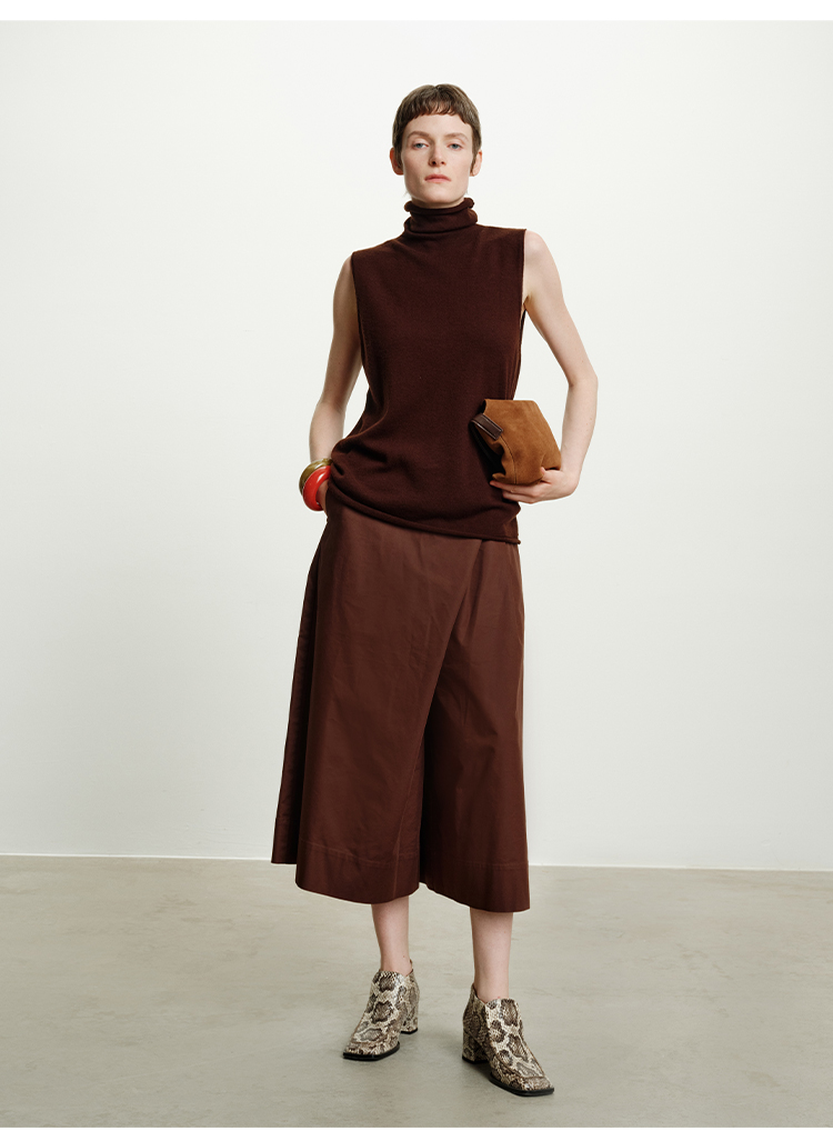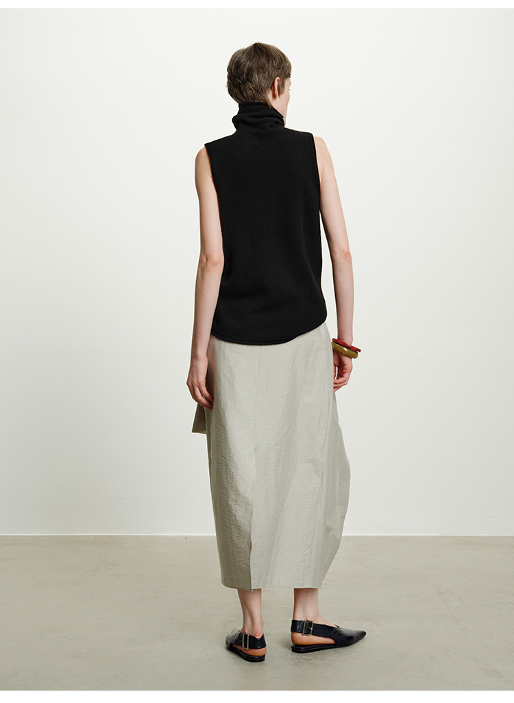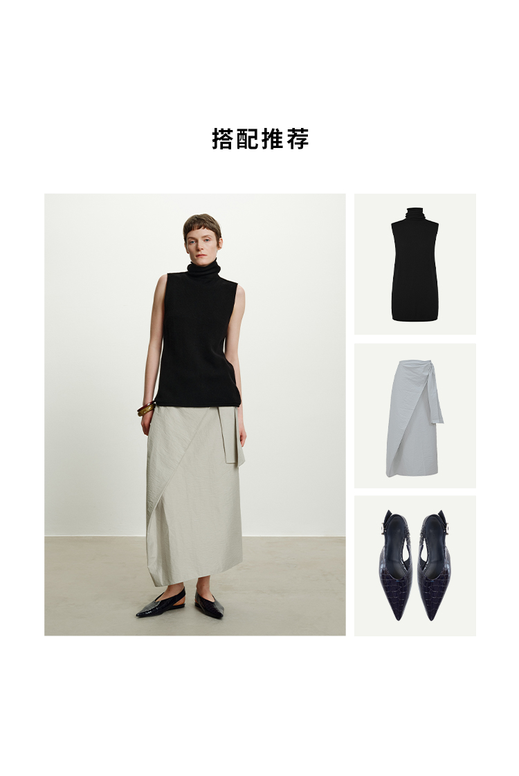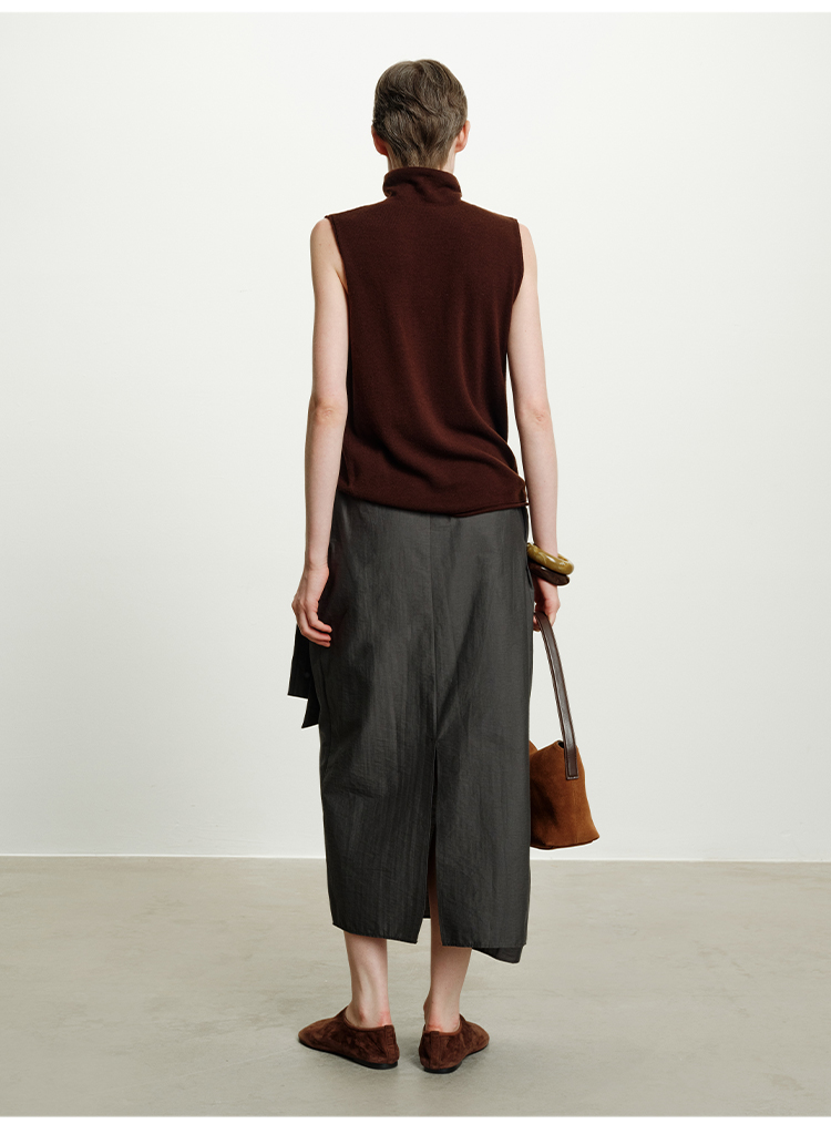HIDEMI 澳洲进口美利奴羊毛立领堆堆领极简多穿针织毛衣背心 深藏蓝/巧克力色/黑色/奶油黄