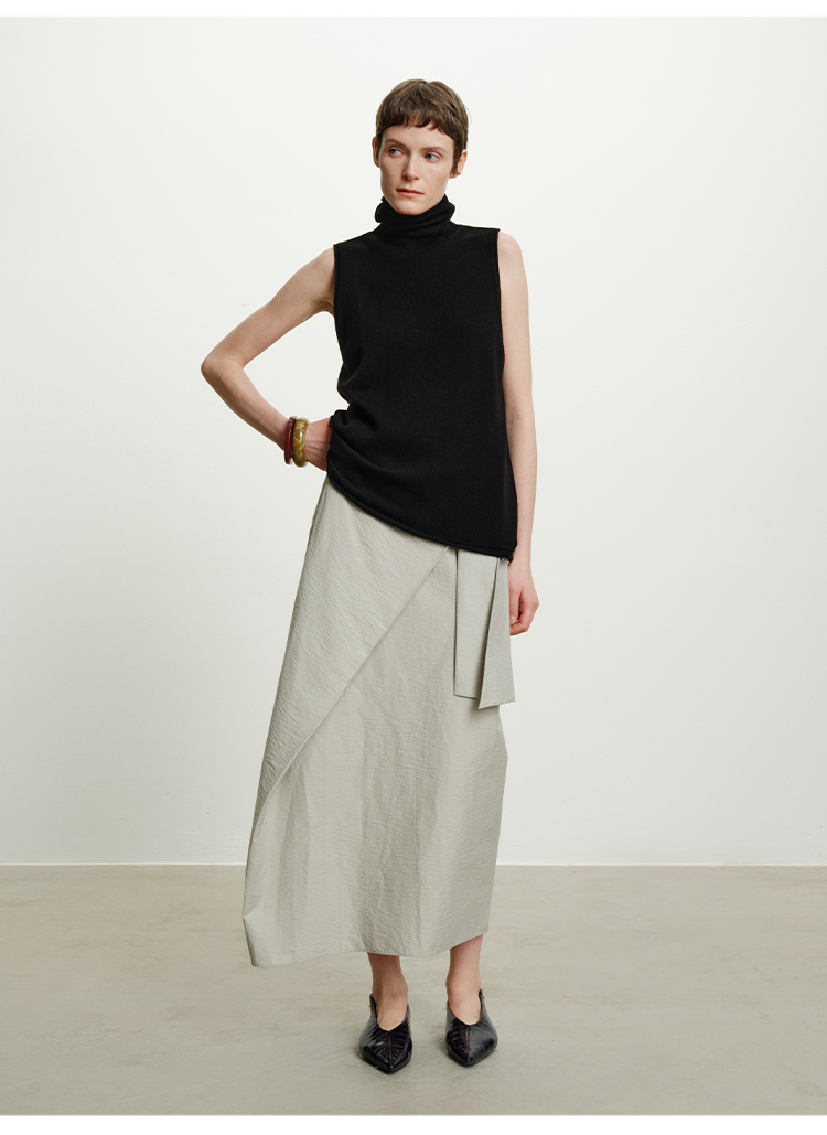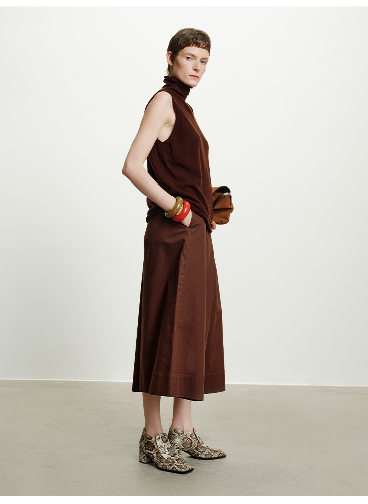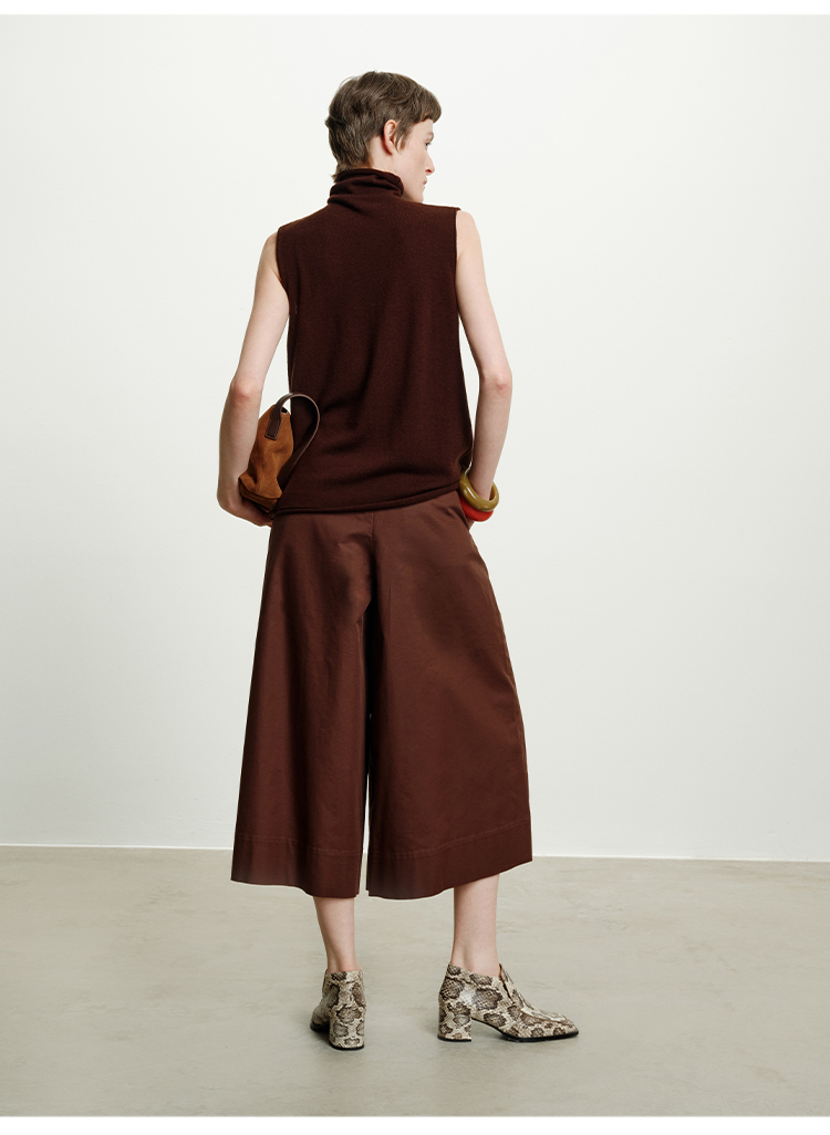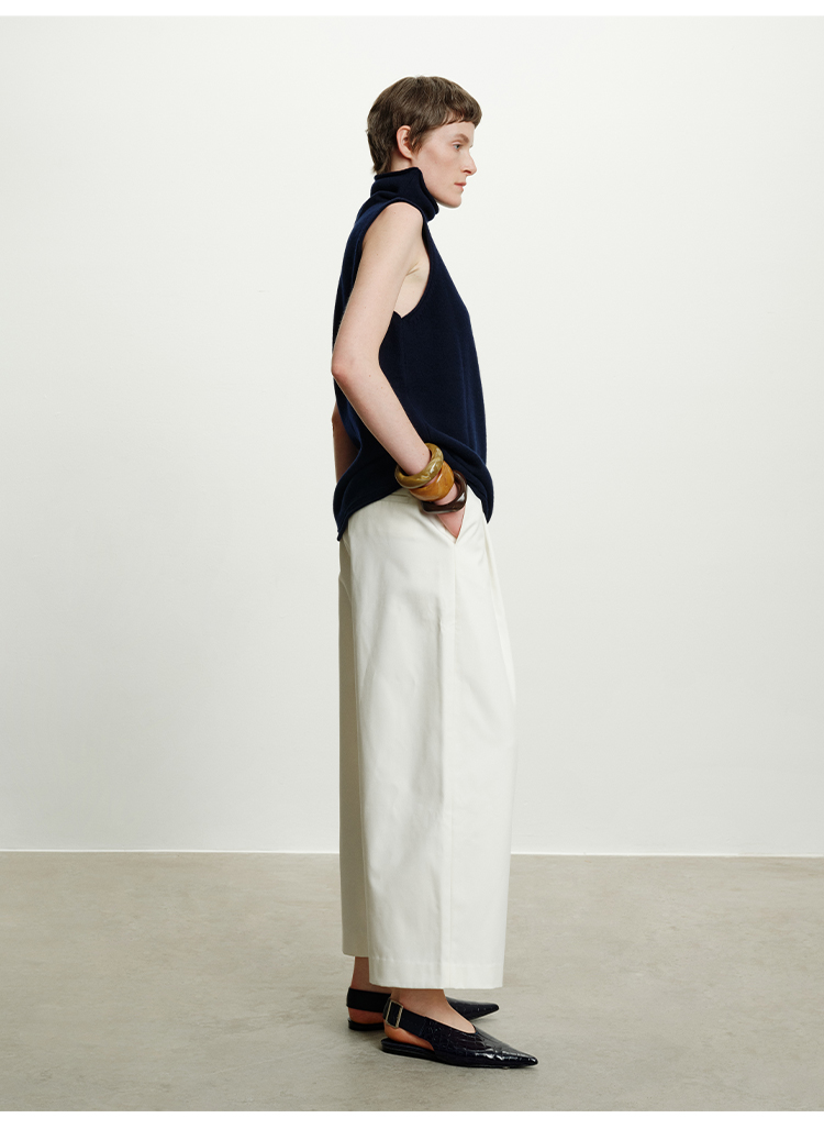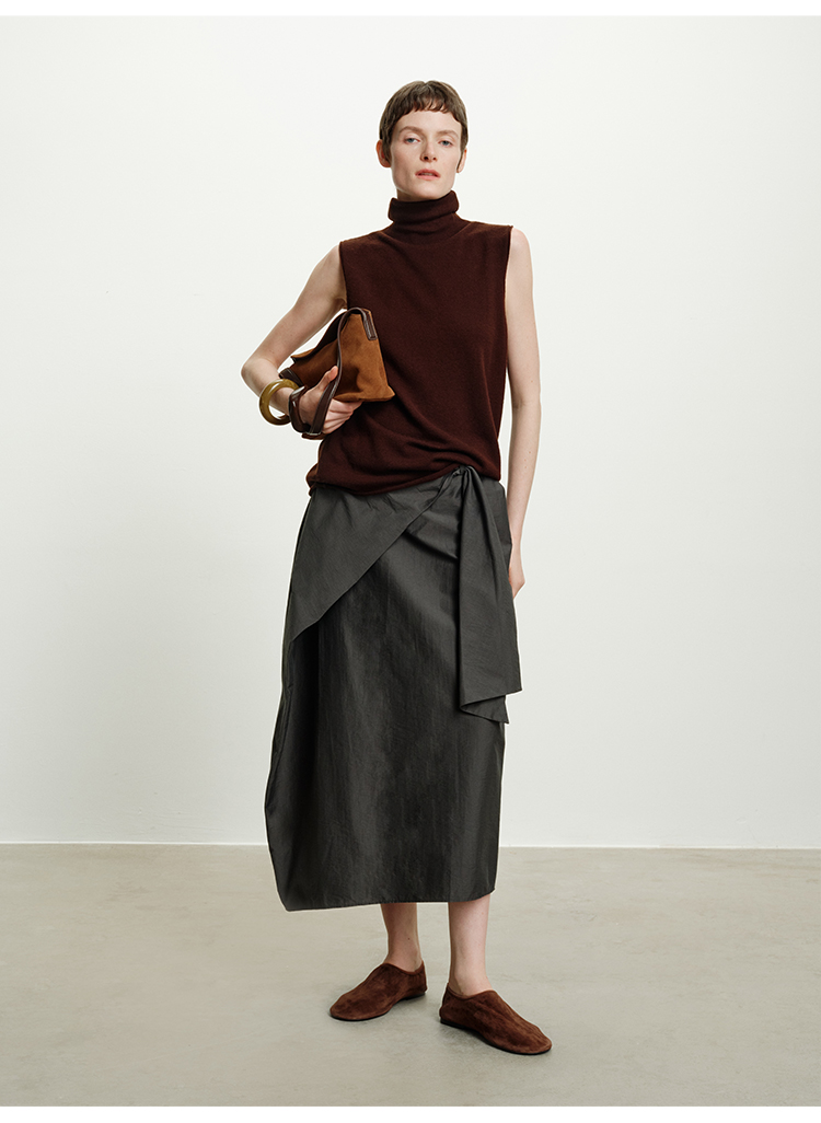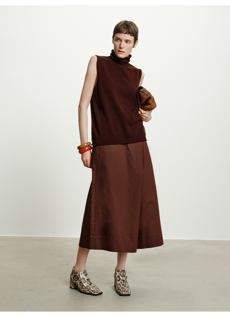 HIDEMI 澳洲进口美利奴羊毛立领堆堆领极简多穿针织毛衣背心 深藏蓝/巧克力色/黑色/奶油黄