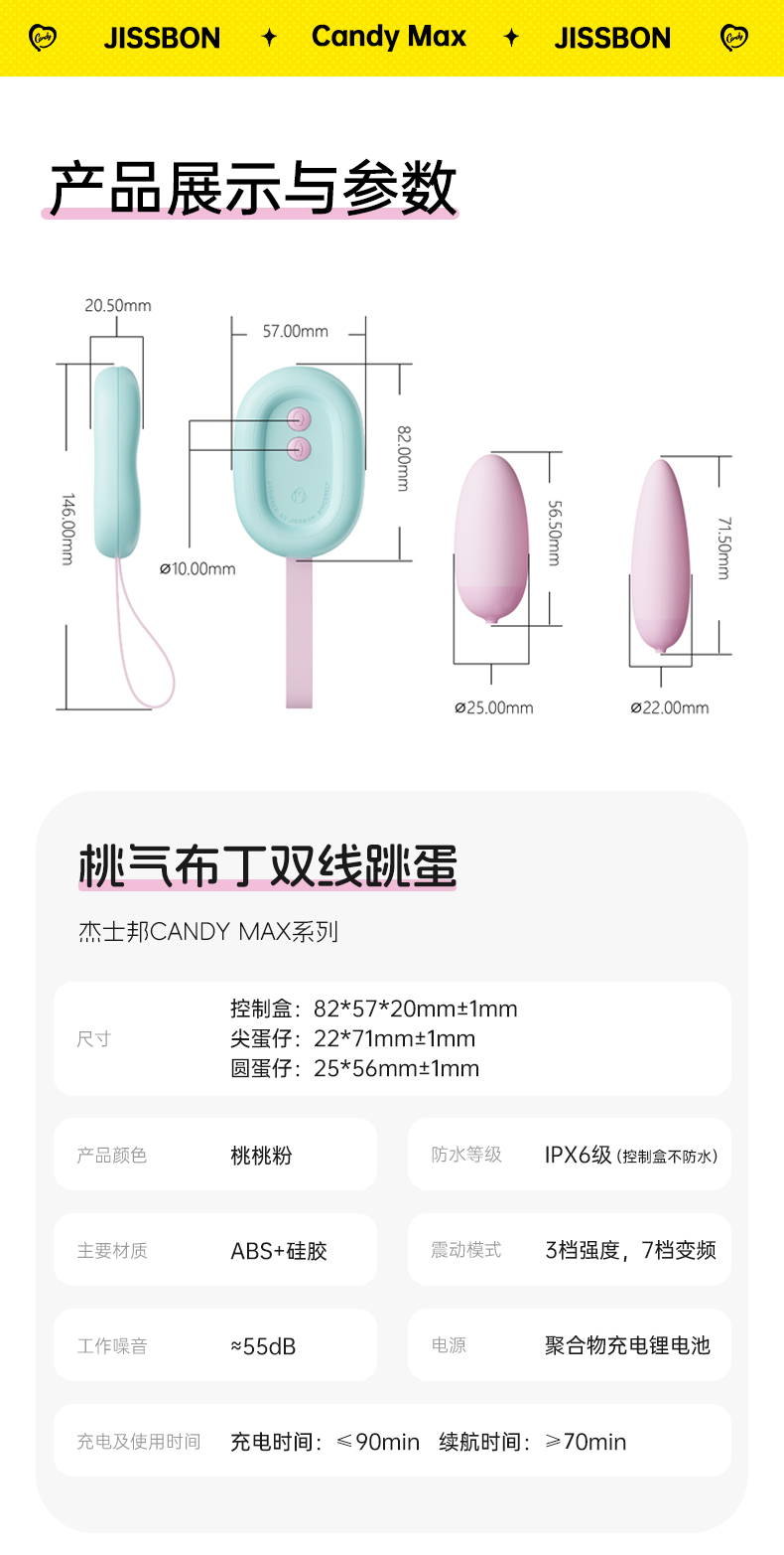 杰士邦Candy Max系列桃气布丁双线跳蛋(JCBDTD)