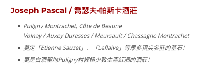 普利尼蒙哈榭(Puligny-Montrachet)村的Joseph Pascal来头可不小,是酒王Leroy和双鸡Leflaive的指定供应商!