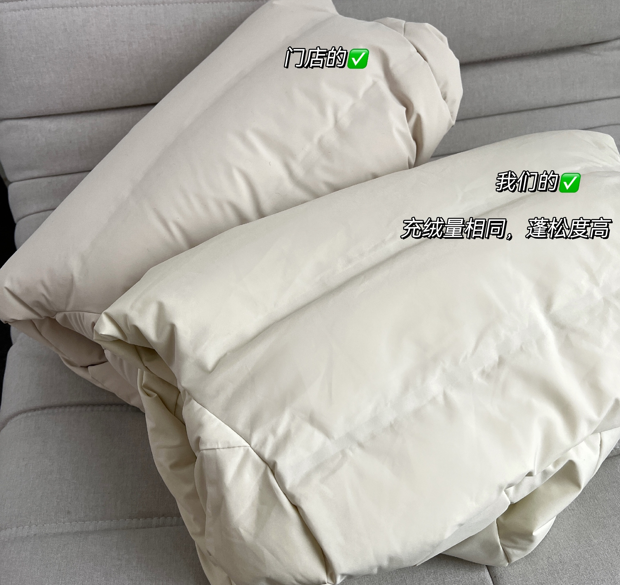 但是我们用的都是正儿八经的白鸭毛!