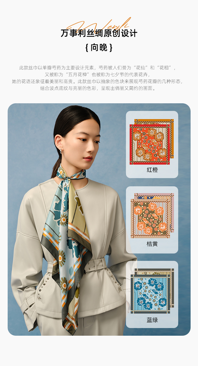 万事利“向晚”63厘米双面印花真丝中方巾