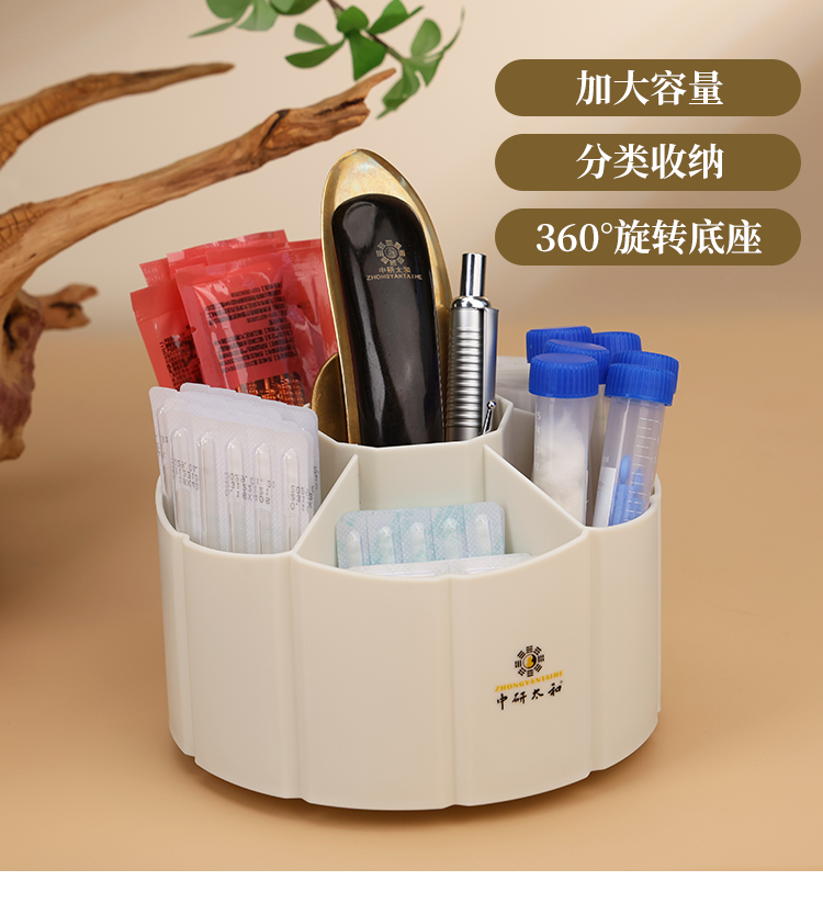 中研太和六格大容量旋转针筒分格收纳盒办公室学生桌面收纳盒