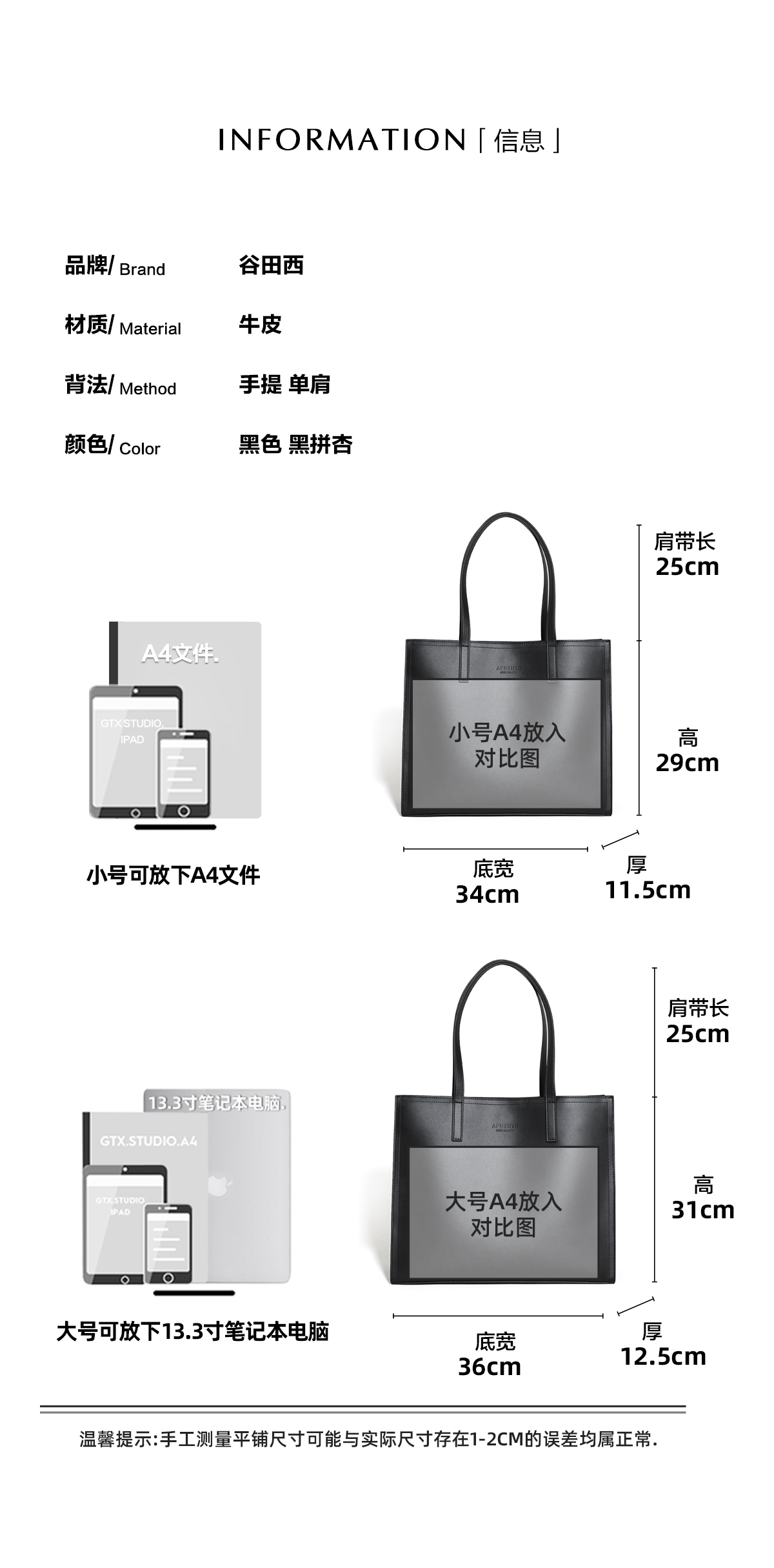 【原创设计】谷田西小众托特包女大容量公文包 进口小牛皮 上班通勤电脑包 单肩手提大包包