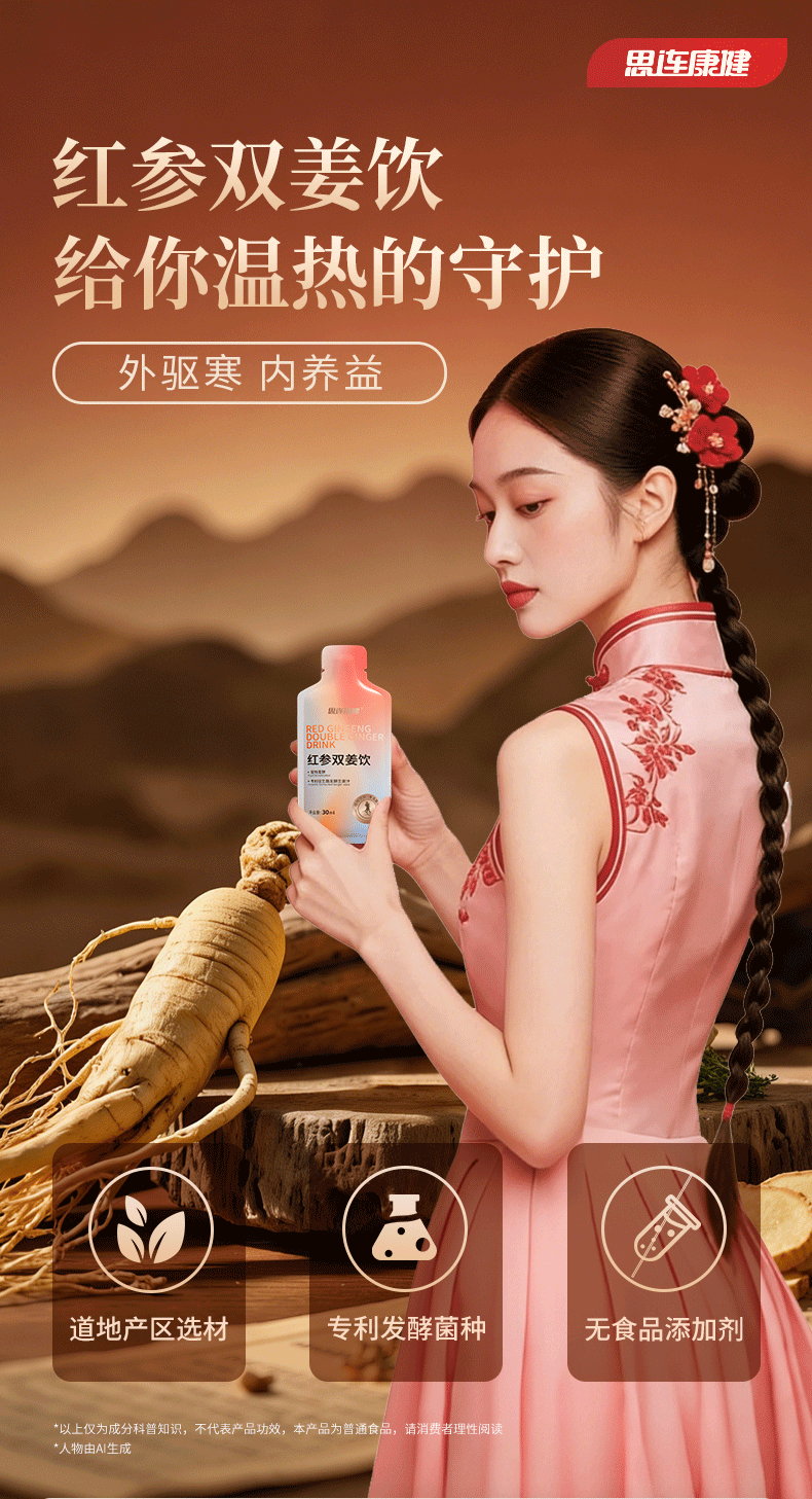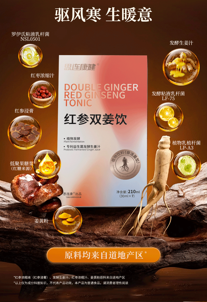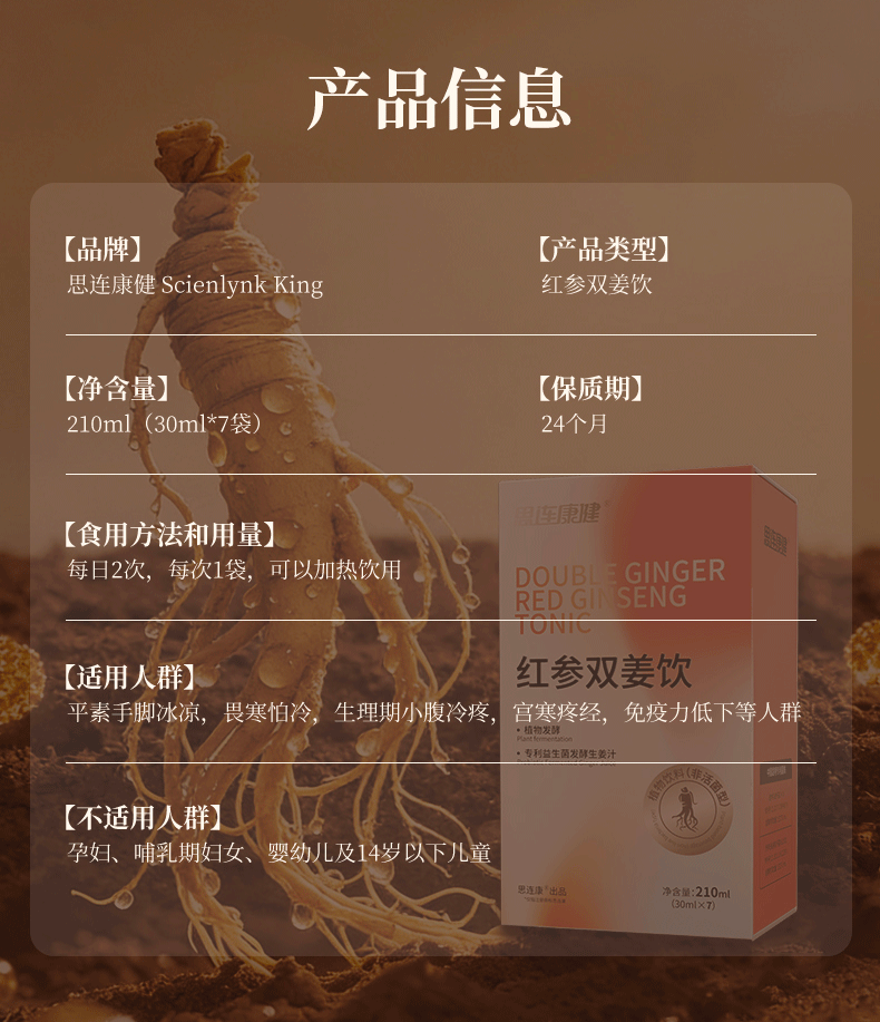 [透小蜜心选]【活动价¥79/盒 ¥139/2盒 ¥199/3盒】思连康健红参双姜饮红参姜黄姜汁益生菌温热暖饮植物饮料