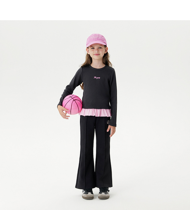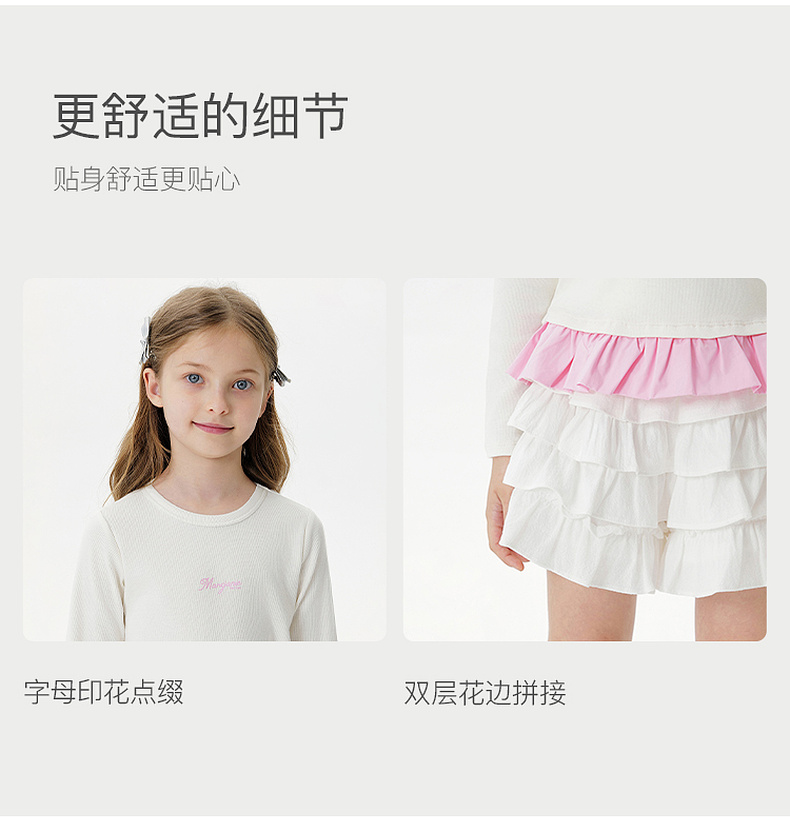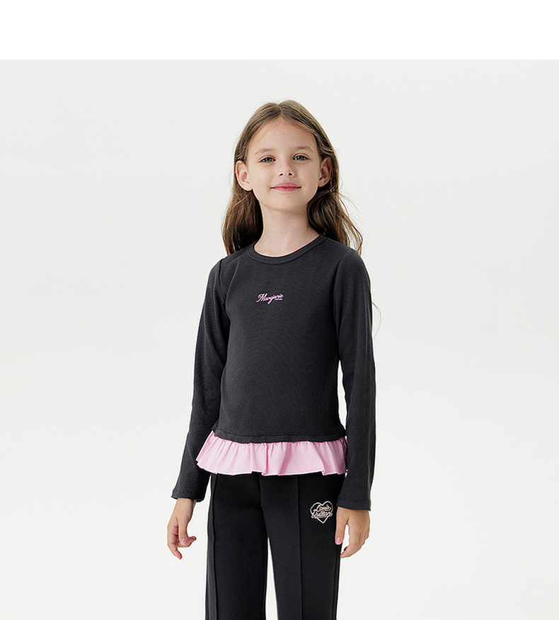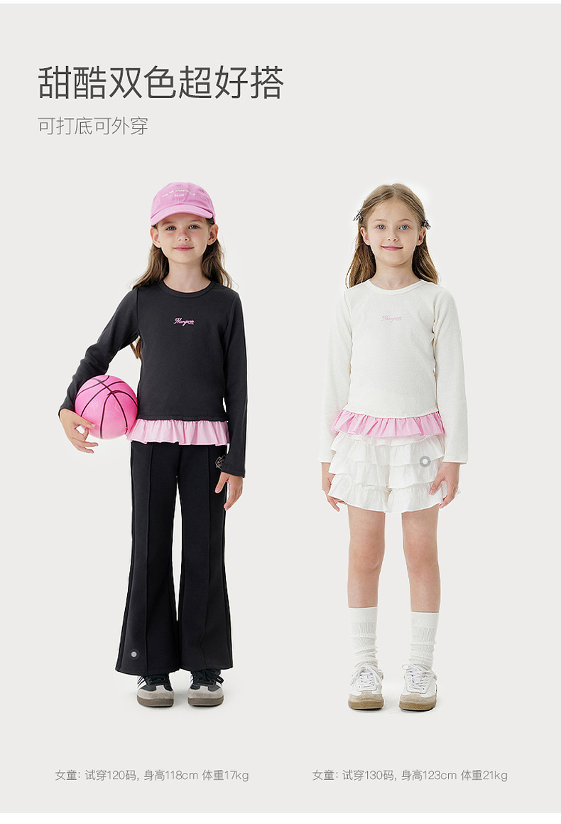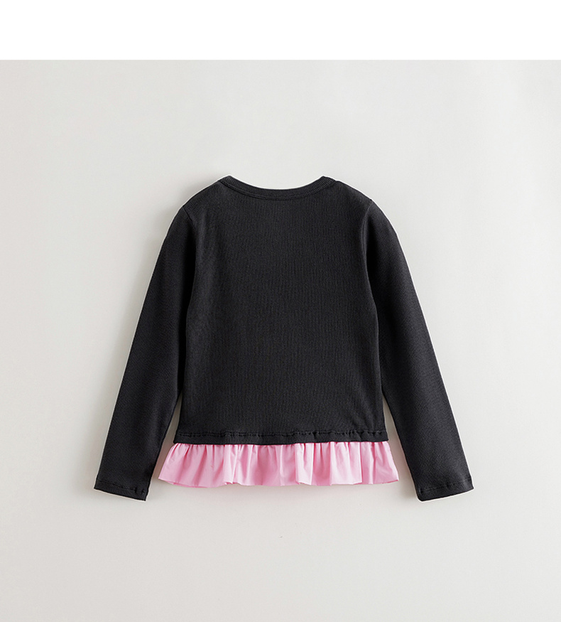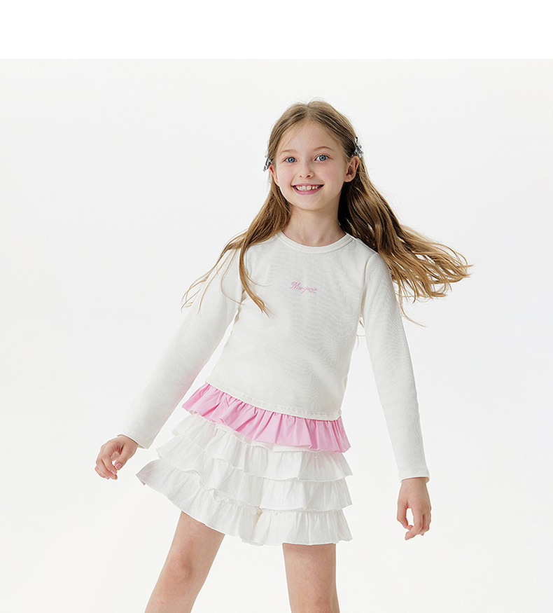 马克珍妮女童云朵软弹花边长袖T恤 儿童针织上衣秋装新品551217