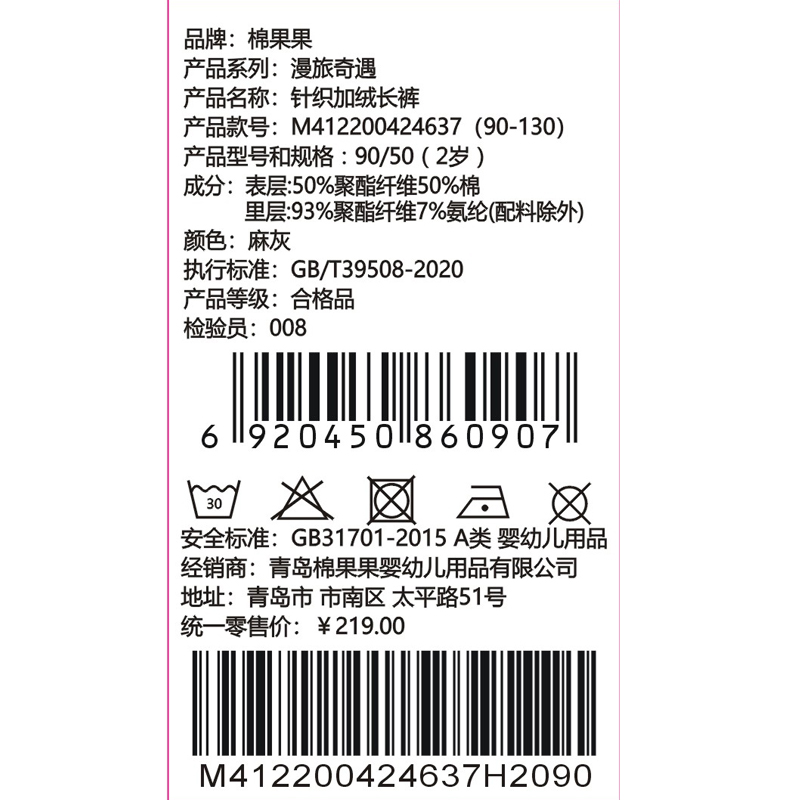 | 总裤长 | 51 | 56.5 | 62.5 | 68.5 | 75 |