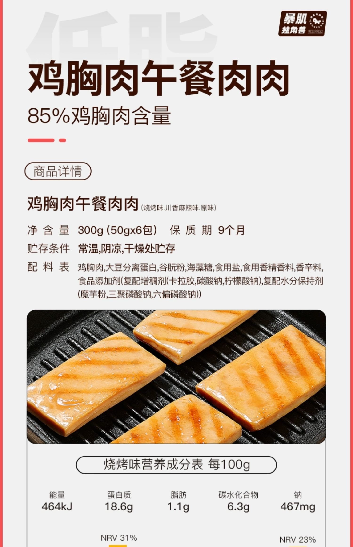 低脂鸡胸肉午餐肉高蛋白切片单独小袋装零食非罐头健身三明治专用