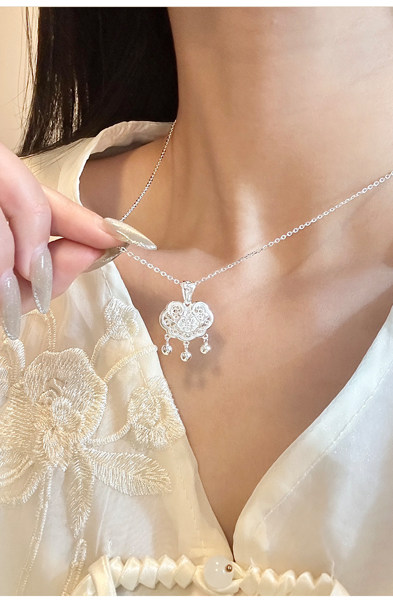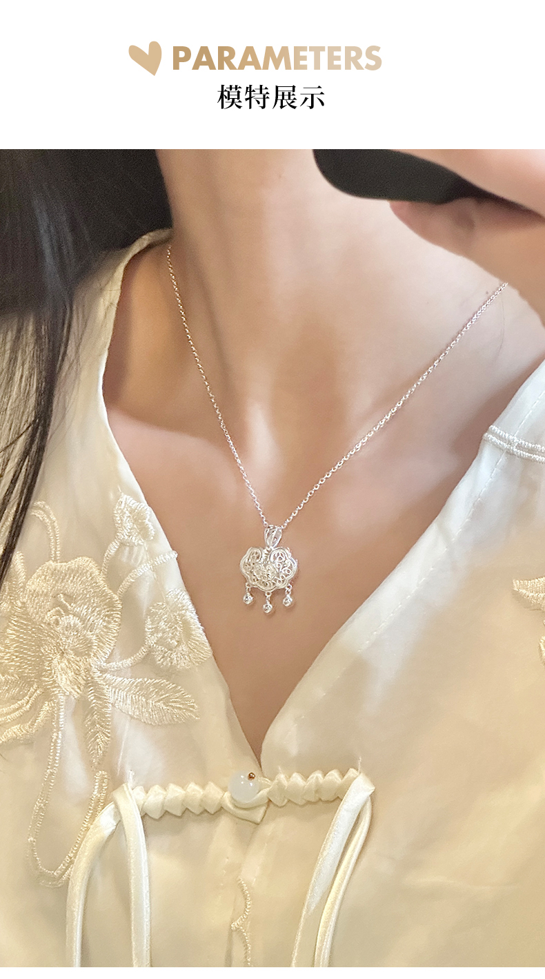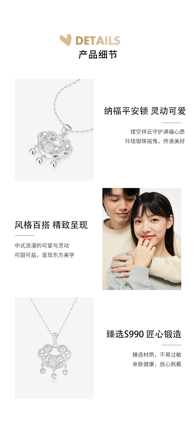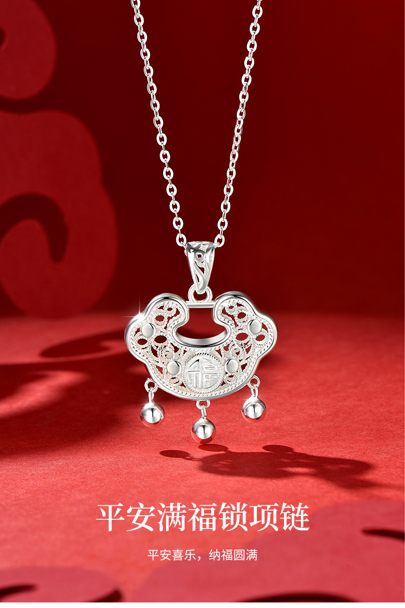 卡蒂罗/KADER 平安满福锁 999足银 新中式古风禅意长命锁吊坠 招财好运平安扣锁骨链祥云平安锁配饰 闺蜜女生礼物