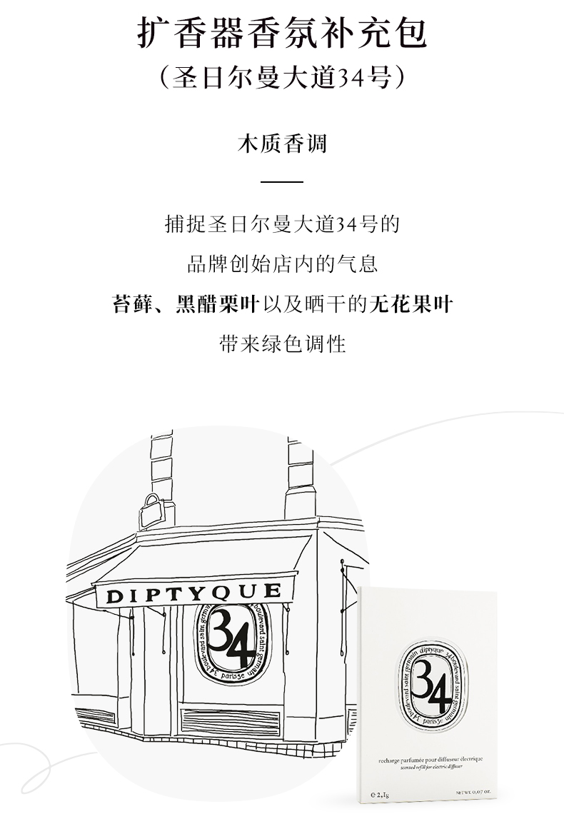 Diptyque 汽车香水车载香薰扩香补充包