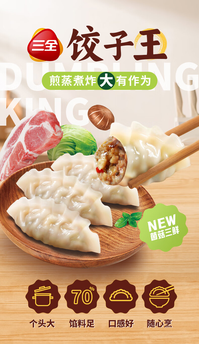 三全菌菇三鲜饺子王420g*2袋 (商)