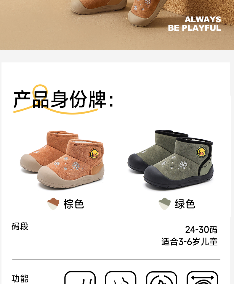 B.Duck小黄鸭童鞋冬季加绒保暖雪地靴24-30码 B5686914
