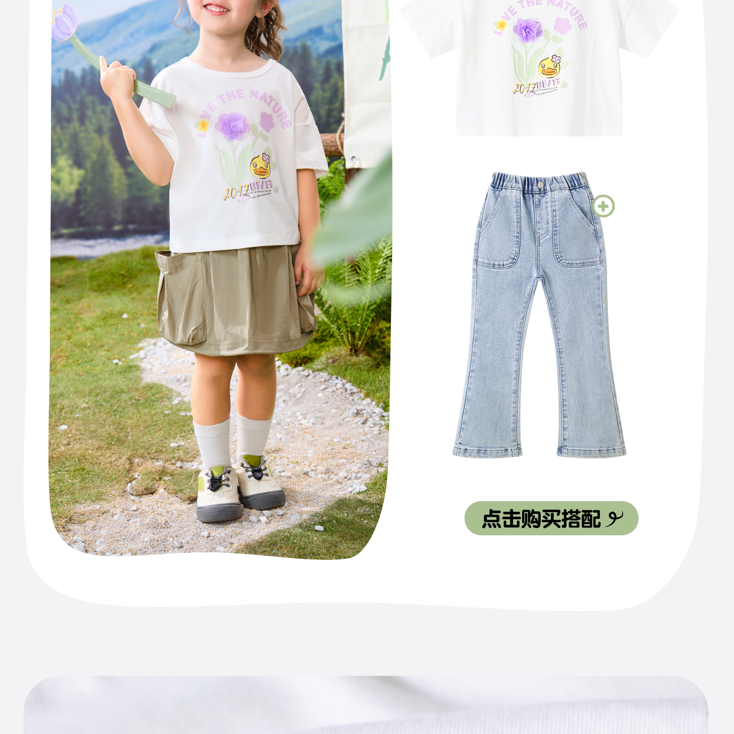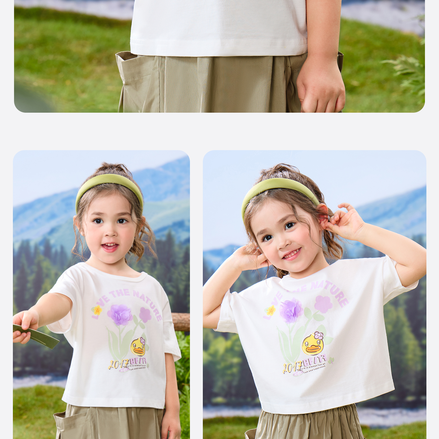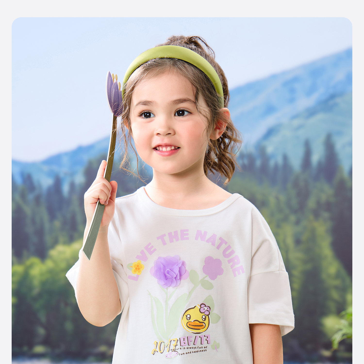 bduck小黄鸭童装夏季女童短袖T恤宝宝上衣儿童夏装纯棉半袖上衣薄90-130 FF2601068