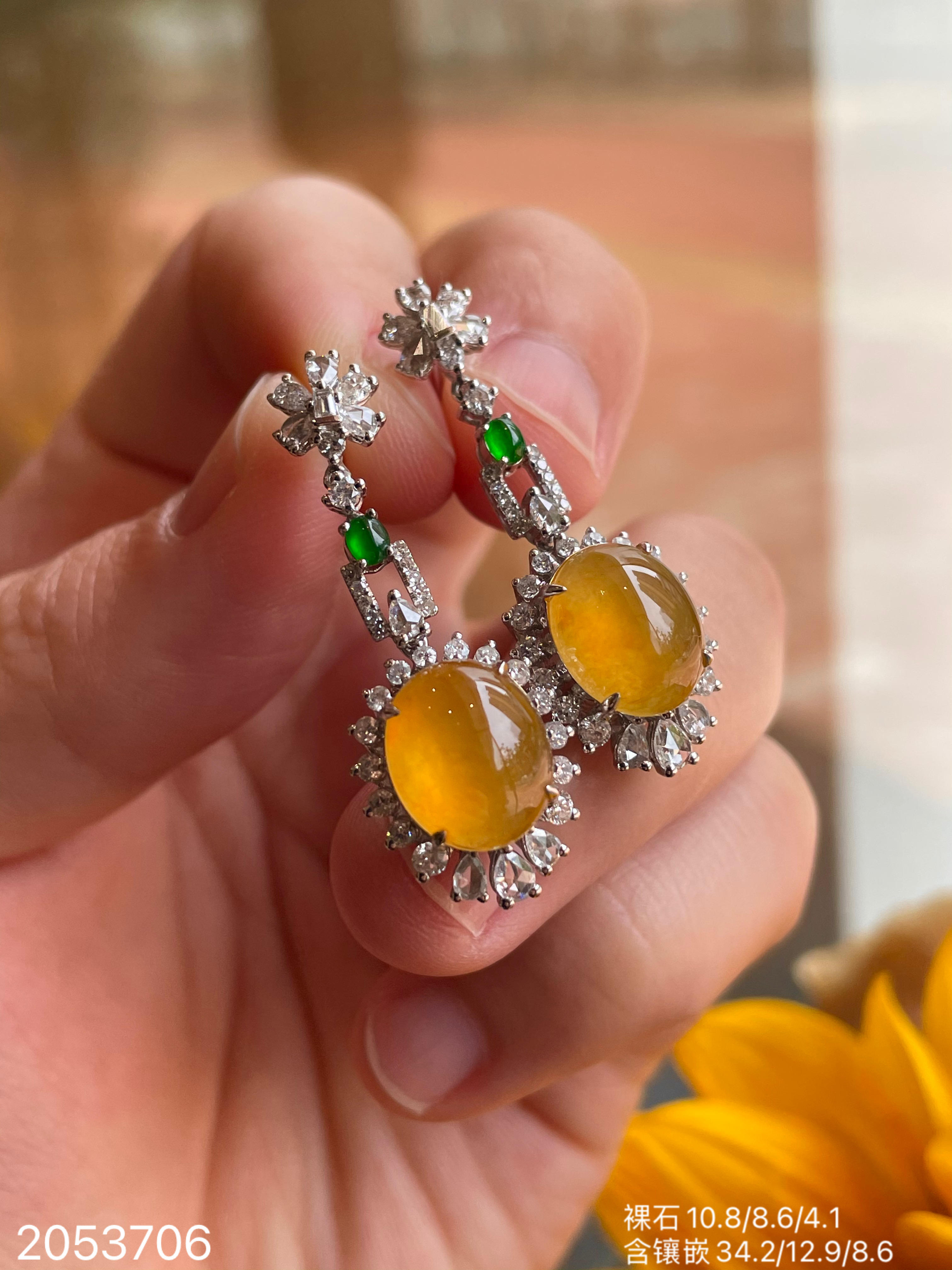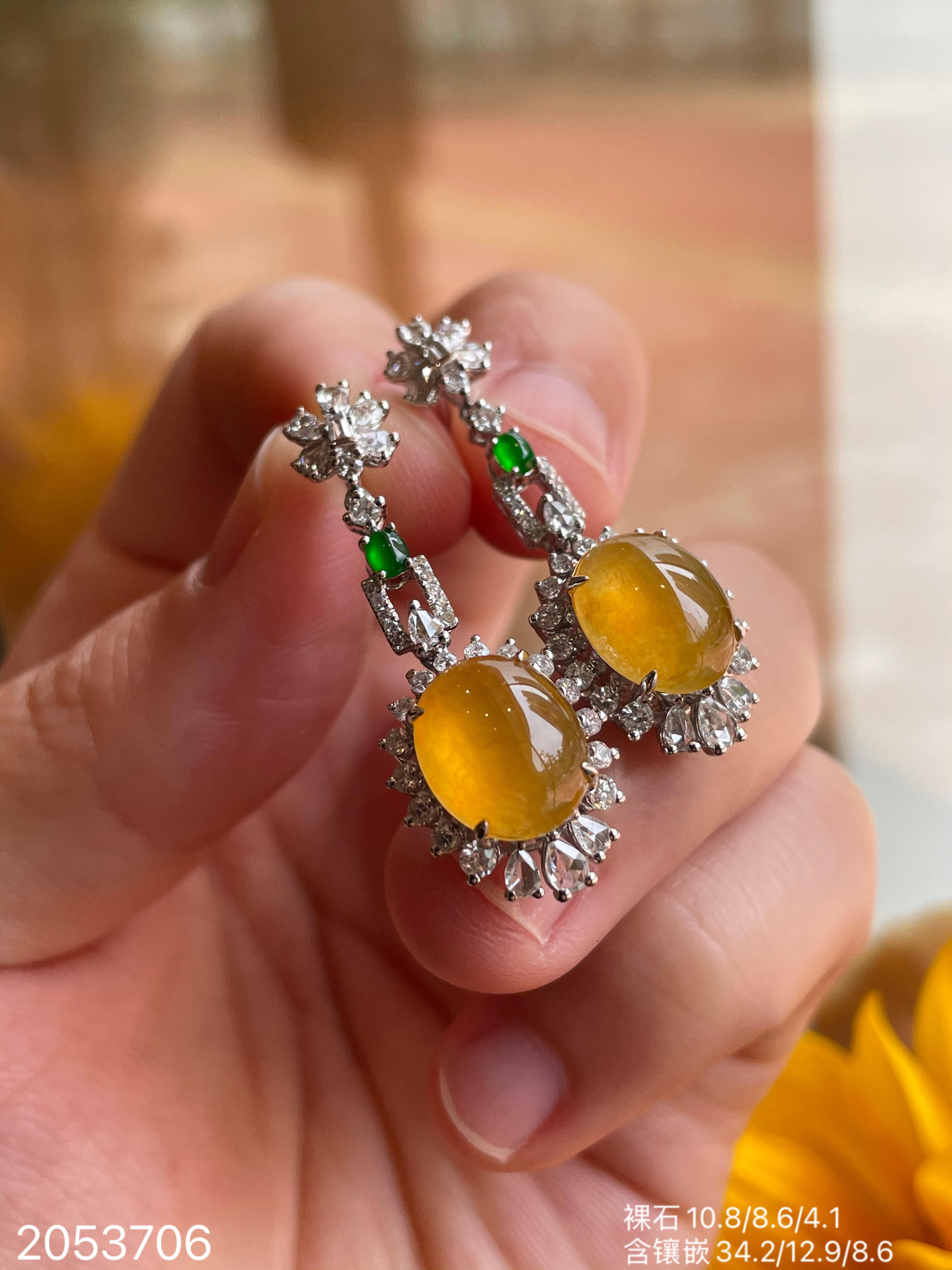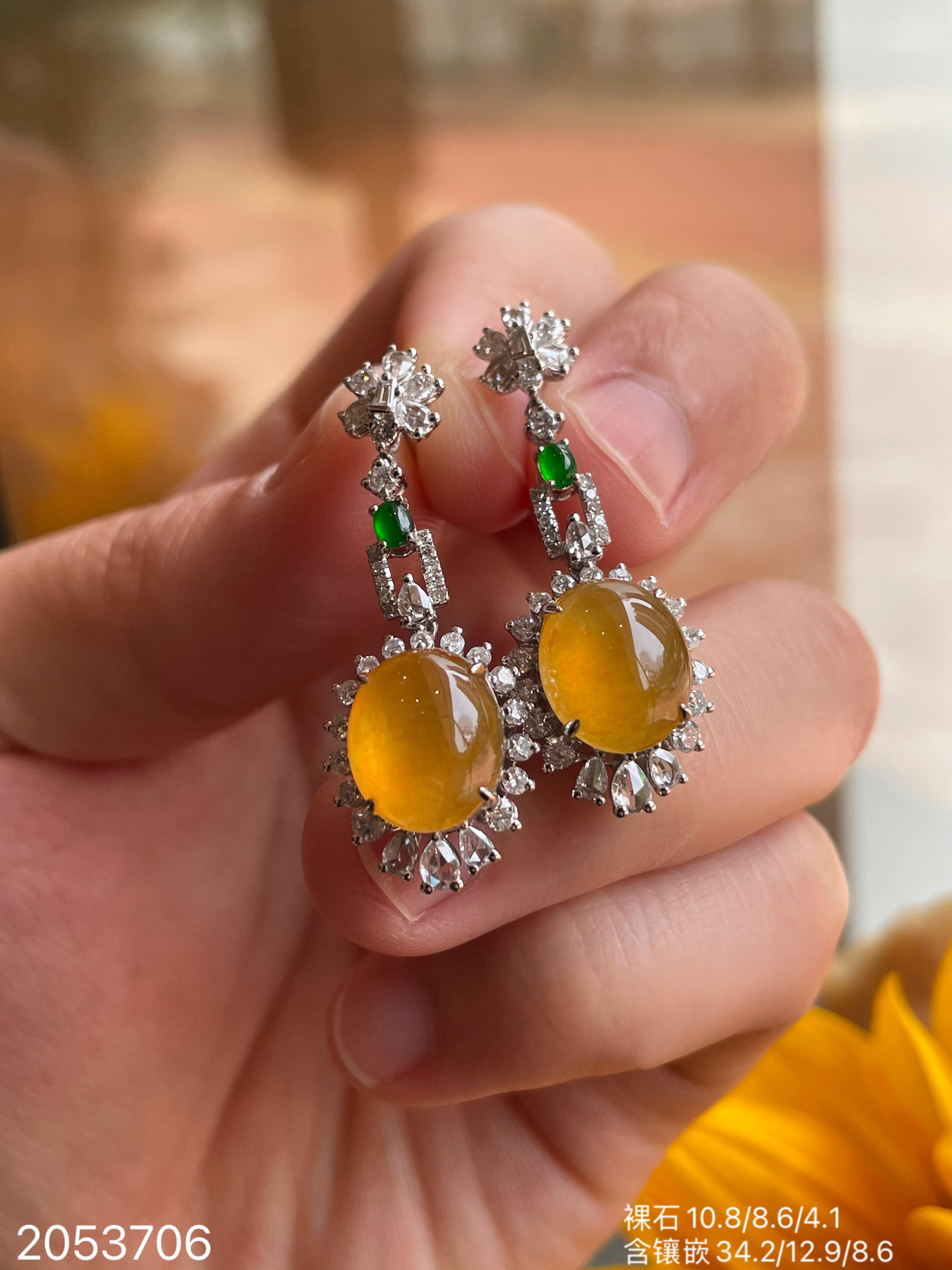 满色玻璃黄翡耳坠,38999【2053706】