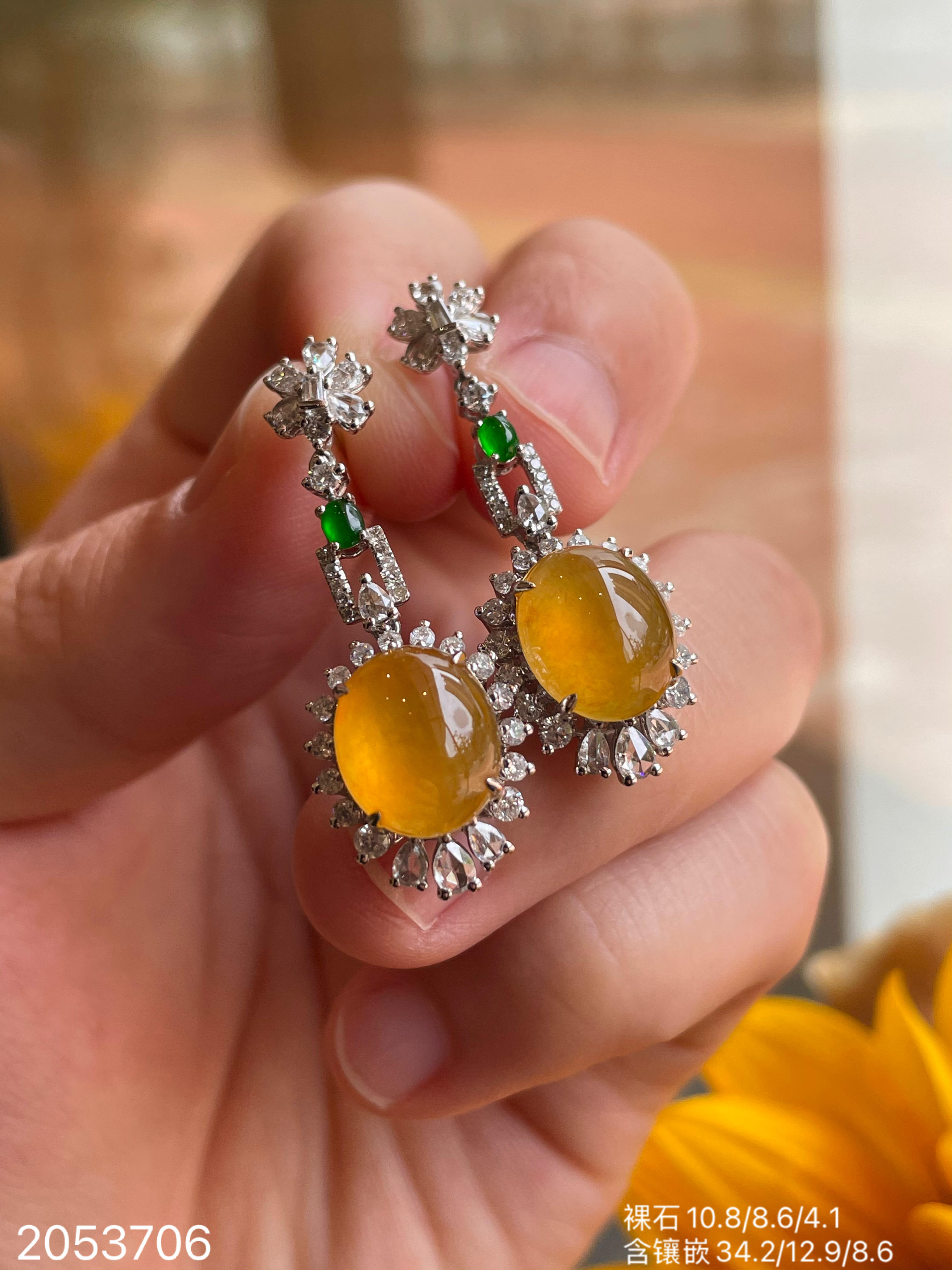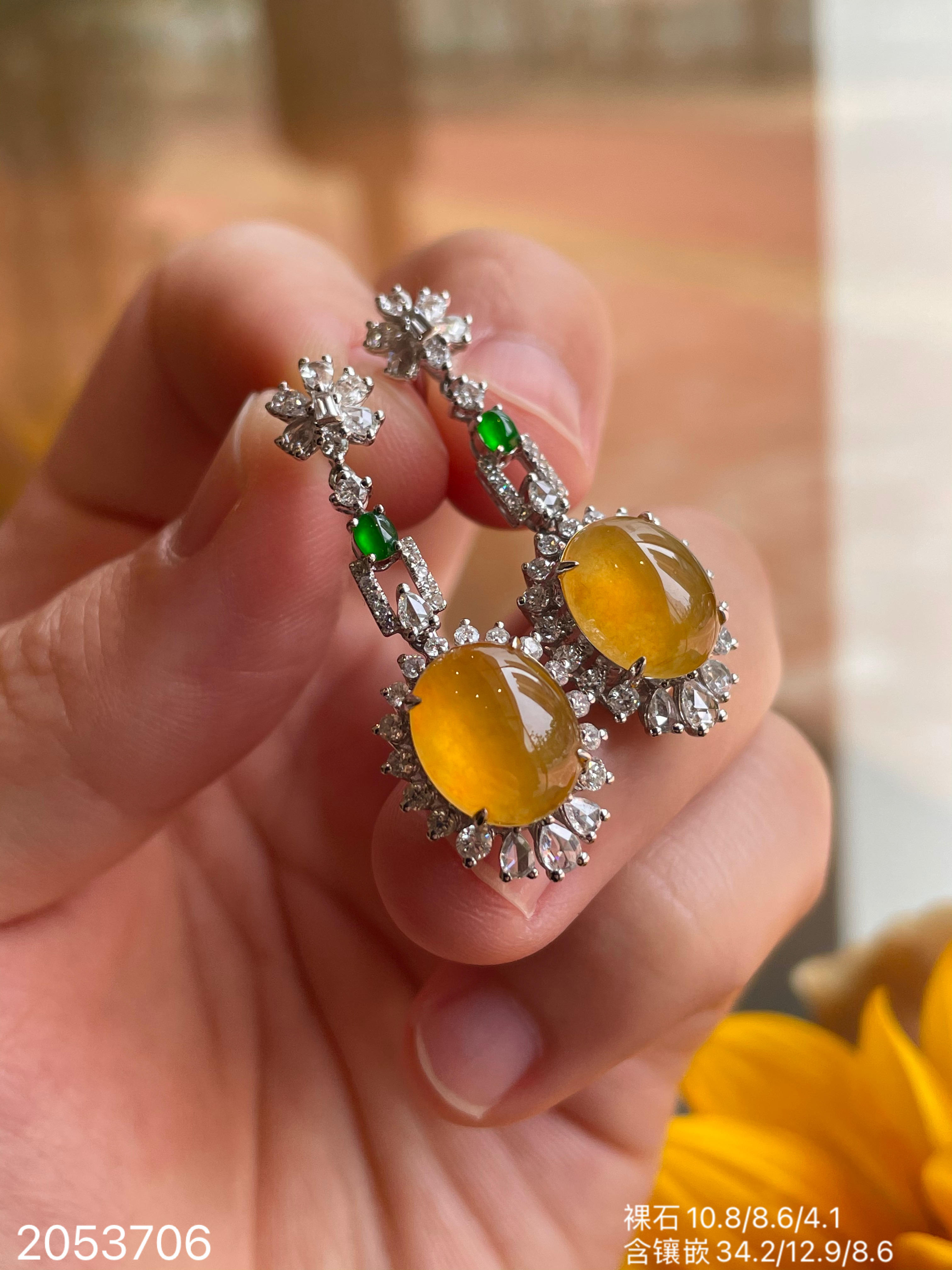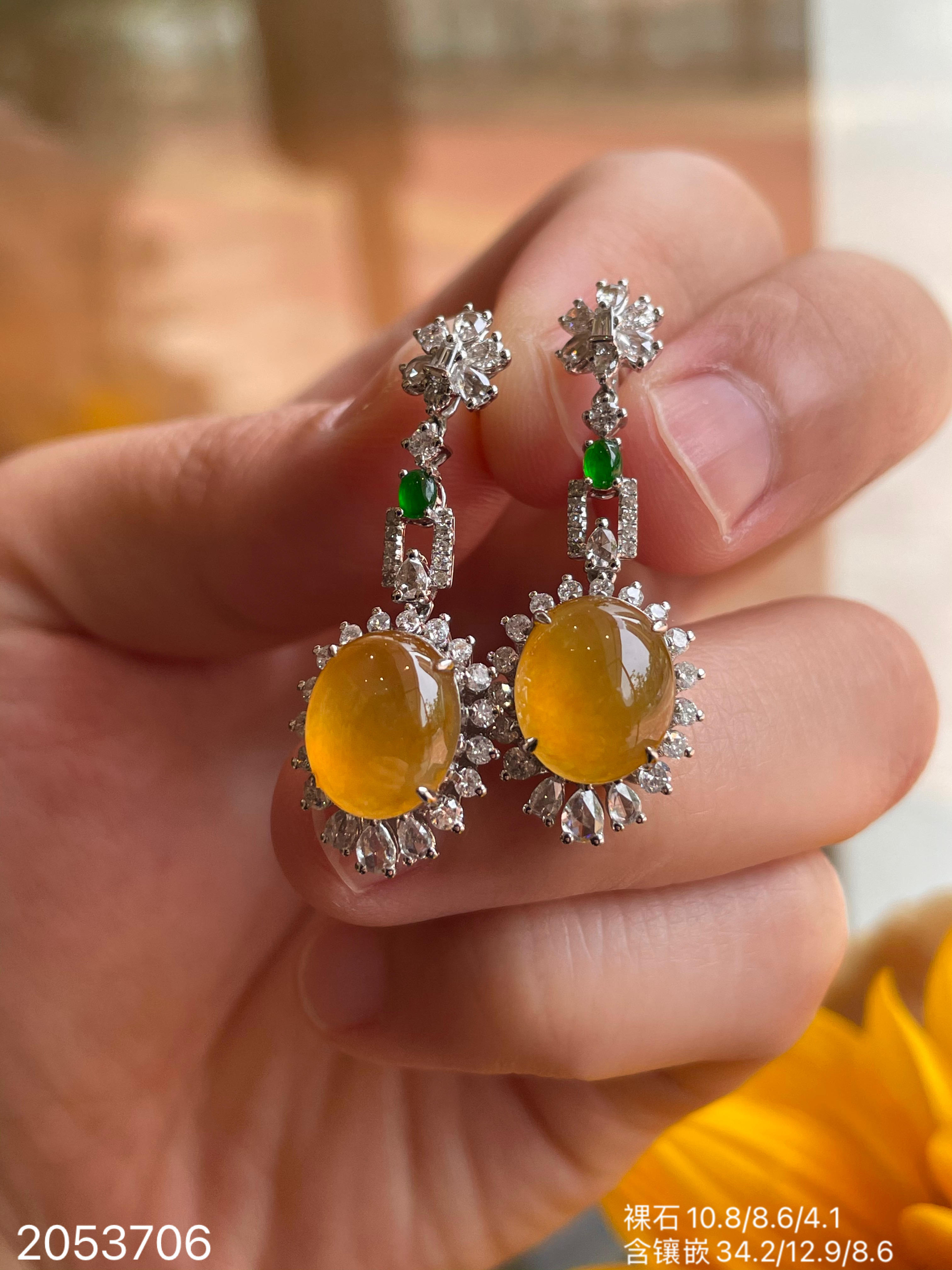 满色玻璃黄翡耳坠,38999【2053706】