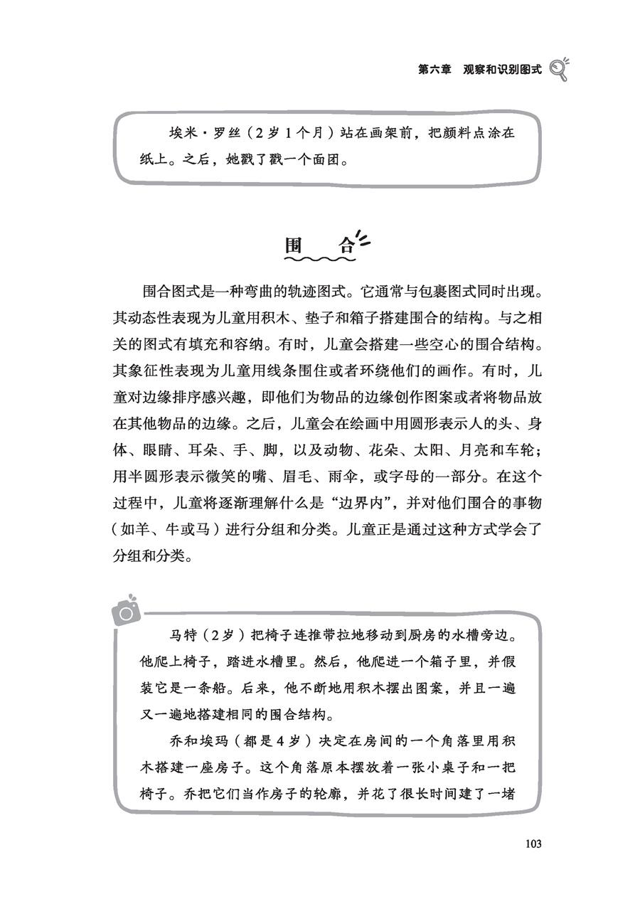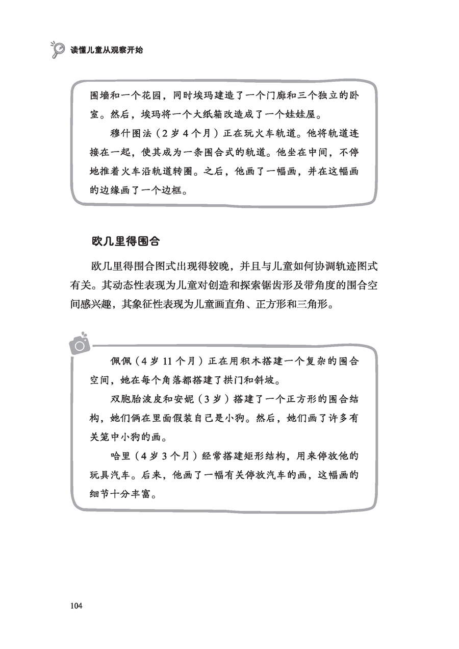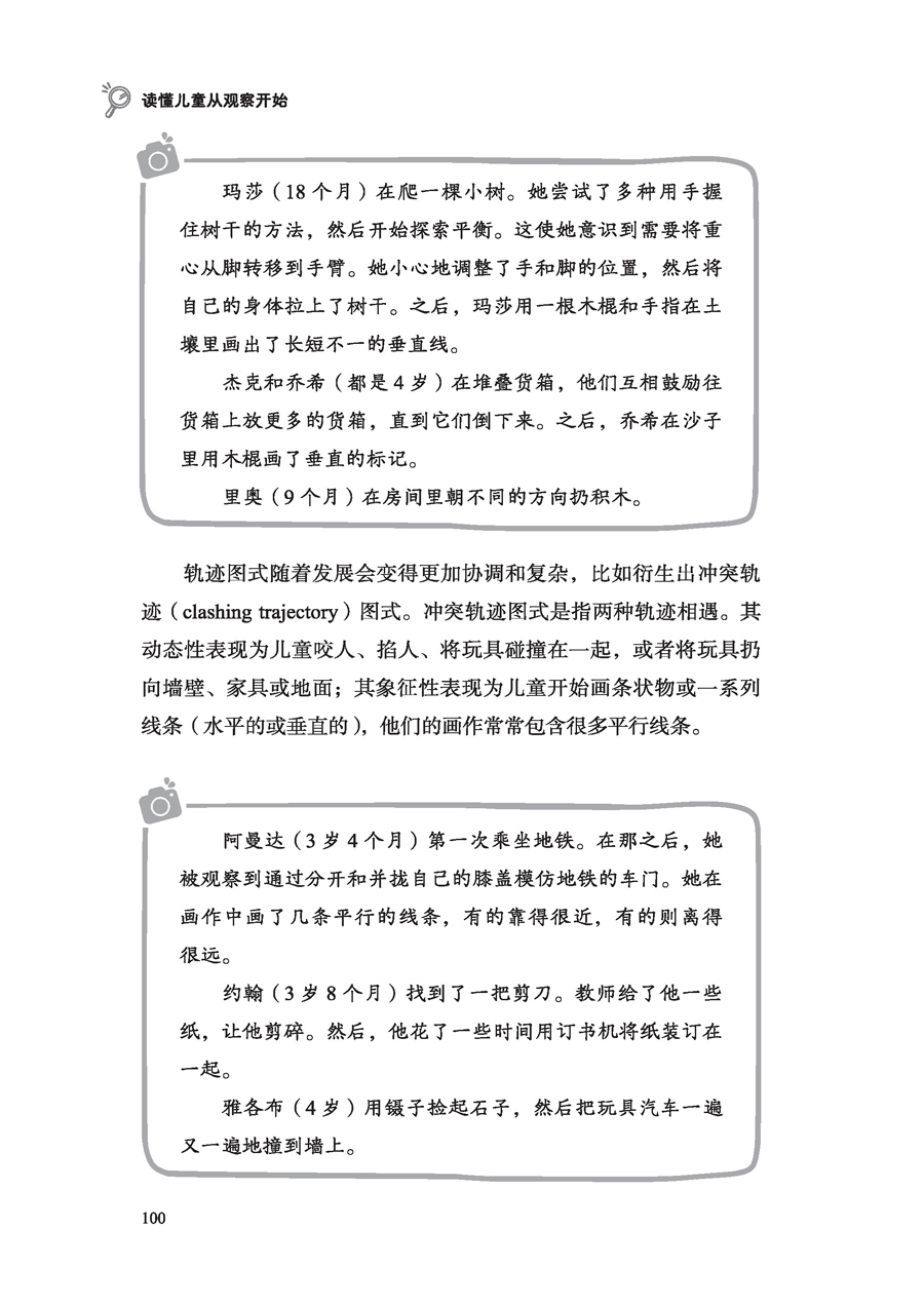 2.科学框架,解锁观察方法。基于儿童发展知识、13种经典图式和游戏的12个特征清晰界定11类观察内容;遵循“观察—评估—计划”流程,详解8种行之有效的观察记录方法和9个解读维度,精准捕捉儿童的成长轨迹与真实需求。
