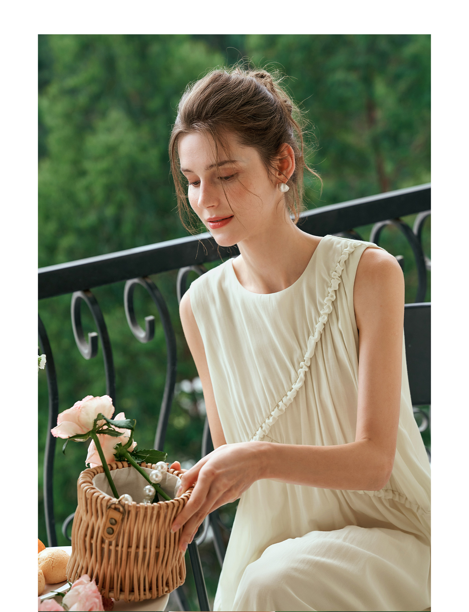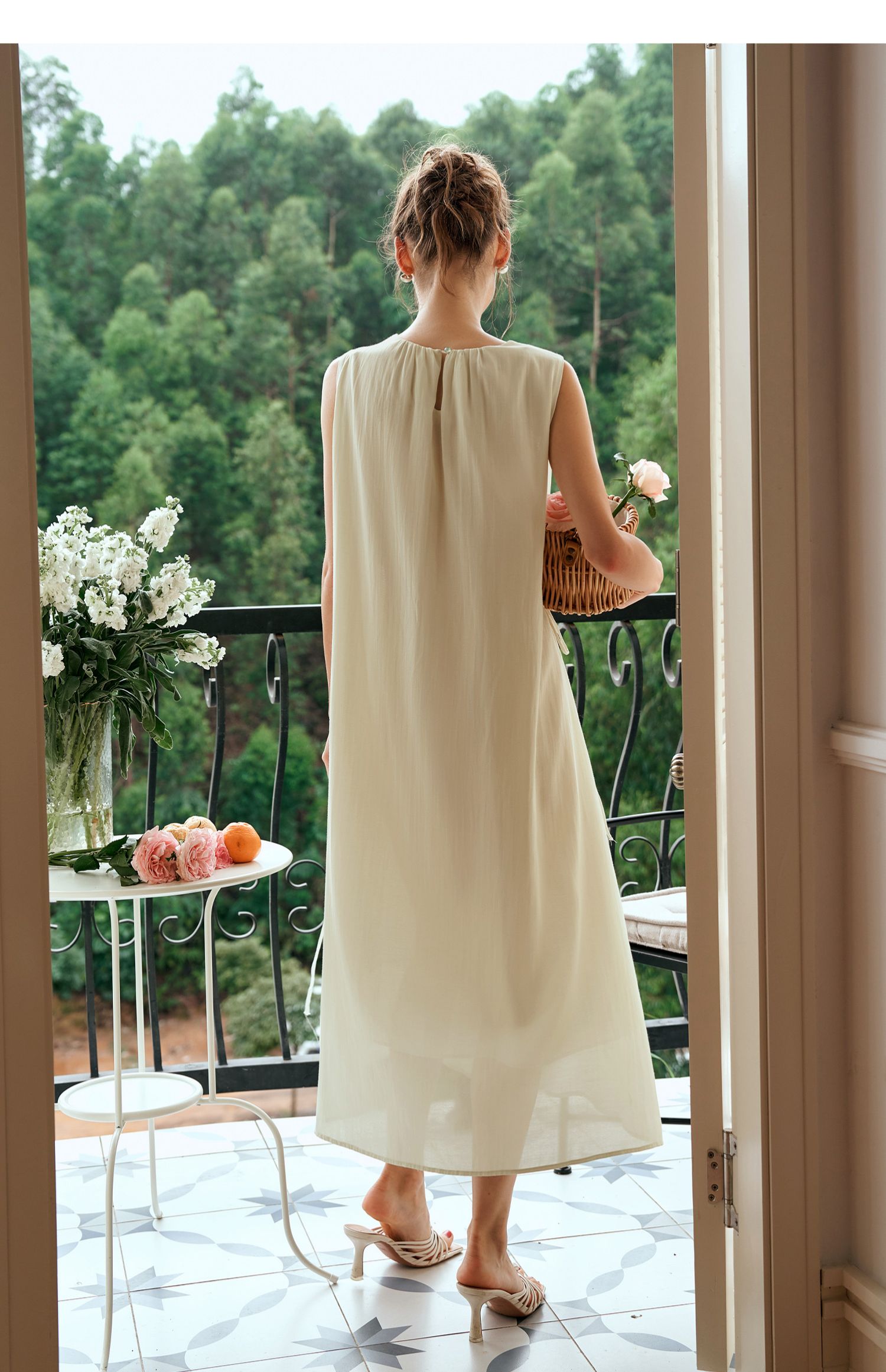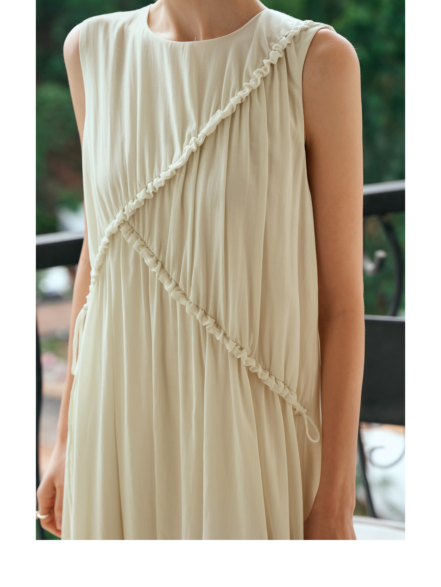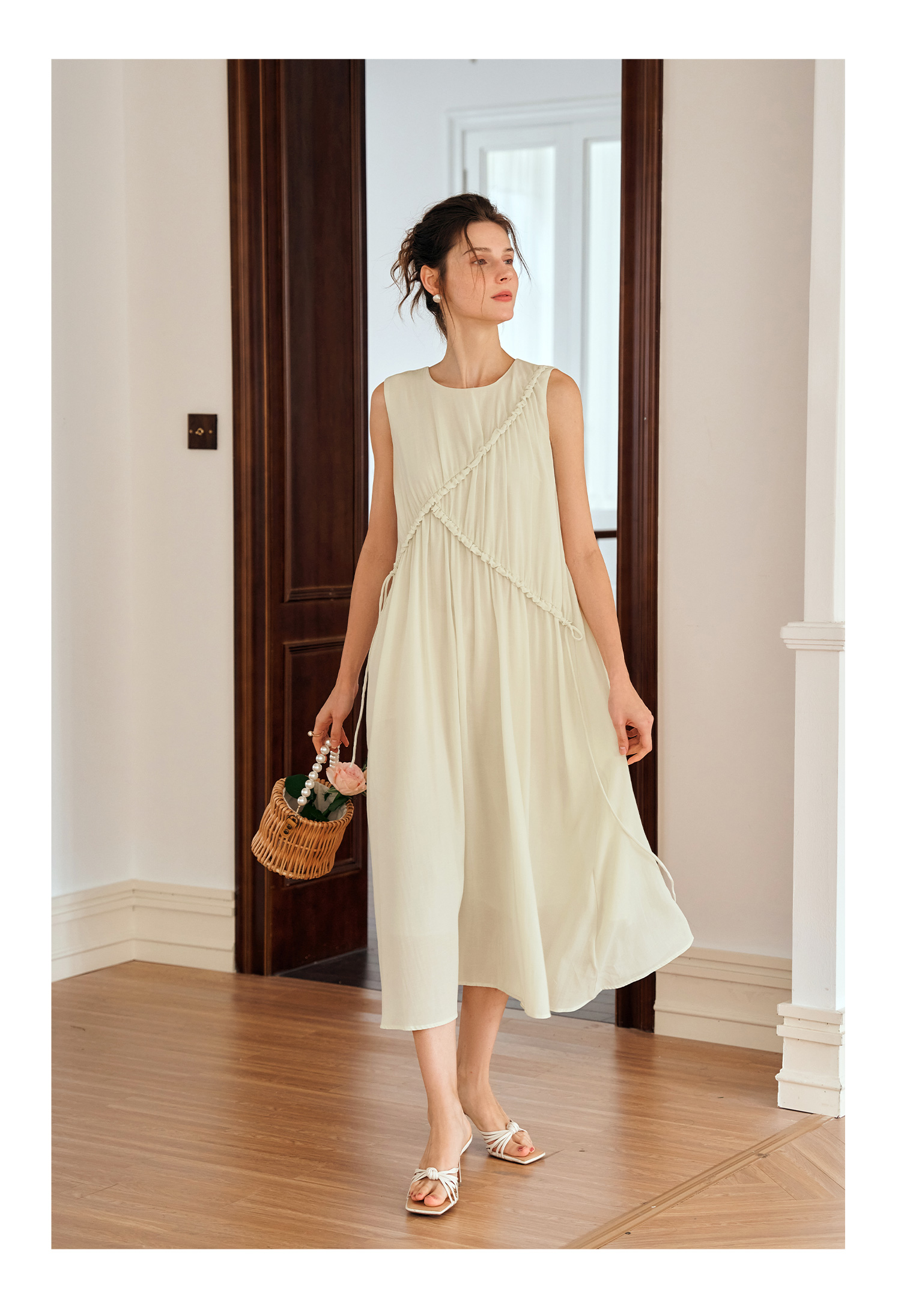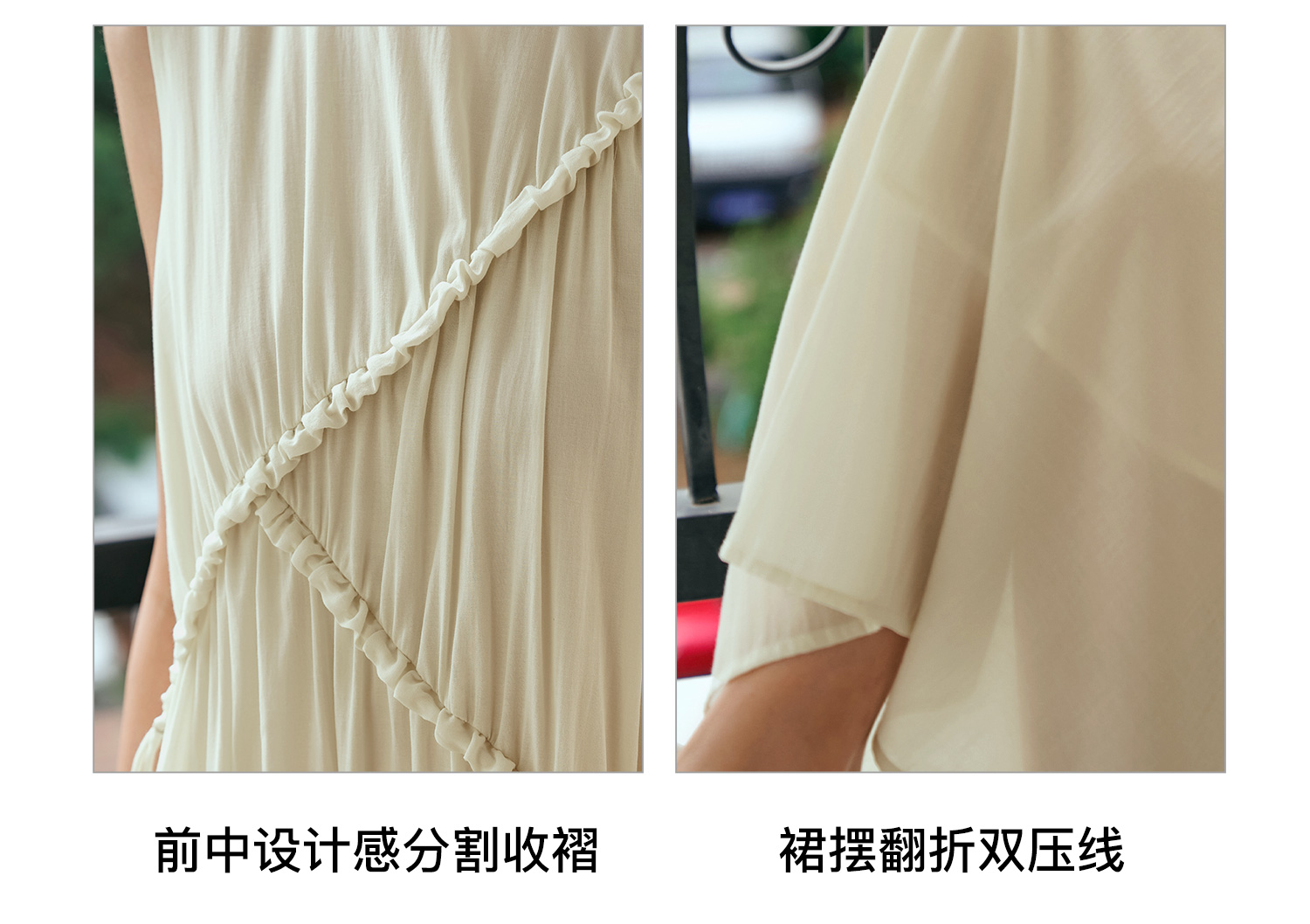 OLrain欧芮儿奶黄色无袖连衣裙女夏季2024新款茶歇设计感度假长裙