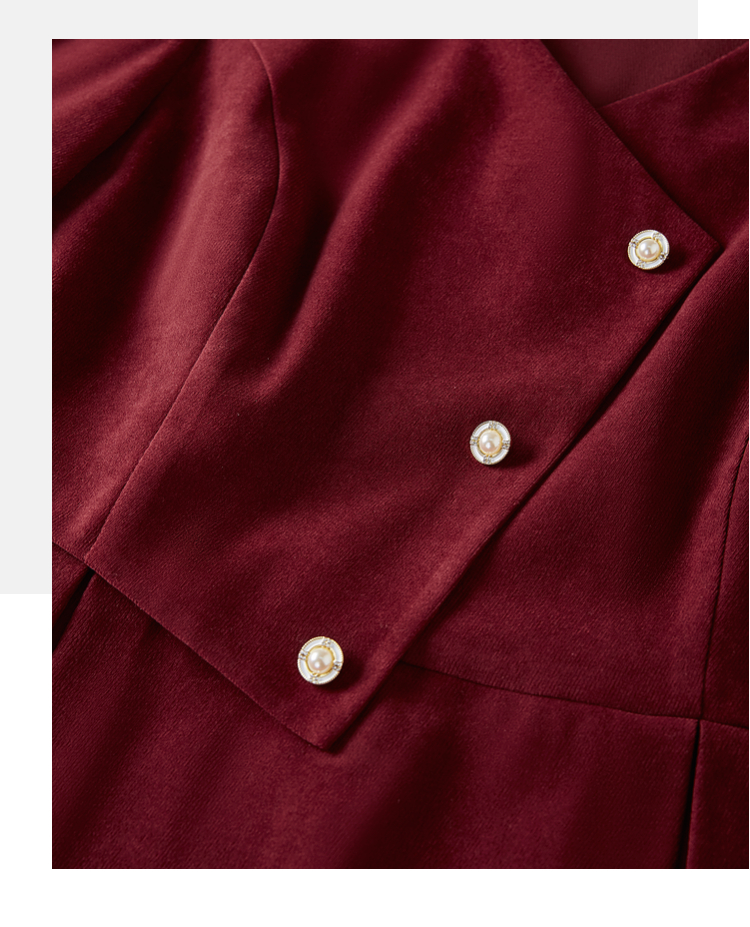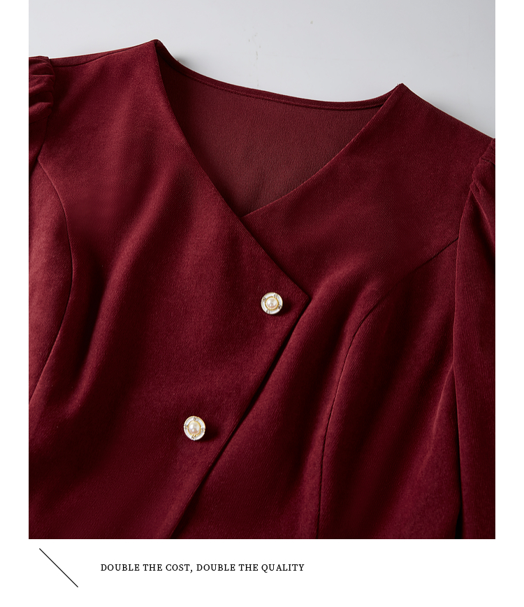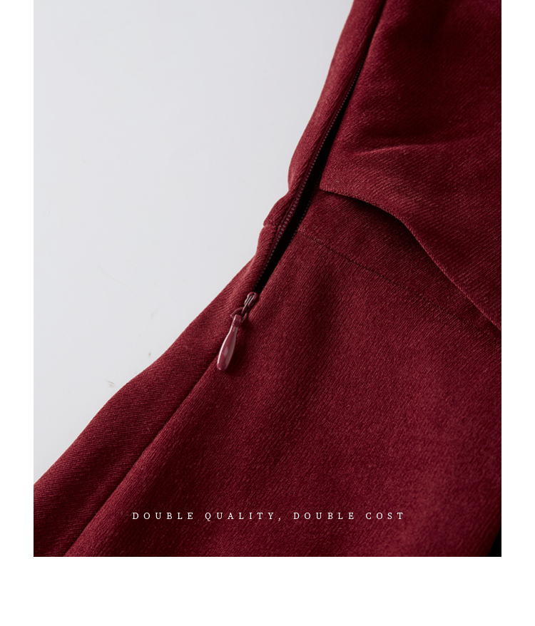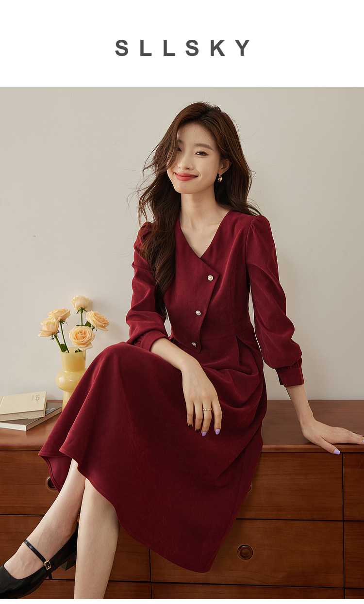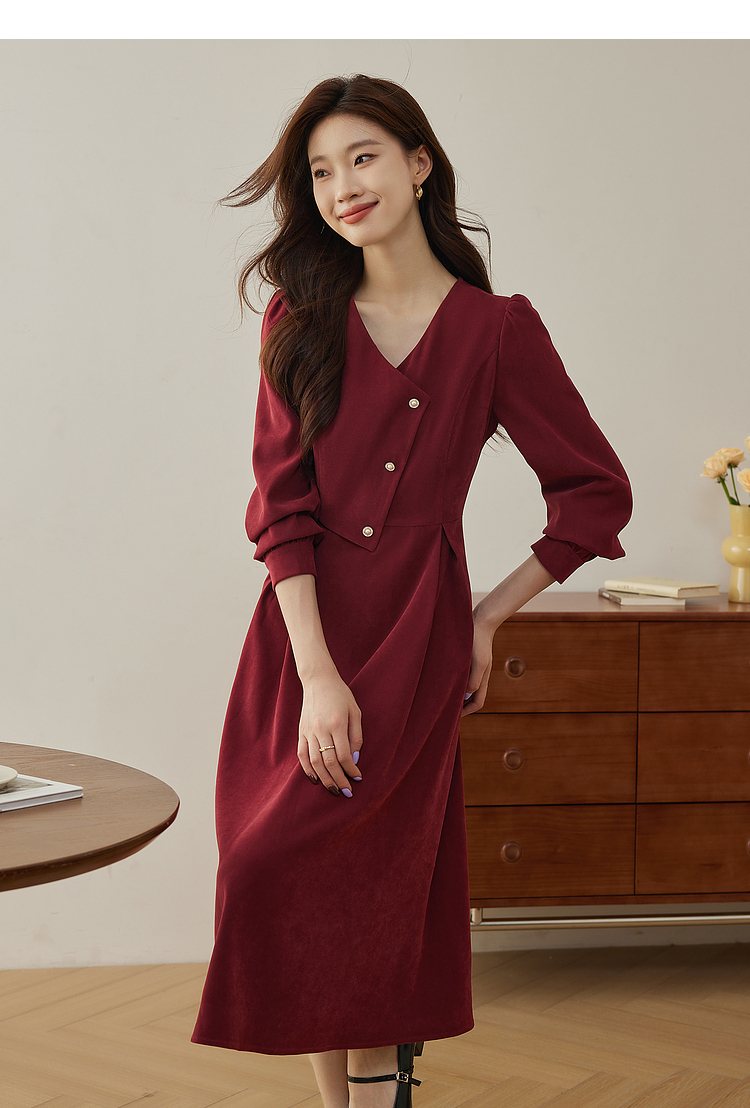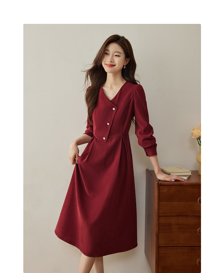【专属特价】熙世界浪漫复古红色连衣裙秋冬新款法式赫本磨毛V领裙子高级感