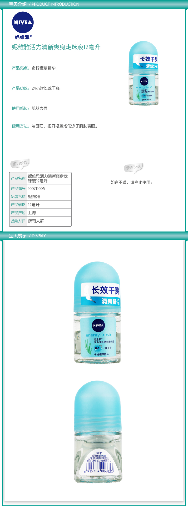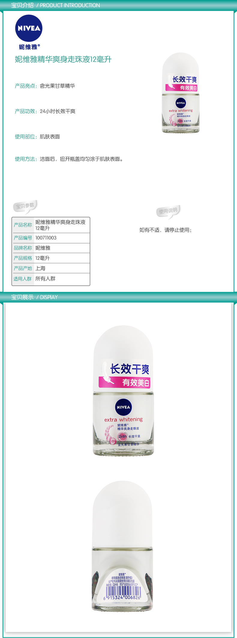 妮维雅 活力清新爽身走珠液 12ml