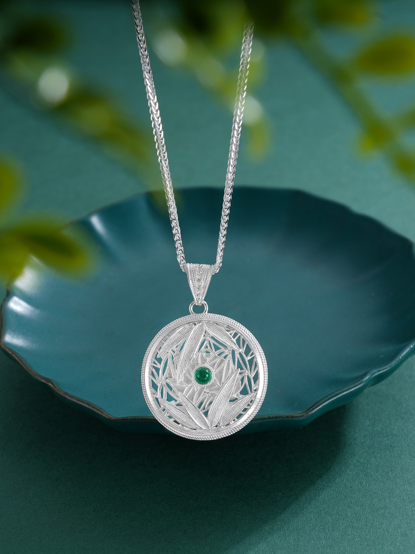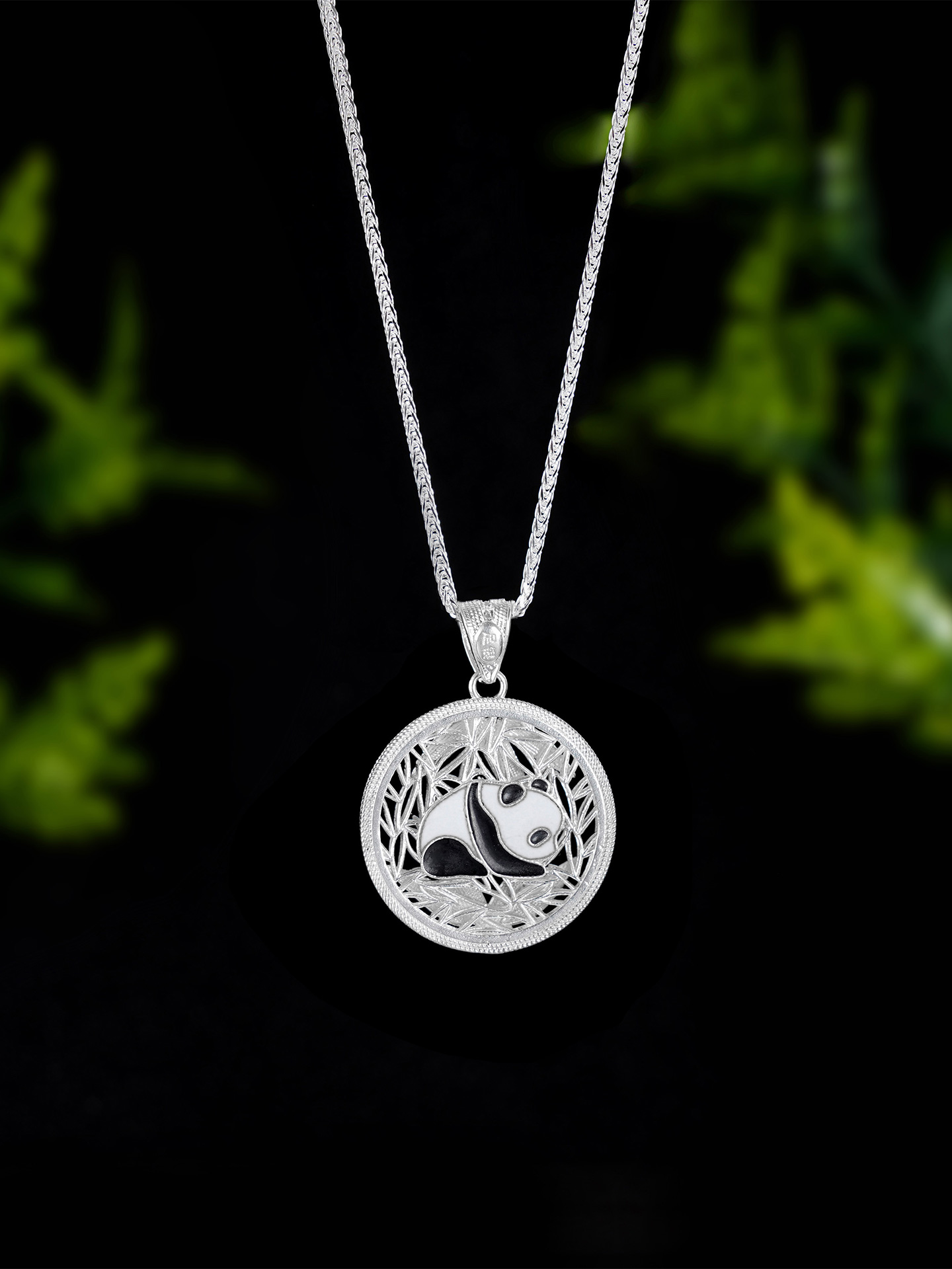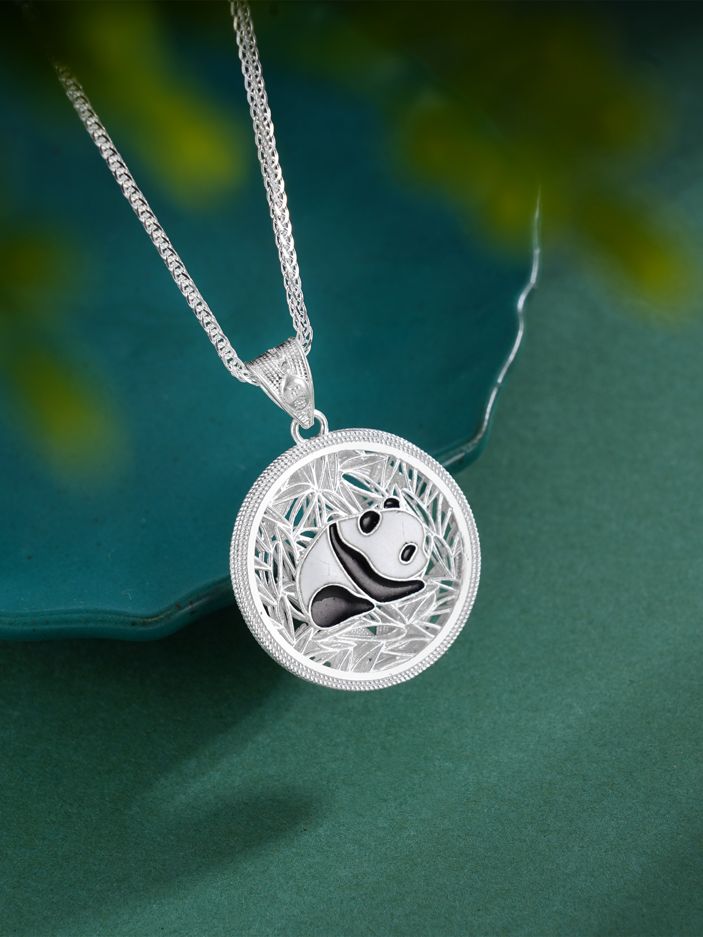 子佩集S990银【竹林隐士】双面套链项链【DSDZ002】大师工坊原创作品花丝珐琅彩绿玉髓熊猫