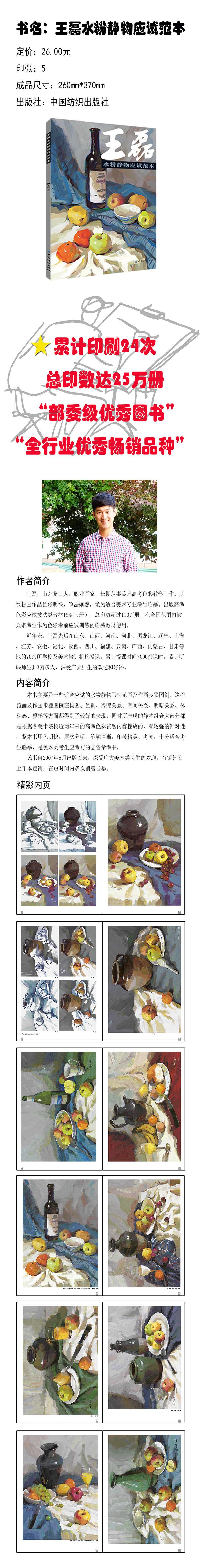 作者简介:王磊,山东龙口人,职业画家,长期从事美术高考色彩教学工作。其水粉画作品色彩明快,笔法娴熟,尤为适合美术专业考生临摹。出版高考色彩应试技法类教材18套(册),总印数超过110万册,在全国范围内被众多考生作为色彩考前应试训练的临摹教材使用。